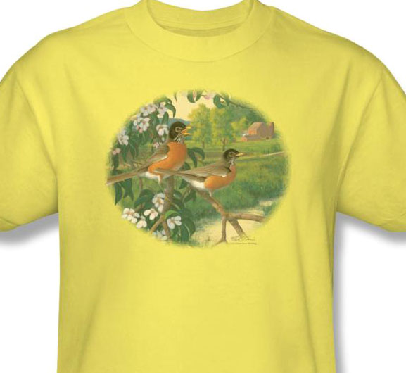 Apple Blossom Robins Adult Shirt - Yellow Wildlife Tee