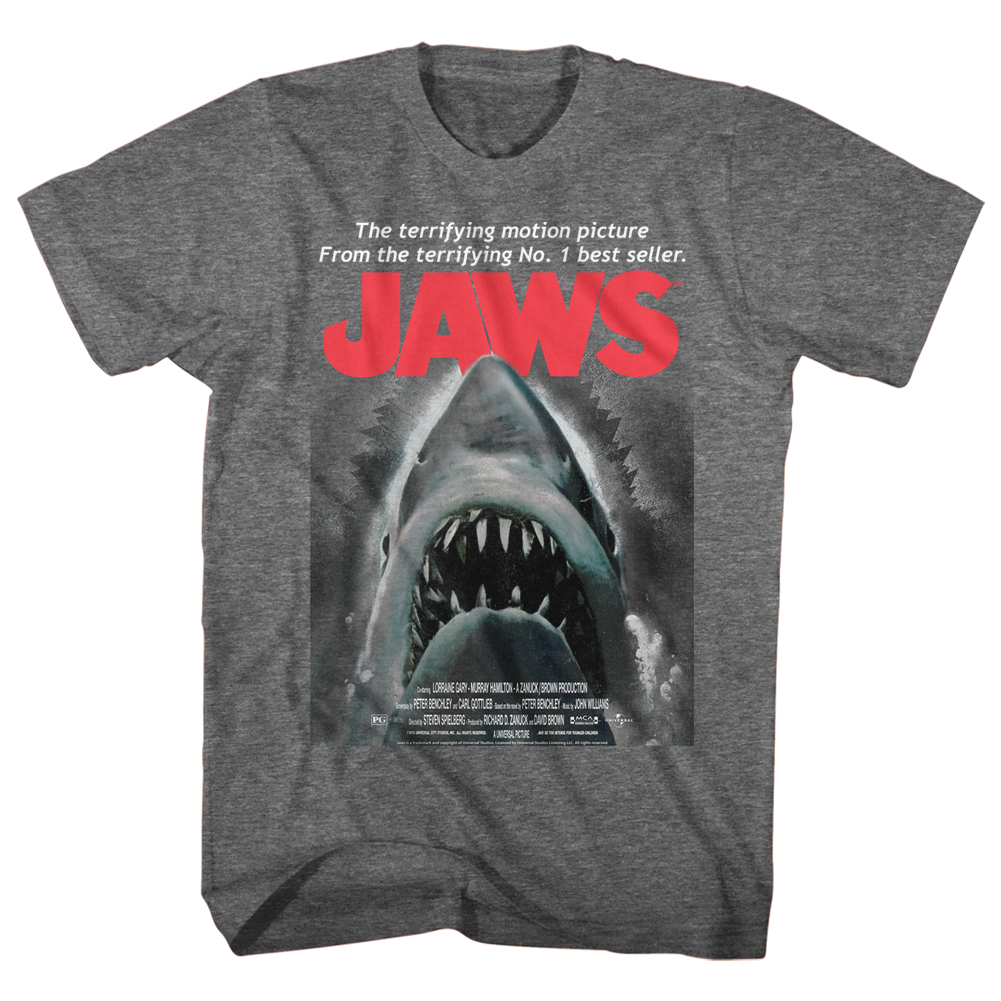 | | Jaws Shirt Beware Athletic Heather T-ShirtJaws Shirt Beware Athletic Heather T-Shirt This classic Jaws shirt features the movie poster along with the line The Terrifying Motion Picture from the Terrifying No. 1 Best Seller. Celebrate Jaws with an officially licensed shirt! Available in Small, Medium, Large, XL & 2XL ![]() |