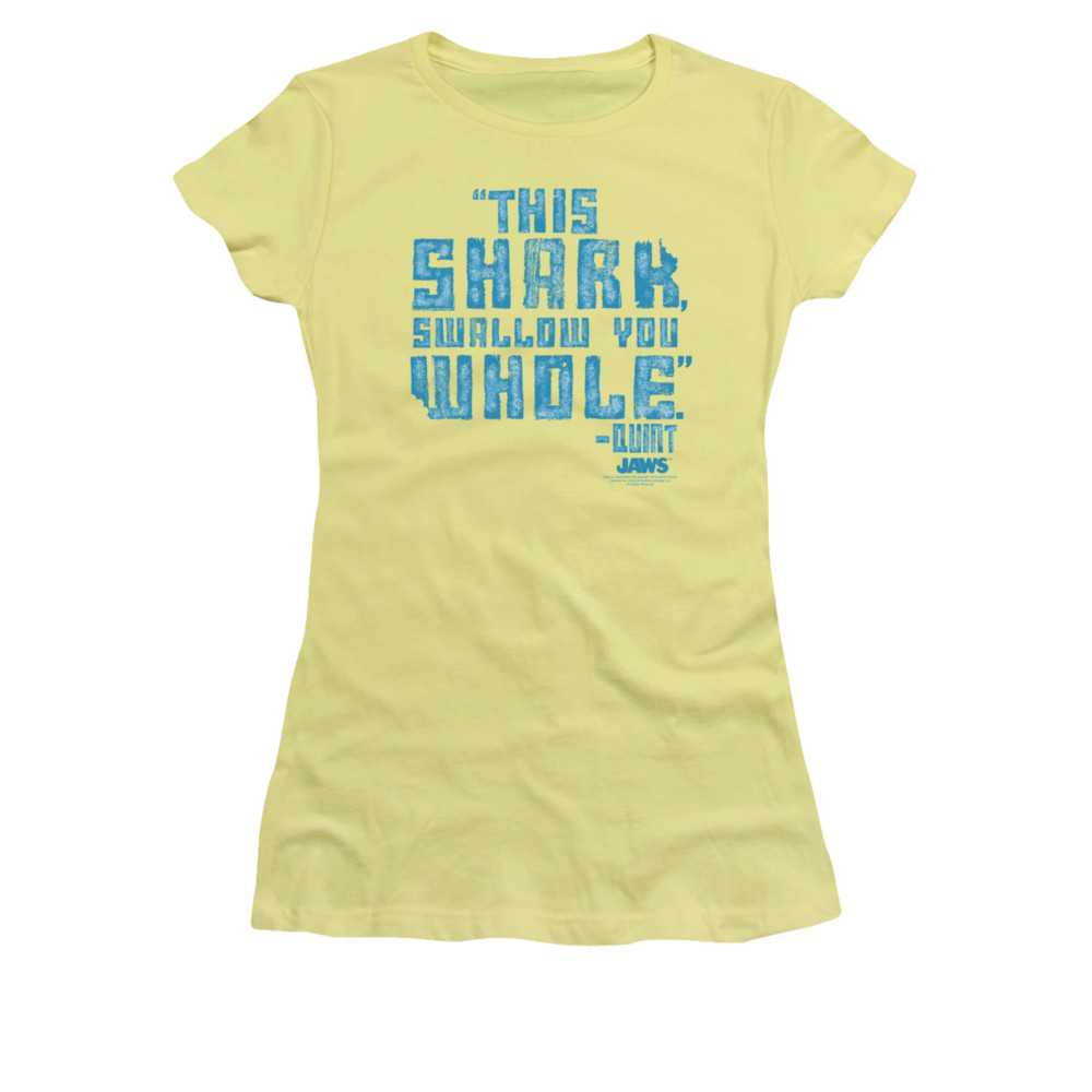 | | Jaws Shirt Juniors Swallow You Whole Banana T-ShirtJaws Shirt Juniors Swallow You Whole Banana T-Shirt The classic suspense filled thriller that terrified beach goers and made people wonder, what is below the surface. Officially Licensed Available in Small, Medium, Large, XL, 2XL ![]() |