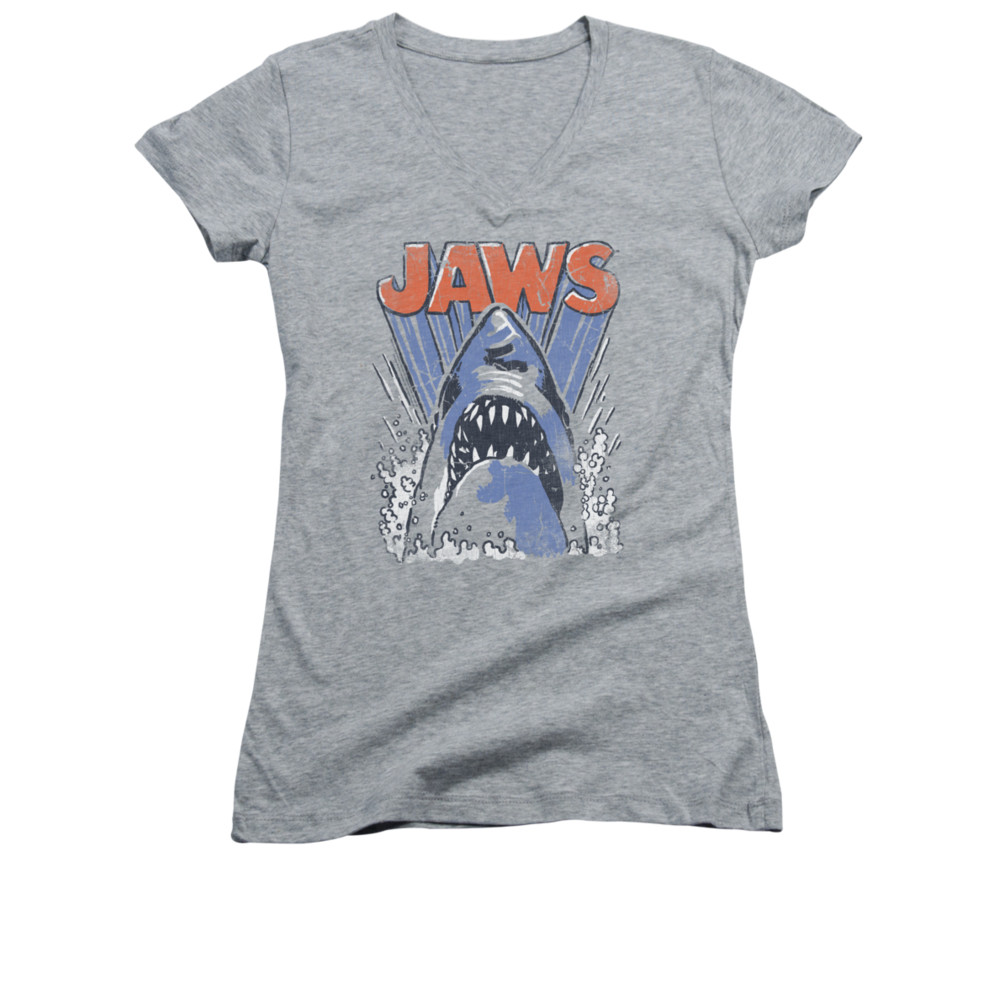| | Jaws Shirt Juniors V Neck Comic Splash Athletic Heather T-ShirtJaws Shirt Juniors V Neck Comic Splash Athletic Heather T-Shirt The classic suspense filled thriller that terrified beach goers and made people wonder, what is below the surface. Officially Licensed Available in Small, Medium, Large, XL & 2XL ![]() |