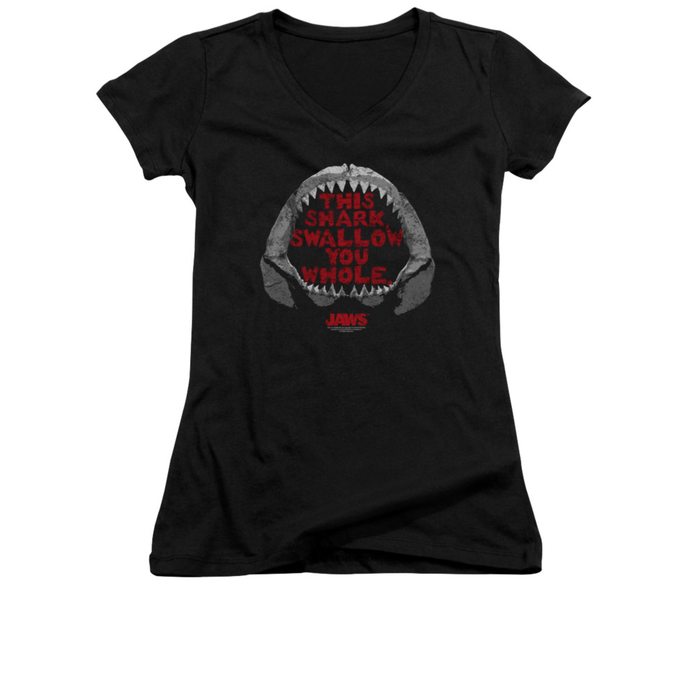 | | Jaws Shirt Juniors V Neck This Shark Black T-ShirtJaws Shirt Juniors V Neck This Shark Black T-Shirt The classic suspense filled thriller that terrified beach goers and made people wonder, what is below the surface. Officially Licensed Available in Small, Medium, Large, XL & 2XL ![]() |