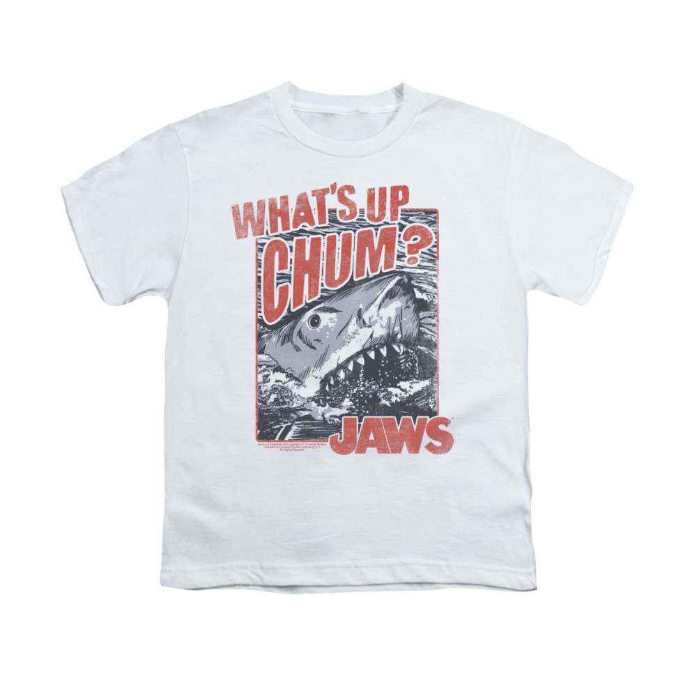 | | Jaws Shirt Kids Block Chum White T-ShirtJaws Shirt Kids Block Chum White T-Shirt The classic suspense filled thriller that terrified beach goers and made people wonder, what is below the surface. Officially Licensed Available in Small(6-8), Medium(10-12), Large(14-16), & XL(18-20), Also available in Toddler sizes: Small (4), Medium (5/6), & Large (7) ![]() |
