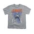 | | Jaws Shirt Kids Comic Splash Athletic Heather T-ShirtJaws Shirt Kids Comic Splash Athletic Heather T-Shirt The classic suspense filled thriller that terrified beach goers and made people wonder, what is below the surface. Officially Licensed Available in Small(6-8), Medium(10-12), Large(14-16), & XL(18-20), Also available in Toddler sizes: Small (4), Medium (5/6), & Large (7) ![]() |