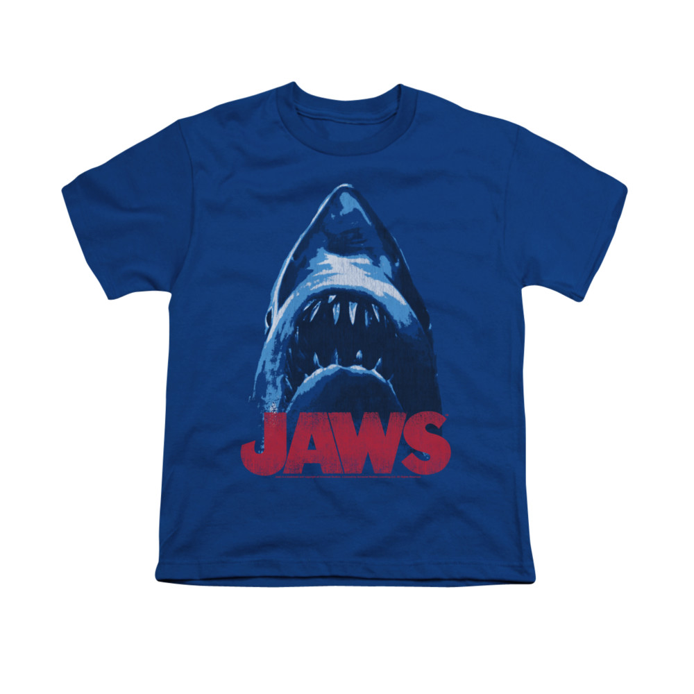 | | Jaws Shirt Kids From Below Royal Blue T-ShirtJaws Shirt Kids From Below Royal Blue T-Shirt The classic suspense filled thriller that terrified beach goers and made people wonder, what is below the surface. Officially Licensed Available in Small(6-8), Medium(10-12), Large(14-16), & XL(18-20), Also available in Toddler sizes: Small (4), Medium (5/6), & Large (7) ![]() |