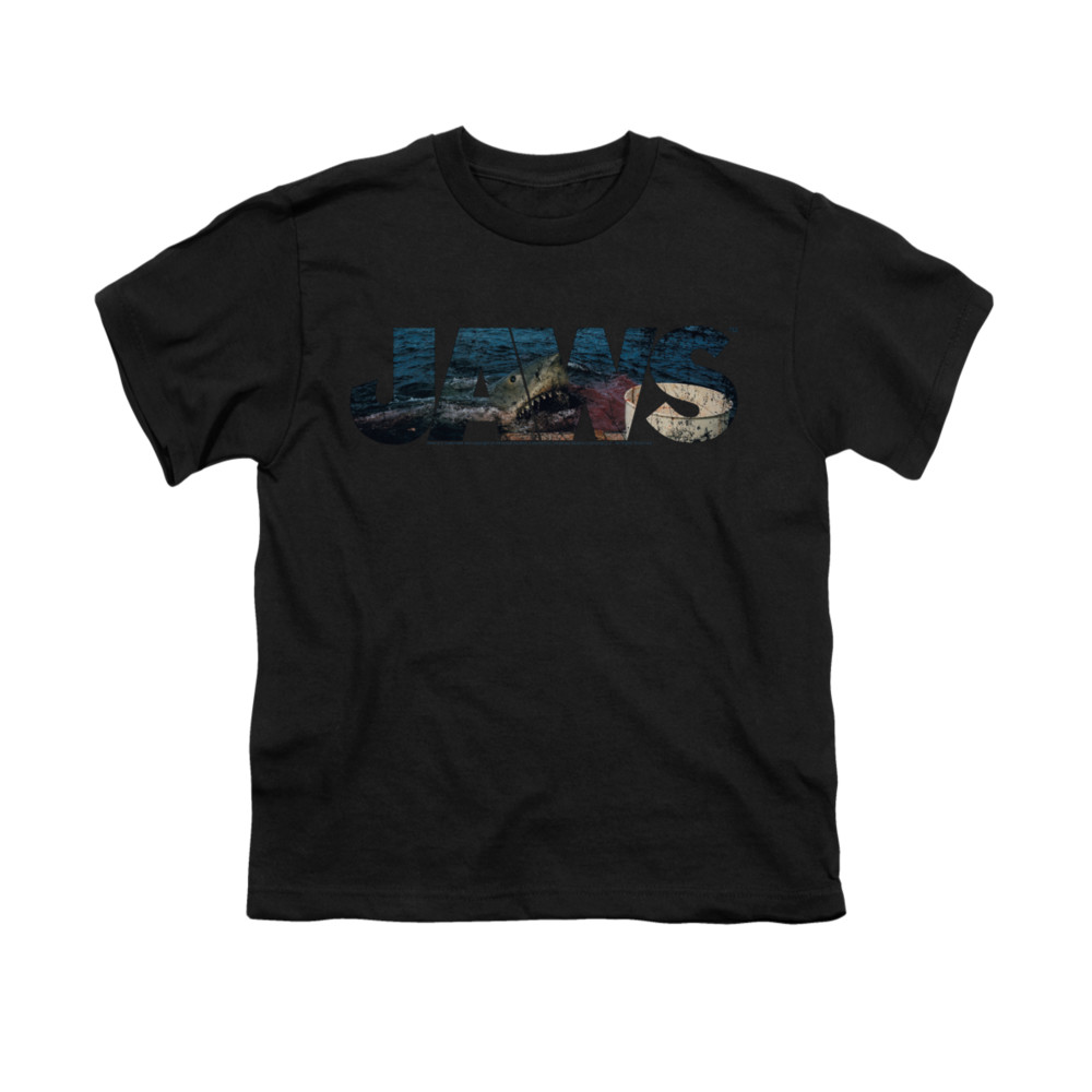 | | Jaws Shirt Kids Logo Cut Out Black T-ShirtJaws Shirt Kids Logo Cut Out Black T-Shirt The classic suspense filled thriller that terrified beach goers and made people wonder, what is below the surface. Officially Licensed Available in Small(6-8), Medium(10-12), Large(14-16), & XL(18-20), Also available in Toddler sizes: Small (4), Medium (5/6), & Large (7) ![]() |