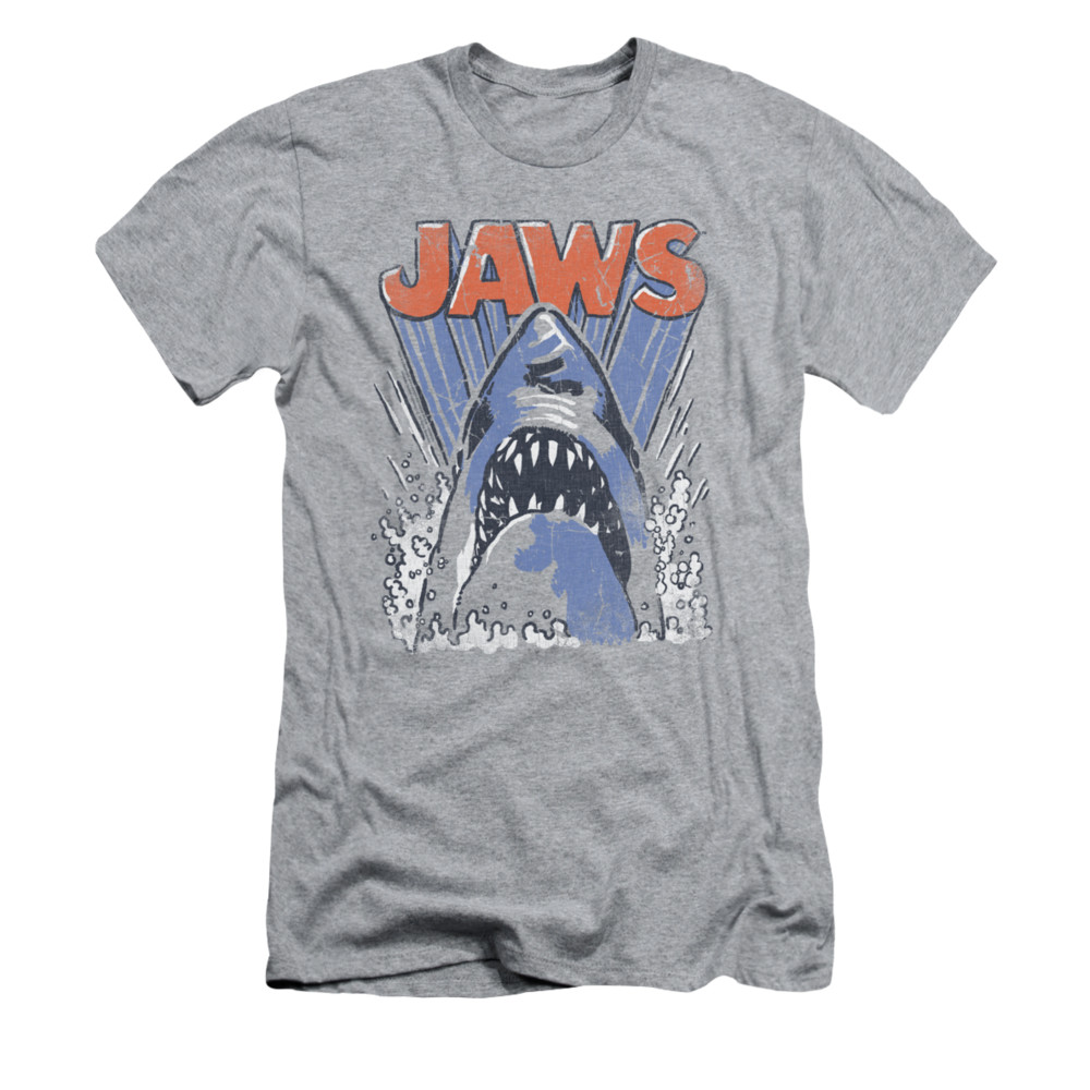 | | Jaws Shirt Slim Fit Comic Splash Athletic Heather T-ShirtJaws Shirt Slim Fit Comic Splash Athletic Heather T-Shirt The classic suspense filled thriller that terrified beach goers and made people wonder, what is below the surface. Officially Licensed Available in Small, Medium, Large, XL, 2XL ![]() |