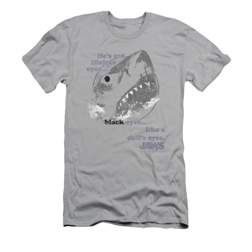 | | Jaws Shirt Slim Fit Doll's Eyes Silver T-ShirtJaws Shirt Slim Fit Doll's Eyes Silver T-Shirt The classic suspense filled thriller that terrified beach goers and made people wonder, what is below the surface. Officially Licensed Available in Small, Medium, Large, XL, 2XL ![]() |