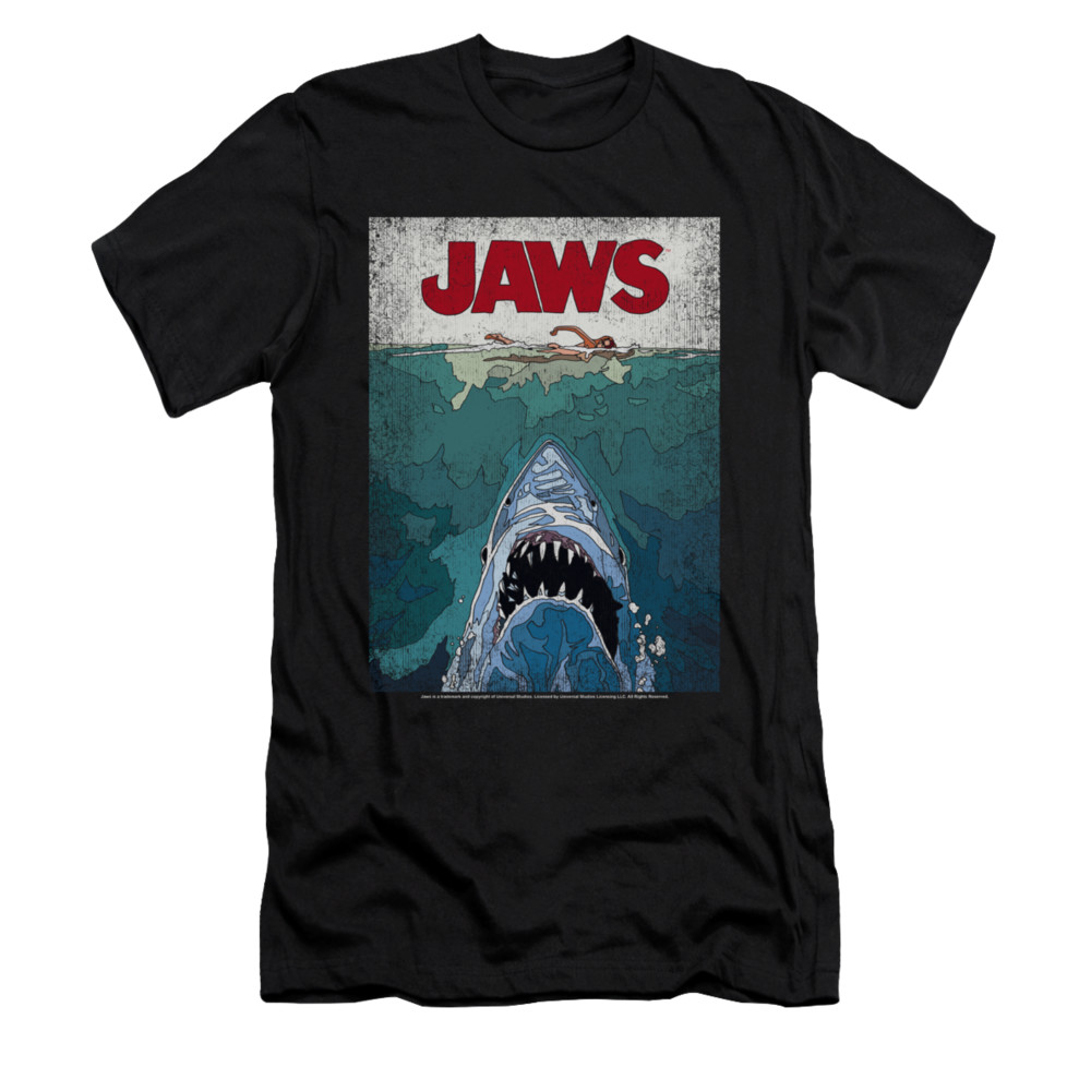| | Jaws Shirt Slim Fit Lined Poster Black T-ShirtJaws Shirt Slim Fit Lined Poster Black T-Shirt The classic suspense filled thriller that terrified beach goers and made people wonder, what is below the surface. Officially Licensed Available in Small, Medium, Large, XL, 2XL ![]() |