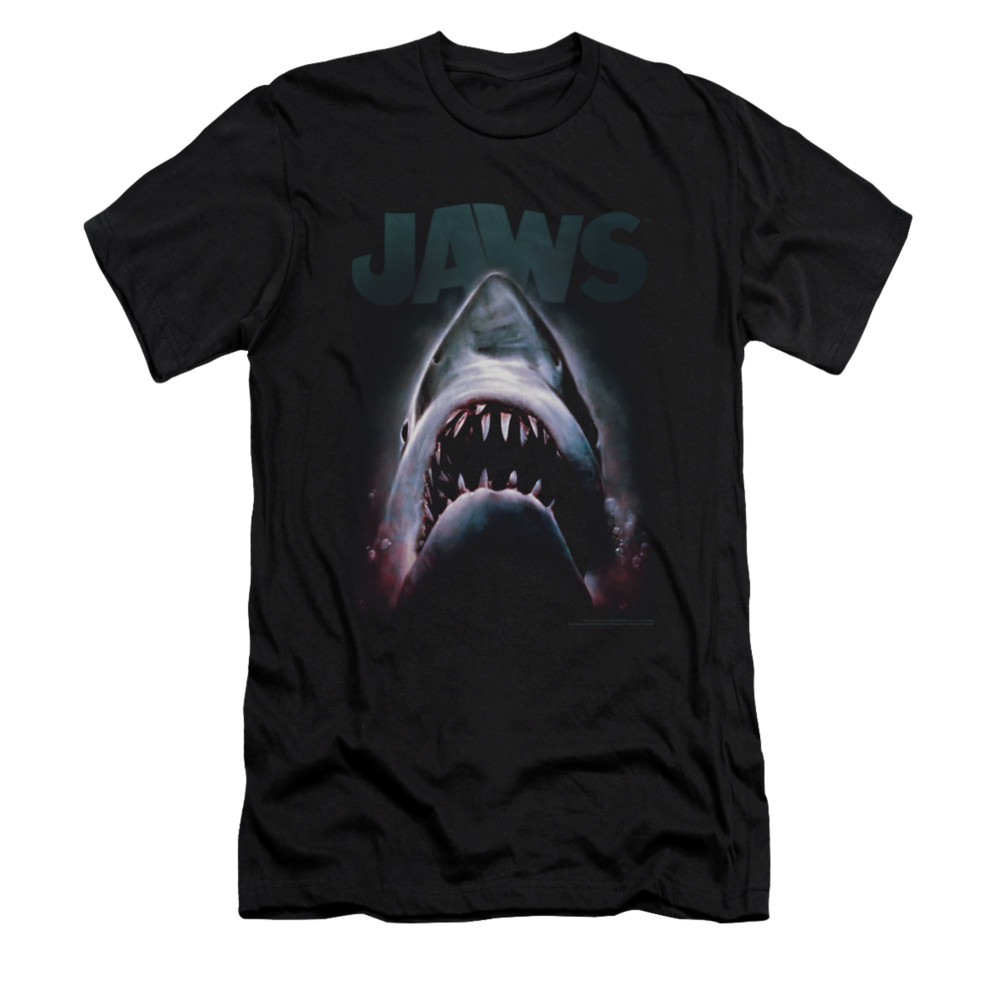 | | Jaws Shirt Slim Fit Terror In The Deep Black T-ShirtJaws Shirt Slim Fit Terror In The Deep Black T-Shirt The classic suspense filled thriller that terrified beach goers and made people wonder, what is below the surface. Officially Licensed Available in Small, Medium, Large, XL, 2XL ![]() |