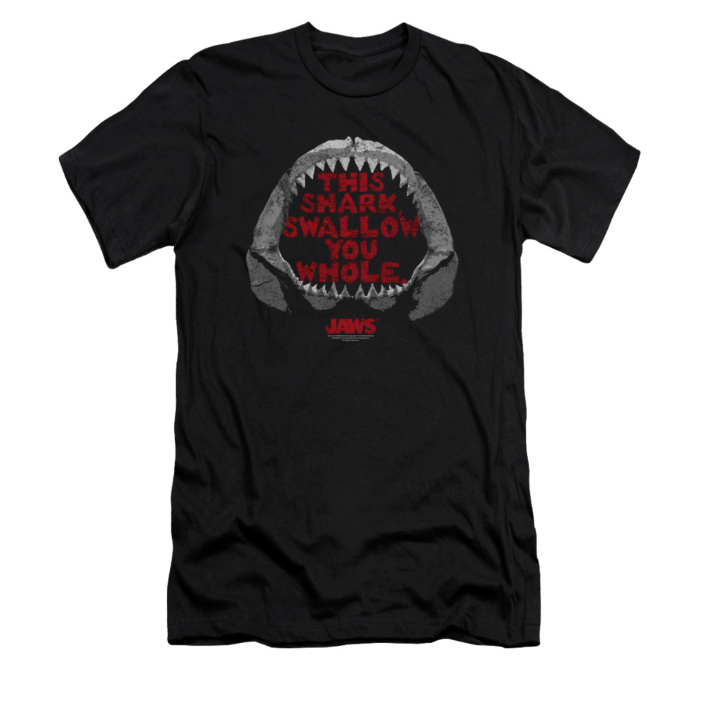 | | Jaws Shirt Slim Fit This Shark Black T-ShirtJaws Shirt Slim Fit This Shark Black T-Shirt The classic suspense filled thriller that terrified beach goers and made people wonder, what is below the surface. Officially Licensed Available in Small, Medium, Large, XL, 2XL ![]() |