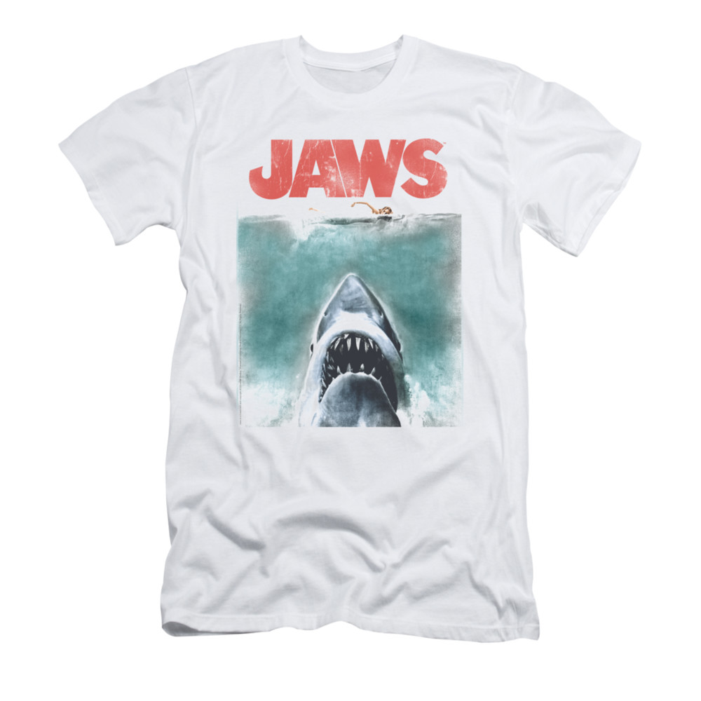 | | Jaws Shirt Slim Fit Vintage Poster White T-ShirtJaws Shirt Slim Fit Vintage Poster White T-Shirt The classic suspense filled thriller that terrified beach goers and made people wonder, what is below the surface. Officially Licensed Available in Small, Medium, Large, XL, 2XL ![]() |