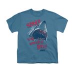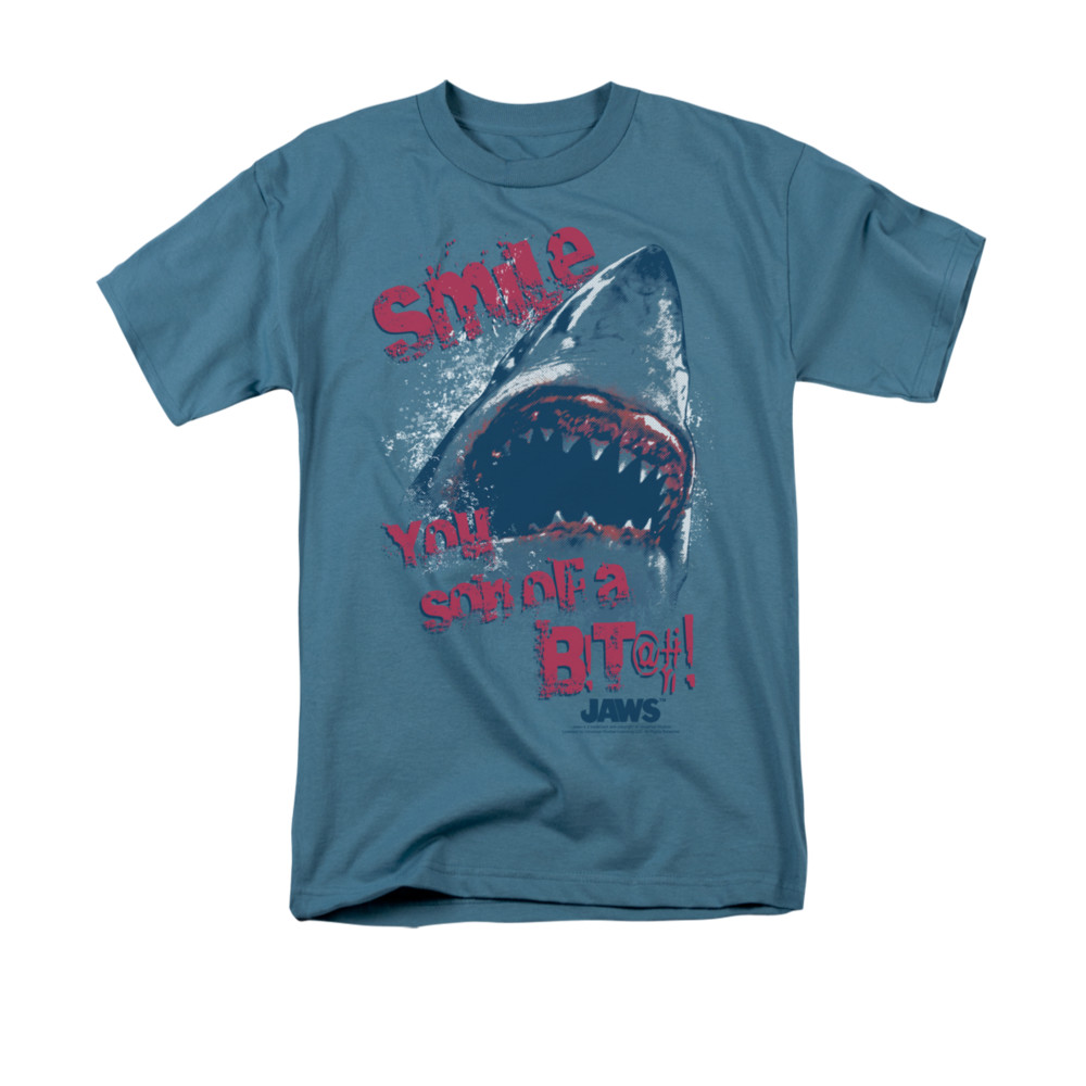 | | Jaws Shirt Smile You Slate T-ShirtJaws Shirt Smile You Slate T-Shirt The classic suspense filled thriller that terrified beach goers and made people wonder, what is below the surface. Officially Licensed Available in Small, Medium, Large, XL, 2XL & 3XL ![]() |