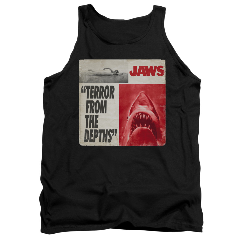 | | Jaws Shirt Tank Top Terror Black TanktopJaws Shirt Tank Top Terror Black Tanktop The classic suspense filled thriller that terrified beach goers and made people wonder, what is below the surface. Officially Licensed Available in Small, Medium, Large, XL & 2XL ![]() |