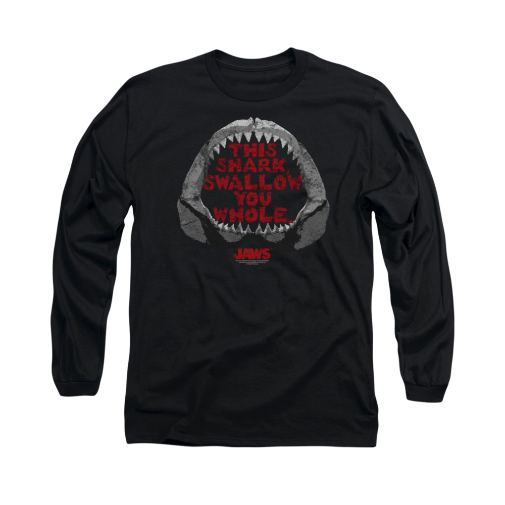 | | Jaws Shirt This Shark Long Sleeve Black Tee T-ShirtJaws Shirt This Shark Long Sleeve Black Tee T-Shirt The classic suspense filled thriller that terrified beach goers and made people wonder, what is below the surface. Officially Licensed Available in Small, Medium, Large, XL, 2XL ![]() |