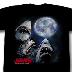 Jaws Shirt Three Shark Moon Adult Black Tee T-Shirt