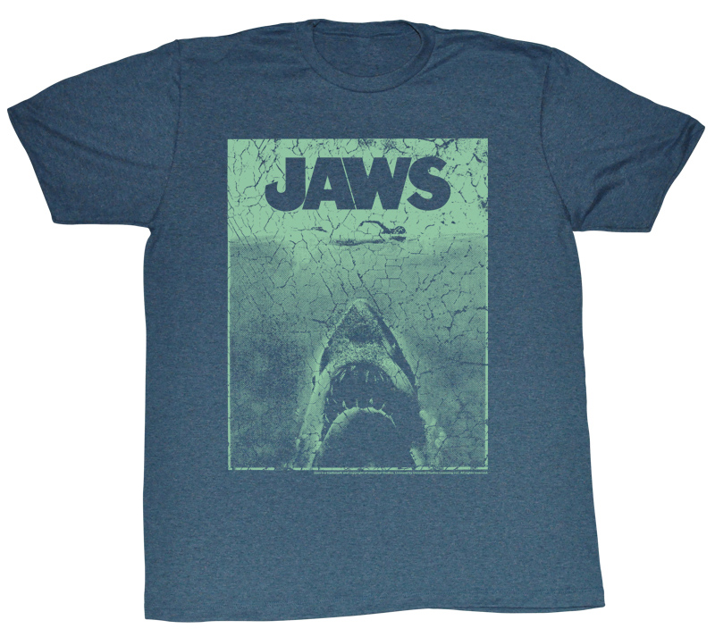 Jaws T-shirt Movie Green Jaws Adult Blue Heather Tee Shirt