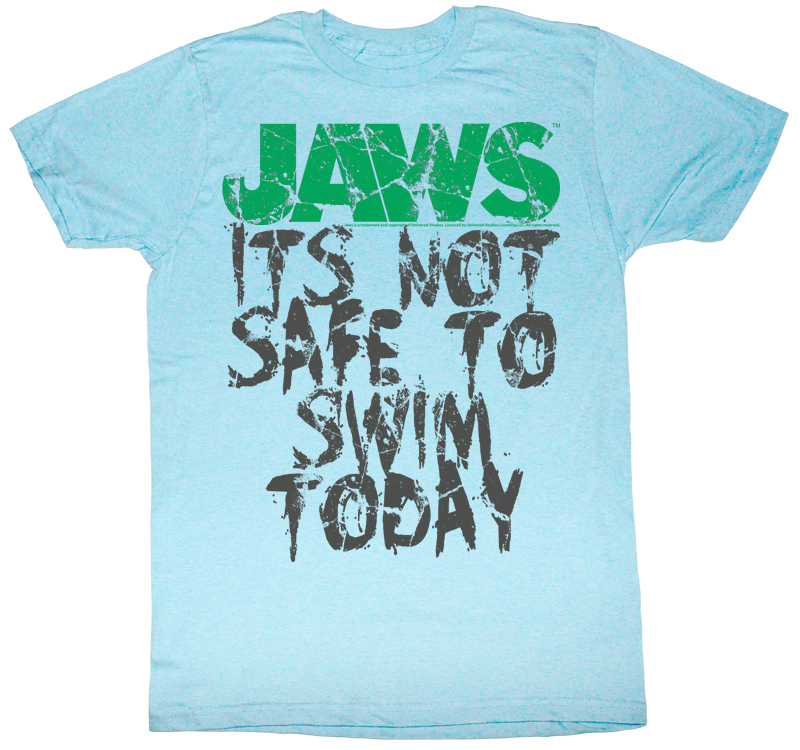 Jaws T-shirt Movie Shark Not Safe Adult Light Blue Tee Shirt
