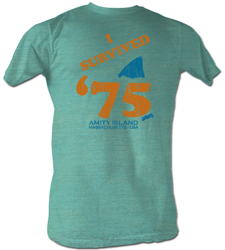 Jaws T-shirt Movie Shark Survivor Adult Green Heather Tee Shirt