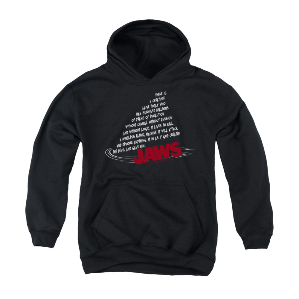 | | Jaws Youth Hoodie Dorsal Text Black Kids HoodyJaws Youth Hoodie Dorsal Text Black Kids Hoody The classic suspense filled thriller that terrified beach goers and made people wonder, what is below the surface. Officially Licensed Available in Small, Medium, Large, XL, ![]() |