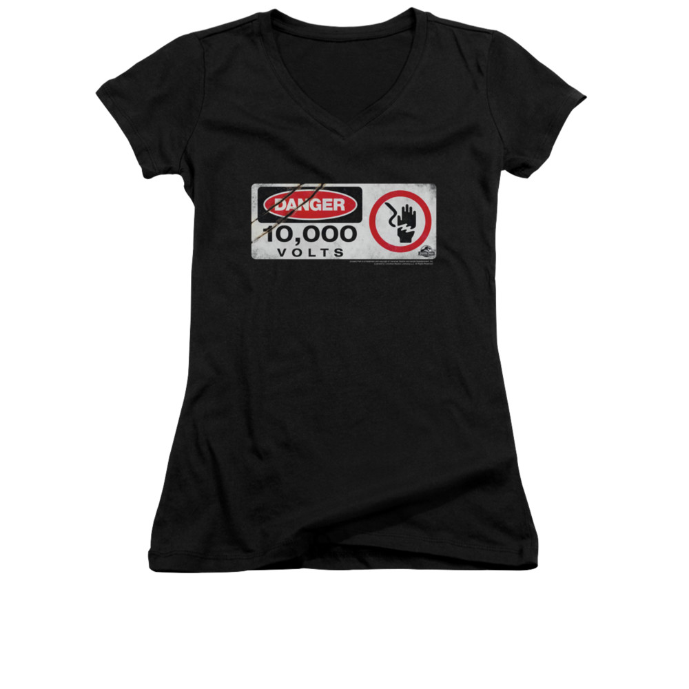 | | Jurassic Park Shirt Juniors V Neck Electric Fence Black Tee T-ShirtJurassic Park Shirt Juniors V Neck Electric Fence Black Tee T-Shirt Officially Licensed Available in Small, Medium, Large, XL & 2XL Our Jurassic Park shirts is an American sci-fi classic film perfect for any fans of this action movie. ![]() |