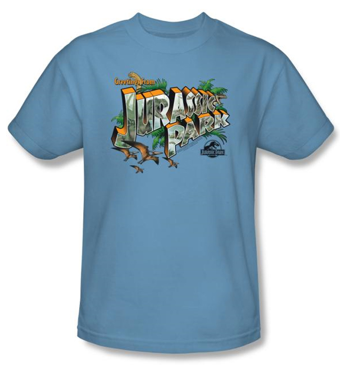 Jurassic Park T-shirt Greetings From JP Adult Carolina Blue Tee Shirt