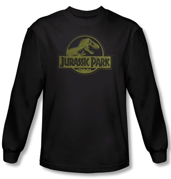 Jurassic Park T-shirt T Distressed Logo Adult Black Long Sleeve Tee