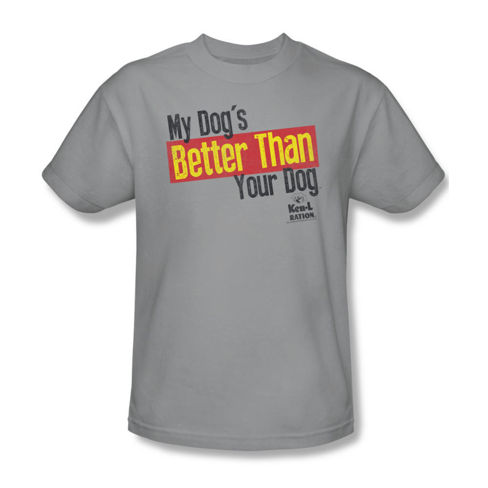 | | Ken L Ration Shirt Better Than Silver T-ShirtKen L Ration Shirt Better Than Silver T-Shirt Known for the, My dogs better than your dog, song the Ken L Ration dog food was once the best selling dog food in the U.S. Officially Licensed Available in Small, Medium, Large, XL, 2XL & 3XL ![]() |