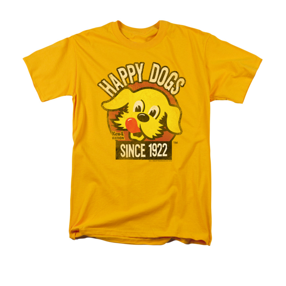 | | Ken L Ration Shirt Happy Dogs Gold T-ShirtKen L Ration Shirt Happy Dogs Gold T-Shirt Known for the, My dogs better than your dog, song the Ken L Ration dog food was once the best selling dog food in the U.S. Officially Licensed Available in Small, Medium, Large, XL, 2XL & 3XL ![]() |