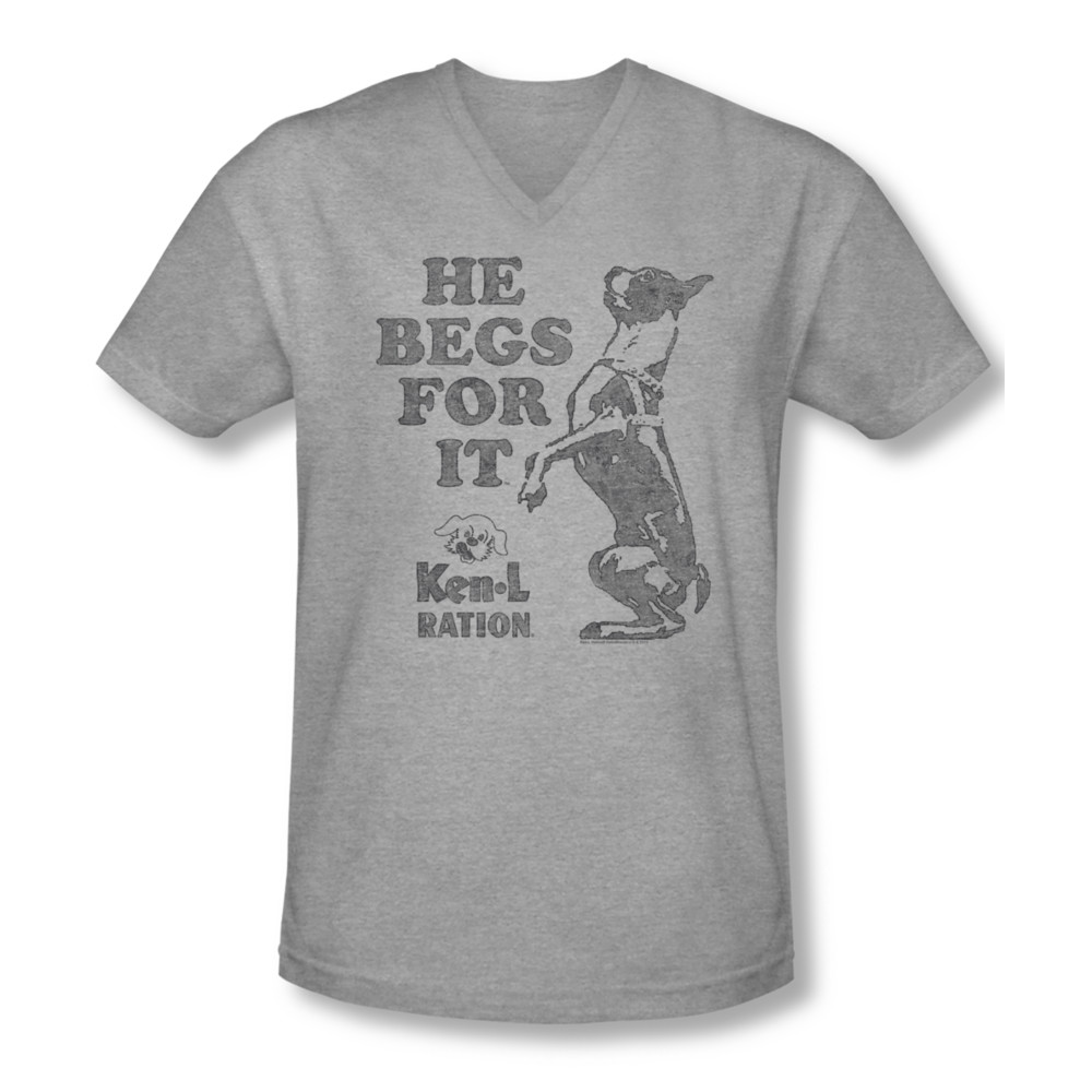 | | Ken L Ration Shirt Slim Fit V-Neck Beg For It Athletic Heather T-ShirtKen L Ration Shirt Slim Fit V-Neck Beg For It Athletic Heather T-Shirt Known for the, My dogs better than your dog, song the Ken L Ration dog food was once the best selling dog food in the U.S. Officially Licensed Available in Small, Medium, Large, XL, 2XL ![]() |