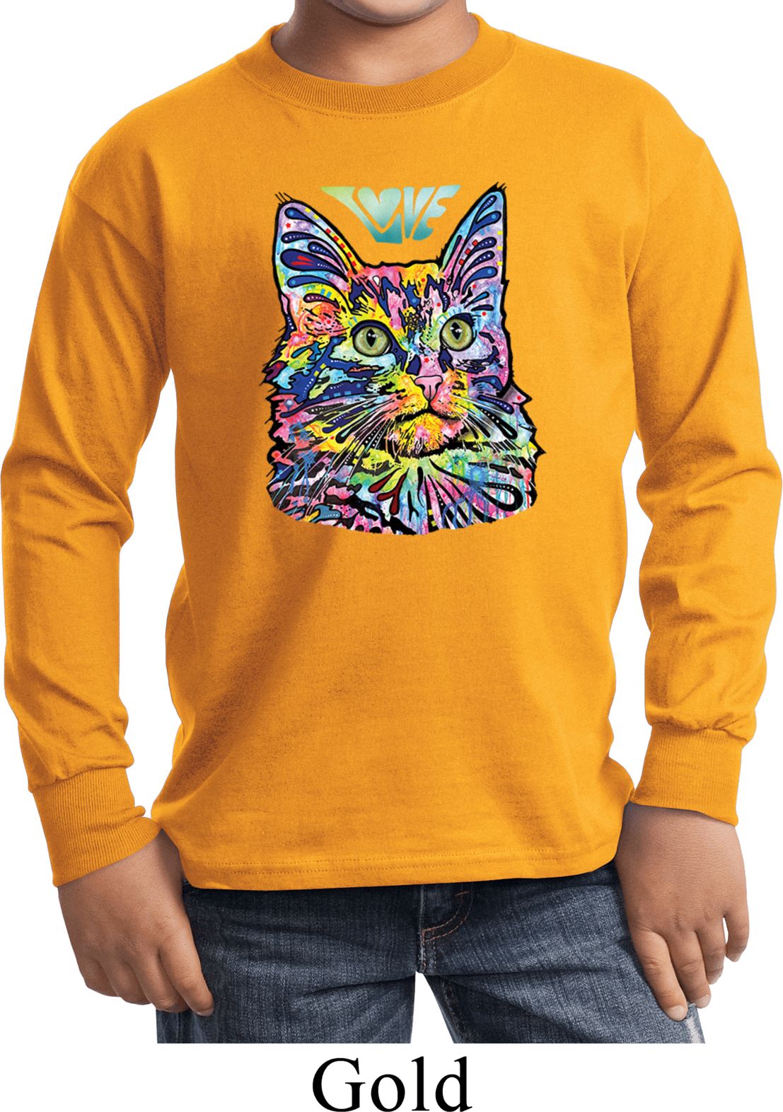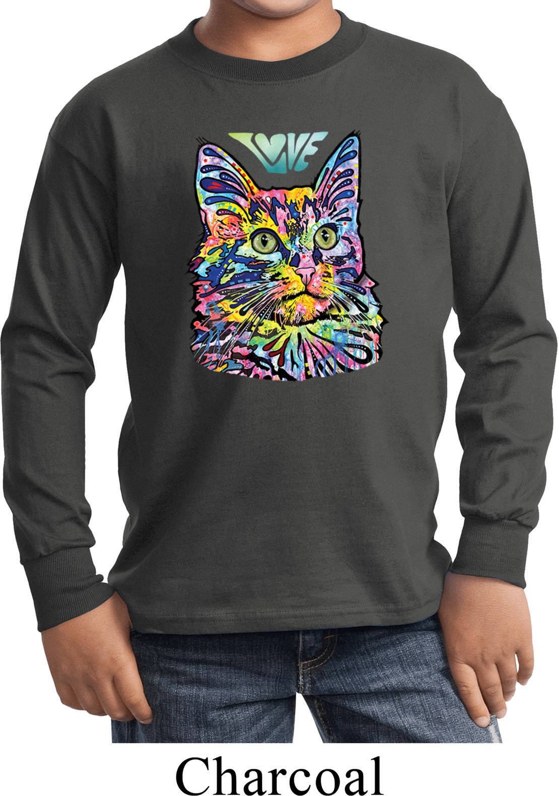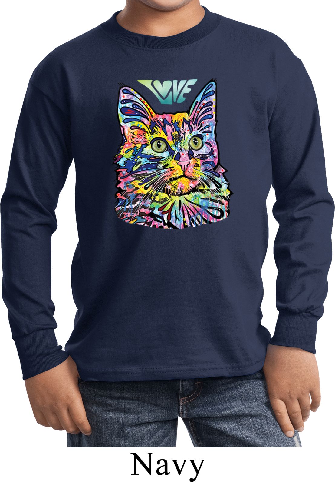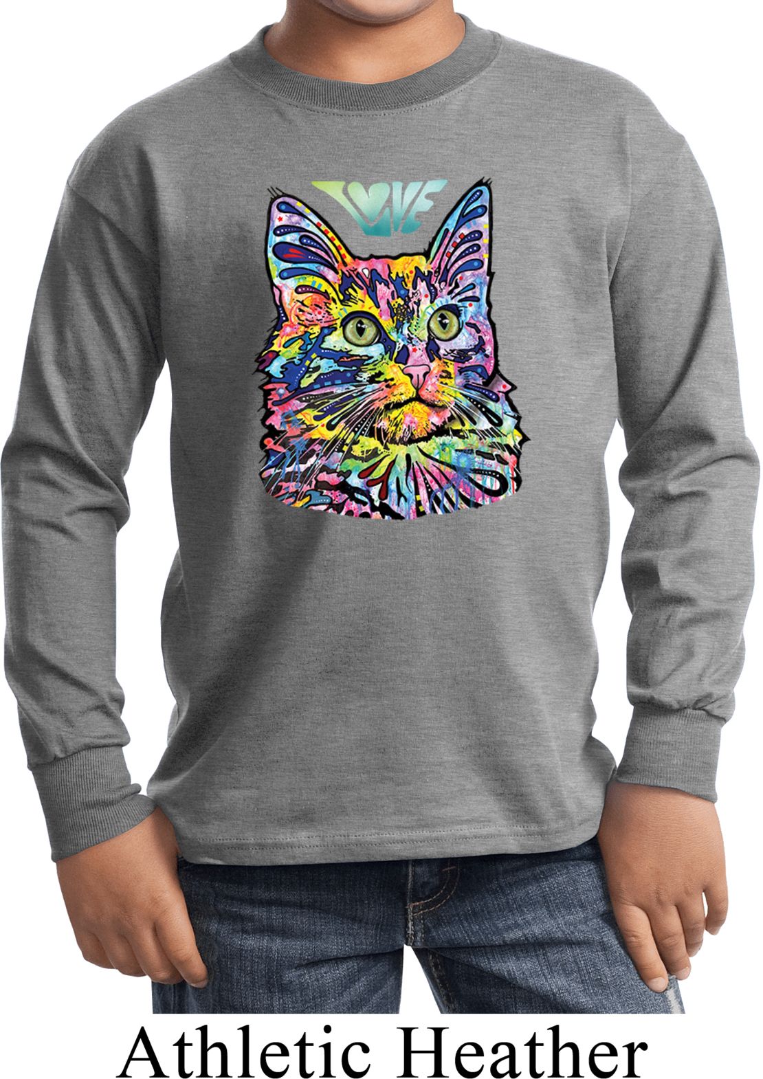 | | Kids Cat Tee Love Cat Youth Long SleeveA youth long sleeve shirt featuring a colorful cat portrait with Love written above. Our kids tee makes a perfect gift for cat lovers! Made of 100% cotton. (Athletic Heather is made with a blend of cotton/poly) Available in sizes Small through XL. Machine wash cold with like colors; dry low heat. ![]() |