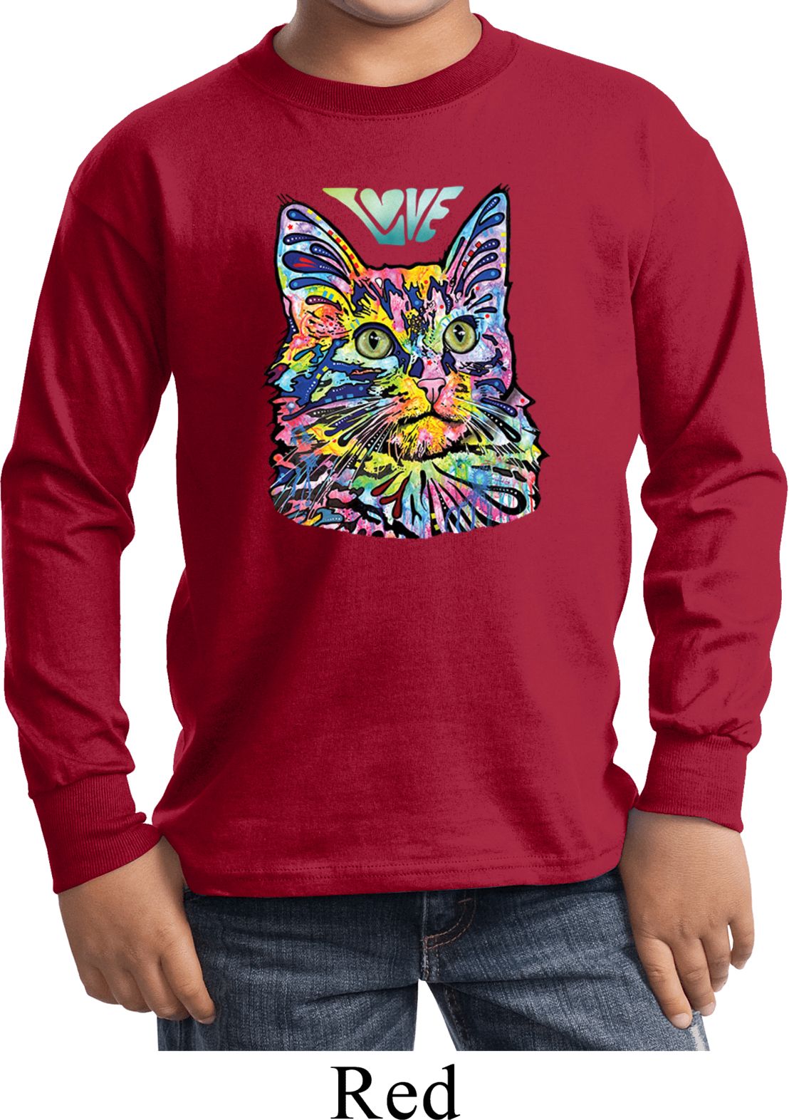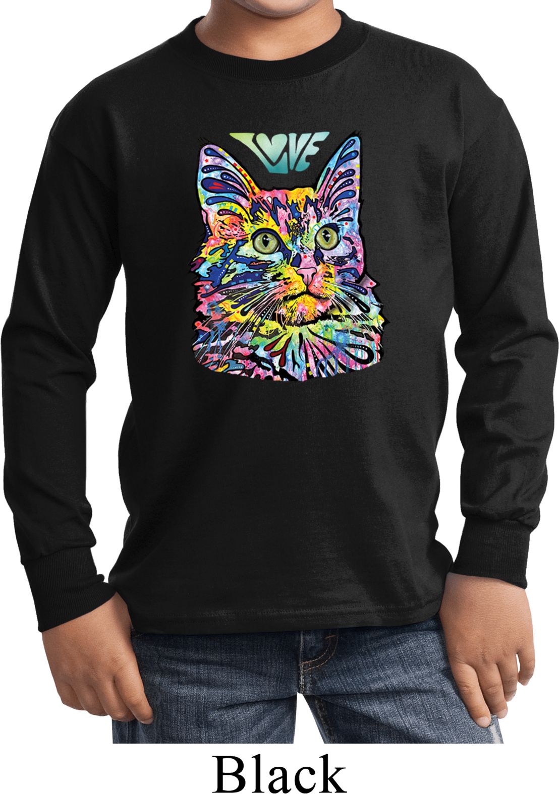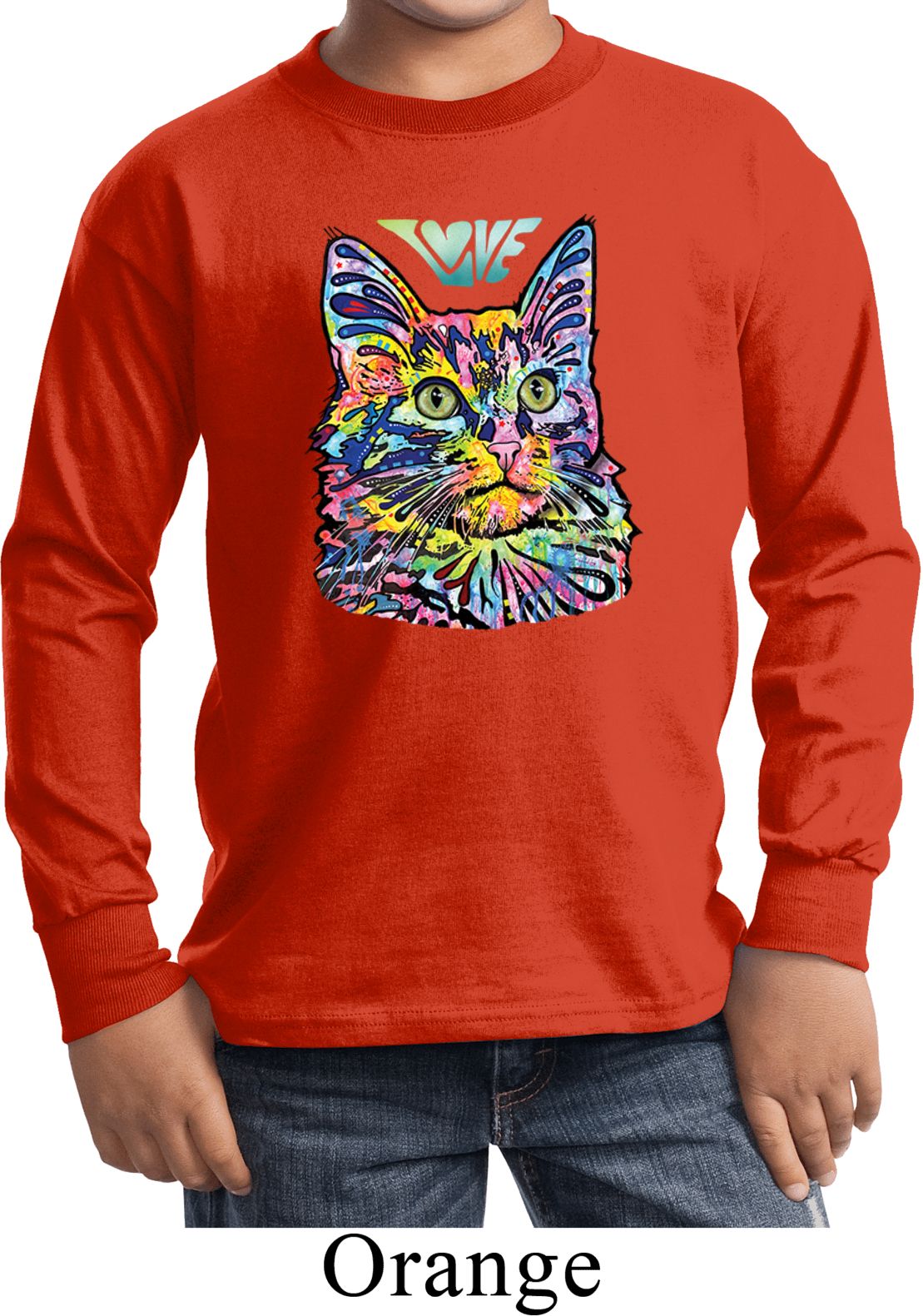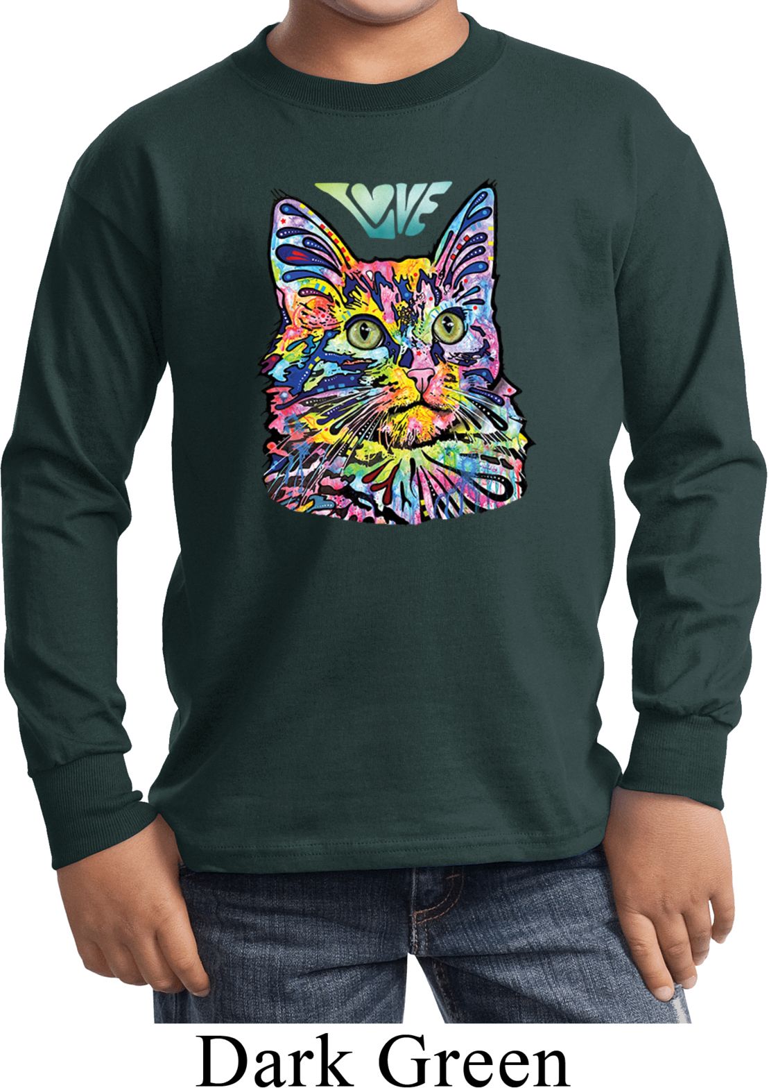 | | Kids Cat Tee Love Cat Youth Long SleeveA youth long sleeve shirt featuring a colorful cat portrait with Love written above. Our kids tee makes a perfect gift for cat lovers! Made of 100% cotton. (Athletic Heather is made with a blend of cotton/poly) Available in sizes Small through XL. Machine wash cold with like colors; dry low heat. ![]() |