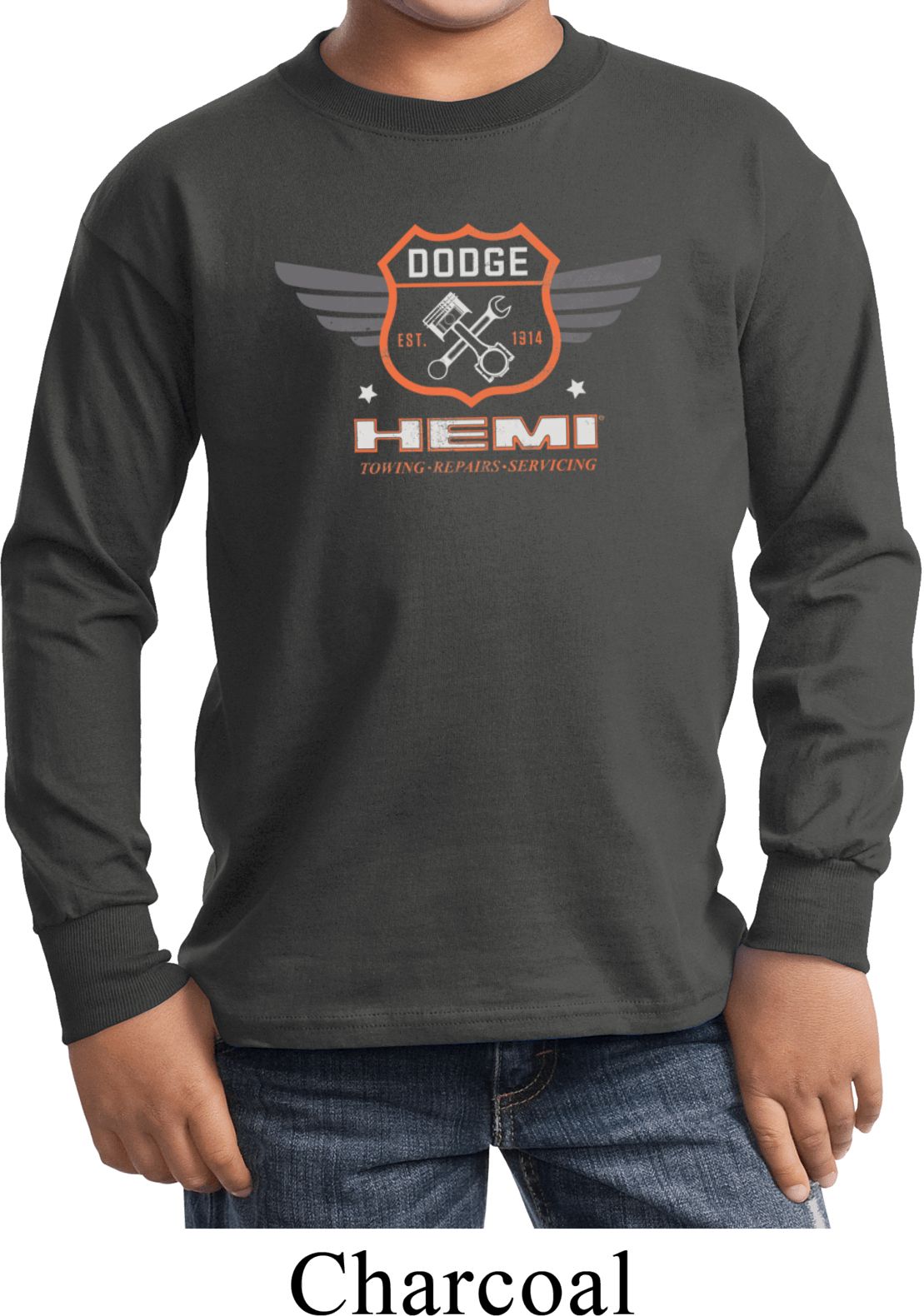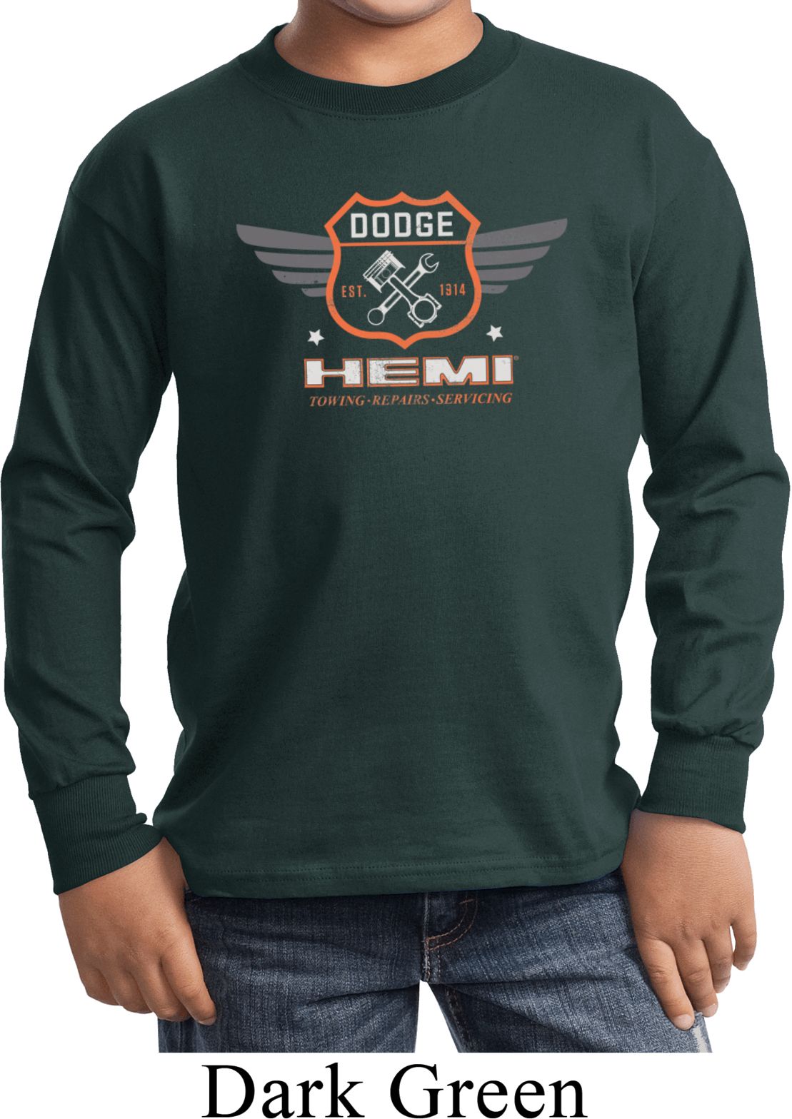 | | Kids Dodge Garage Hemi Long Sleeve ShirtKids Dodge Garage Hemi Long Sleeve Shirt A great shirt for someone who loves Dodge 100% cotton Ash and athletic heather are a cotton/poly blend Available in Youth Small, Youth Medium, Youth Large & Youth XL Also available in colors Black, Charcoal, Dark Green, Navy, Purple, and Royal ![]() |