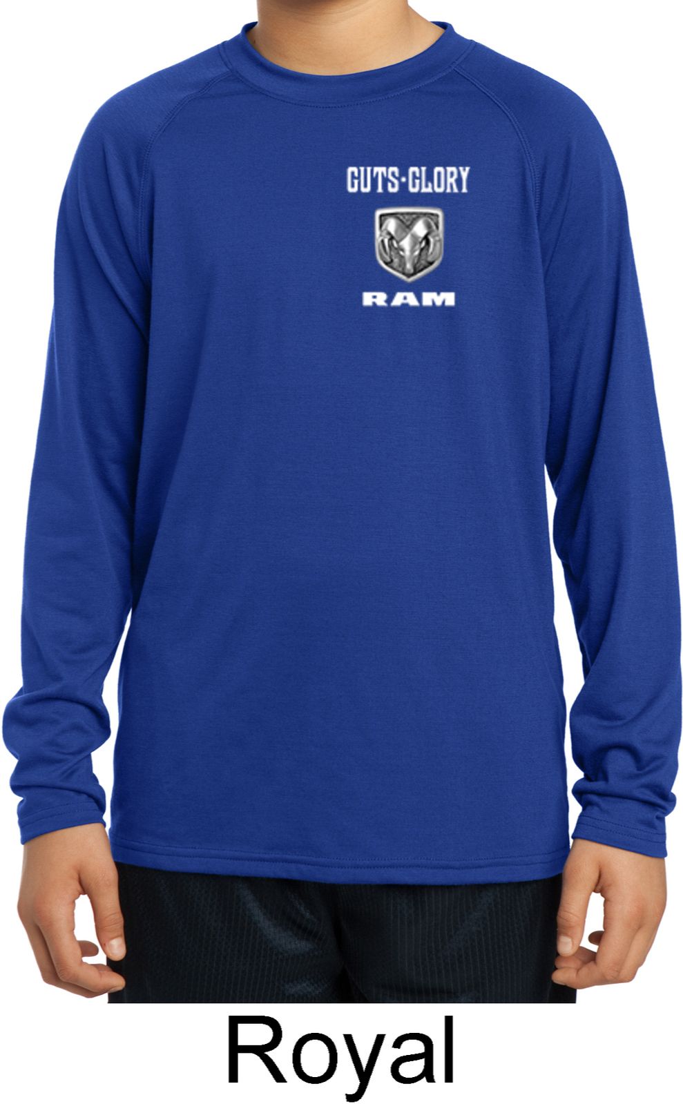 | | Kids Dodge Guts and Glory Ram Pocket Print Dry Wicking Long SleeveKids Dodge Guts and Glory Ram Pocket Print Dry Wicking Long Sleeve A great shirt for someone who loves Dodge Poly/Spandex Available in Youth Small, Youth Medium, Youth Large & Youth XL Also available in colors Black, Heather Grey, Navy, Red, and Royal |