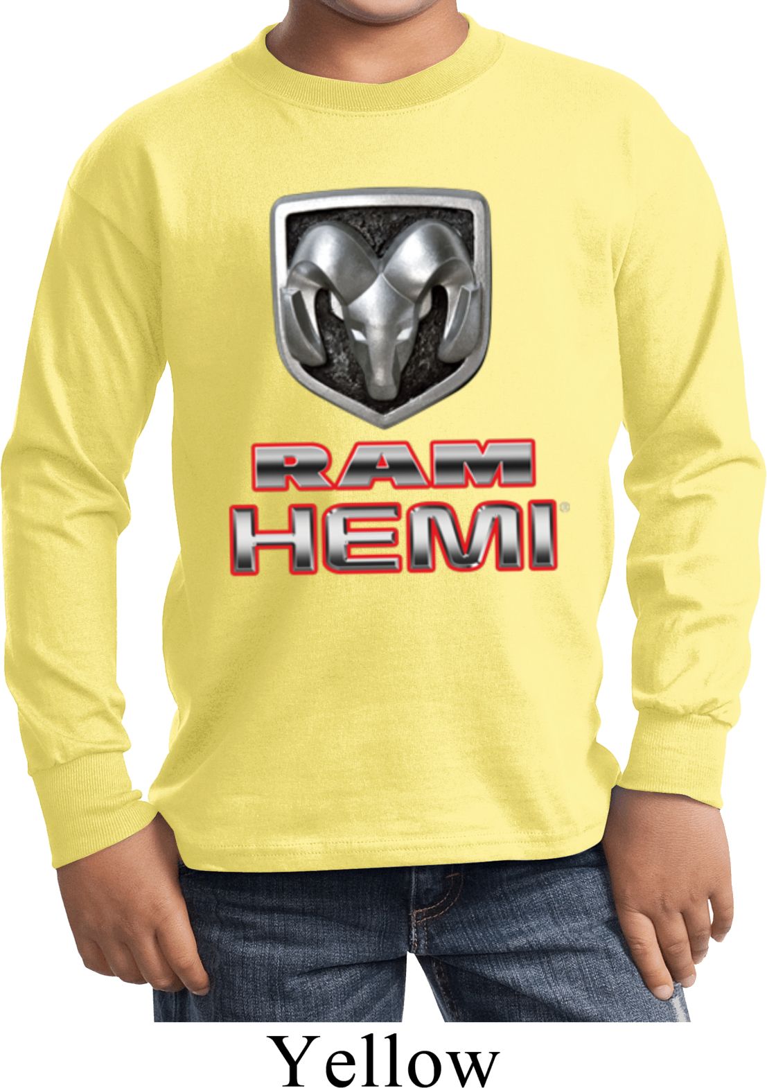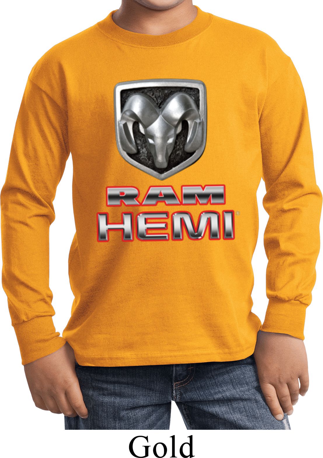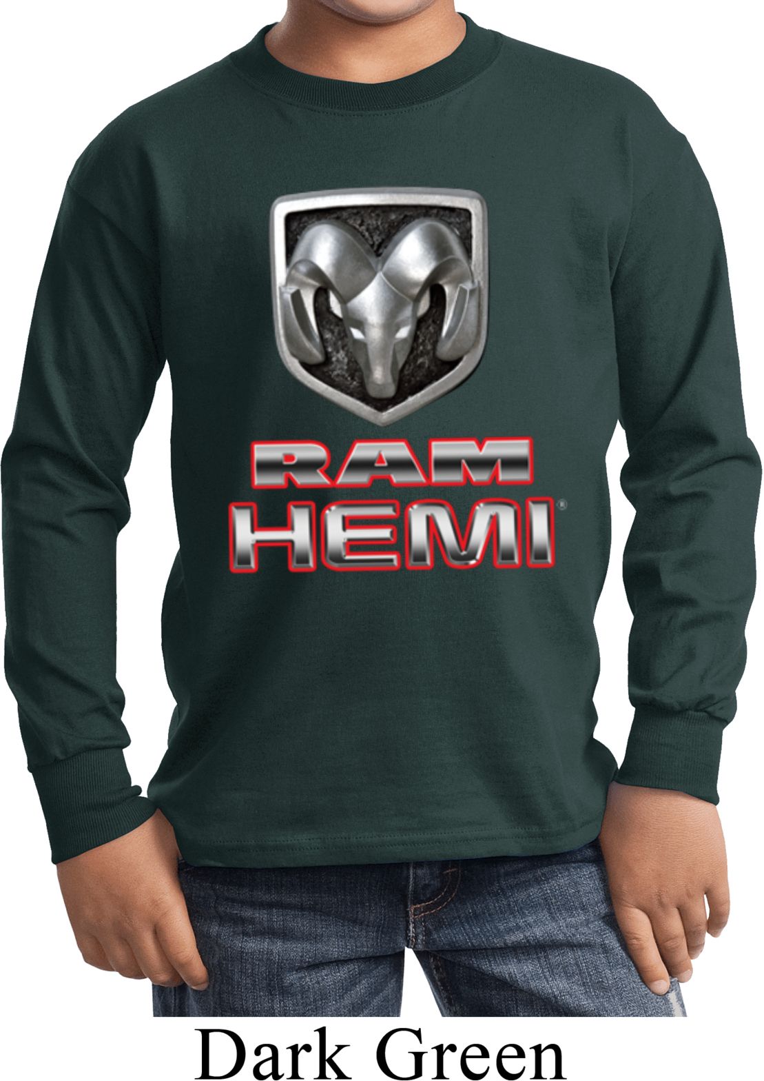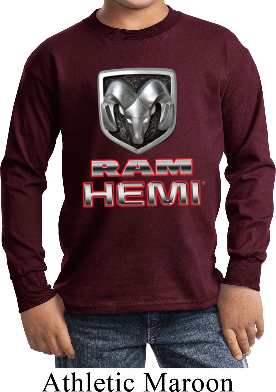 | | Kids Dodge Shirt Ram Hemi Logo Long Sleeve Tee T-ShirtKids Dodge Shirt Ram Hemi Logo Long Sleeve Tee T-Shirt 100% cotton Ash and athletic heather are a cotton/poly blend Available in Youth Small, Youth Medium, Youth Large & Youth XL Also available in colors Ash, Athletic Heather, Athletic Maroon, Black, Charcoal, Dark Green, Gold, Navy, Orange, Purple, Red, Royal, White, and Yellow ![]() |