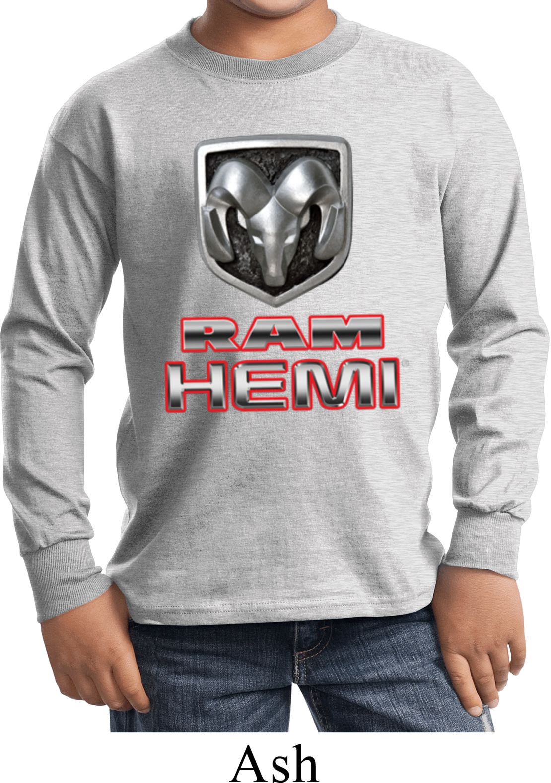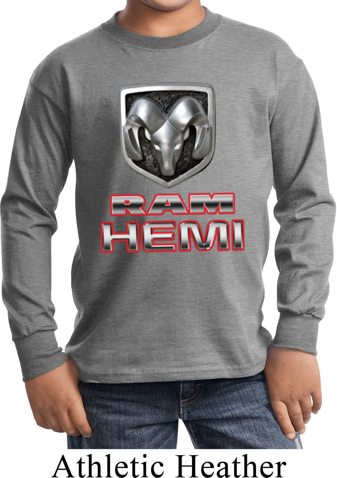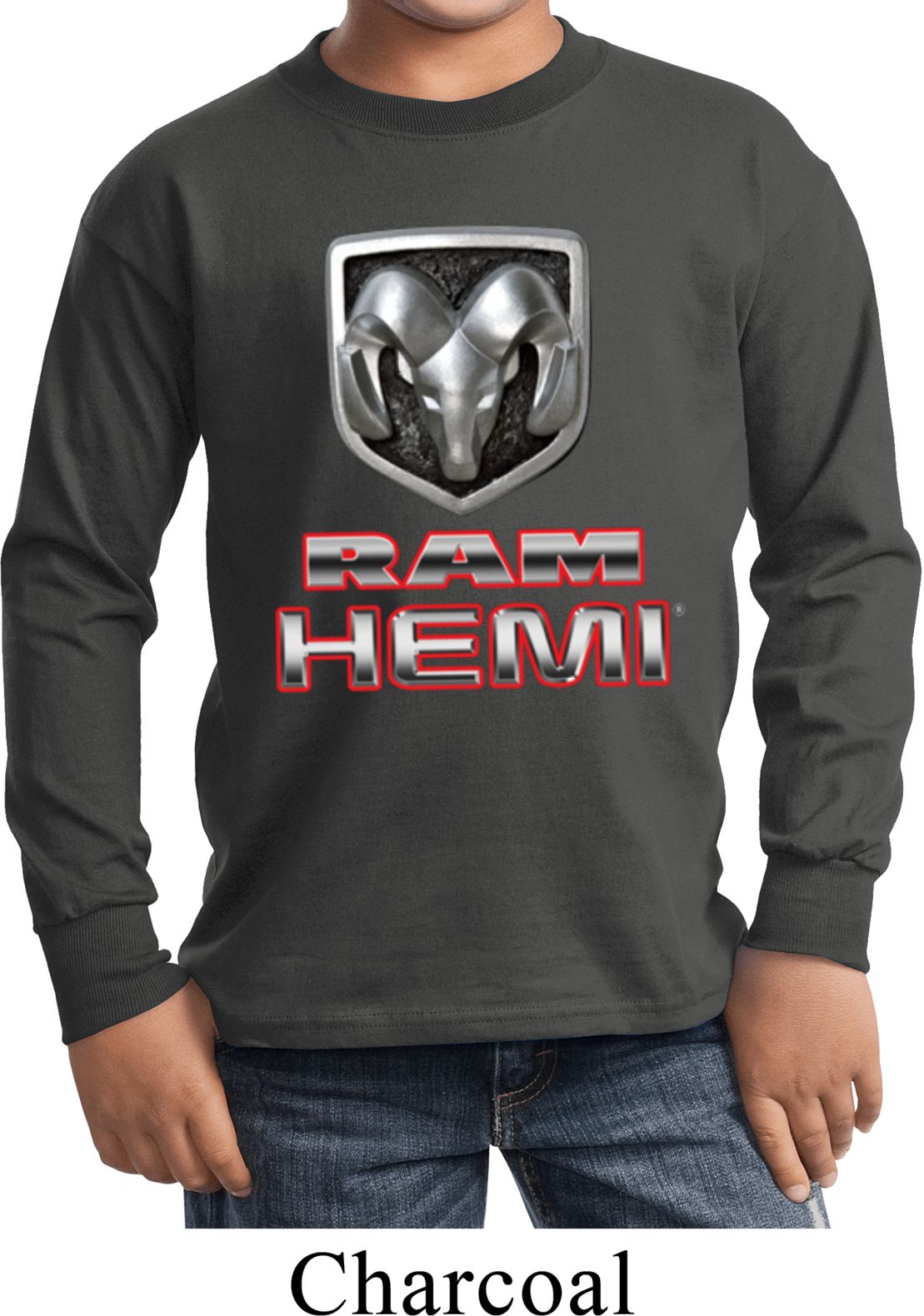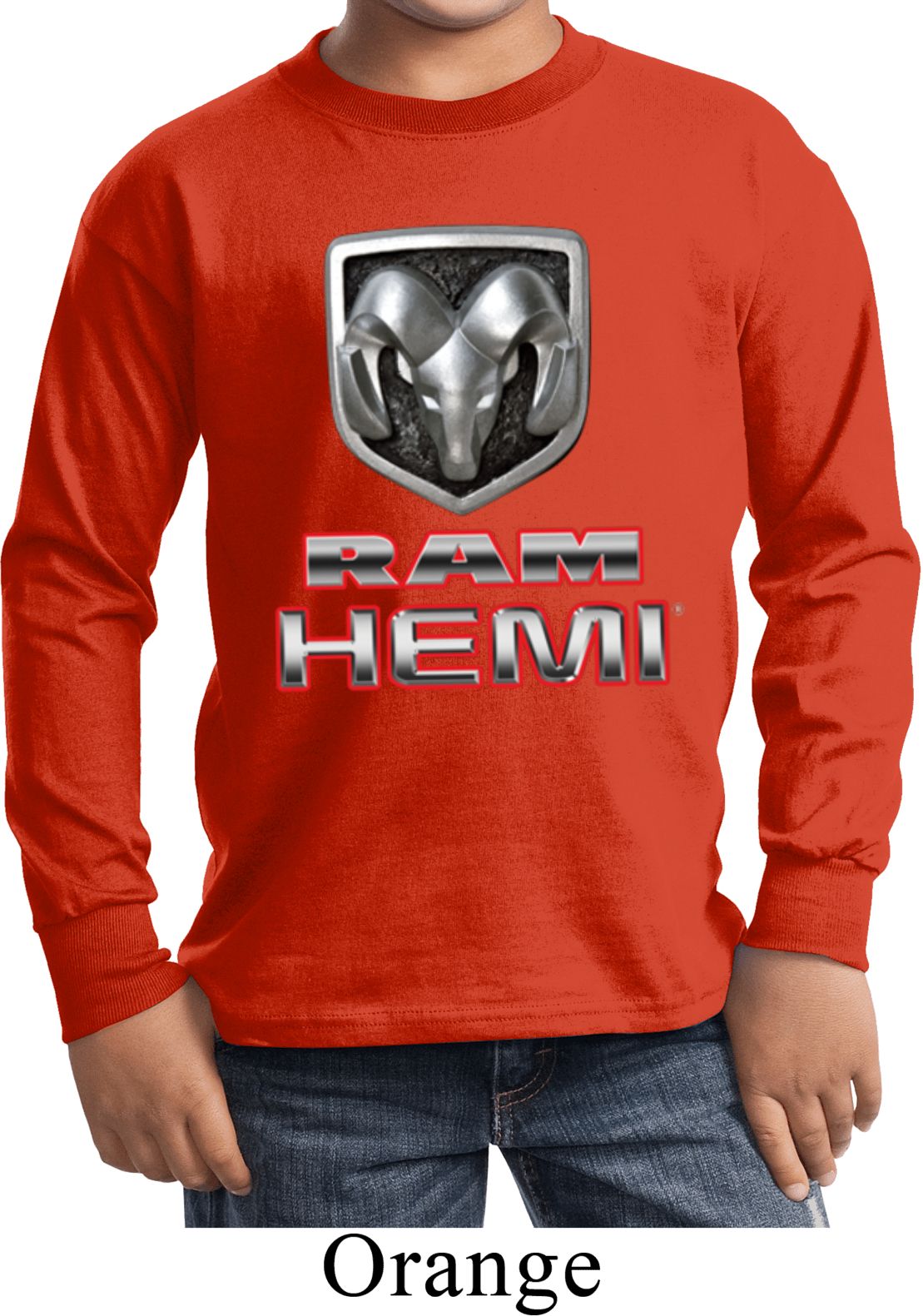 | | Kids Dodge Shirt Ram Hemi Logo Long Sleeve Tee T-ShirtKids Dodge Shirt Ram Hemi Logo Long Sleeve Tee T-Shirt 100% cotton Ash and athletic heather are a cotton/poly blend Available in Youth Small, Youth Medium, Youth Large & Youth XL Also available in colors Ash, Athletic Heather, Athletic Maroon, Black, Charcoal, Dark Green, Gold, Navy, Orange, Purple, Red, Royal, White, and Yellow ![]() |