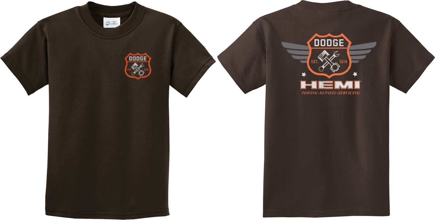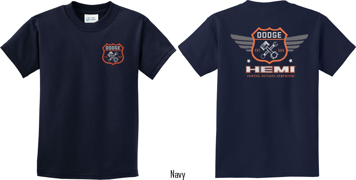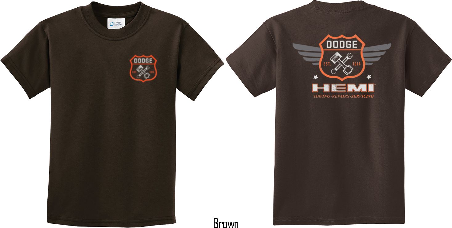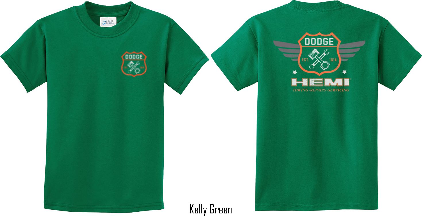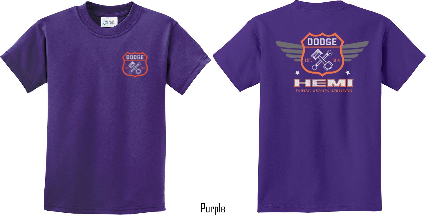 | | Kids Dodge Tee Garage Hemi (Front & Back) Youth T-shirtA youth t-shirt featuring Dodge Garage Est. 1914 on the front and back Hemi: Towing, Repairs, Servicing. This kids tee makes an awesome gift for all Dodge car enthusiasts! Our youth shirt is made of 100% cotton. Available in sizes Small through XL. Machine wash cold with like colors; dry low heat. ![]() |