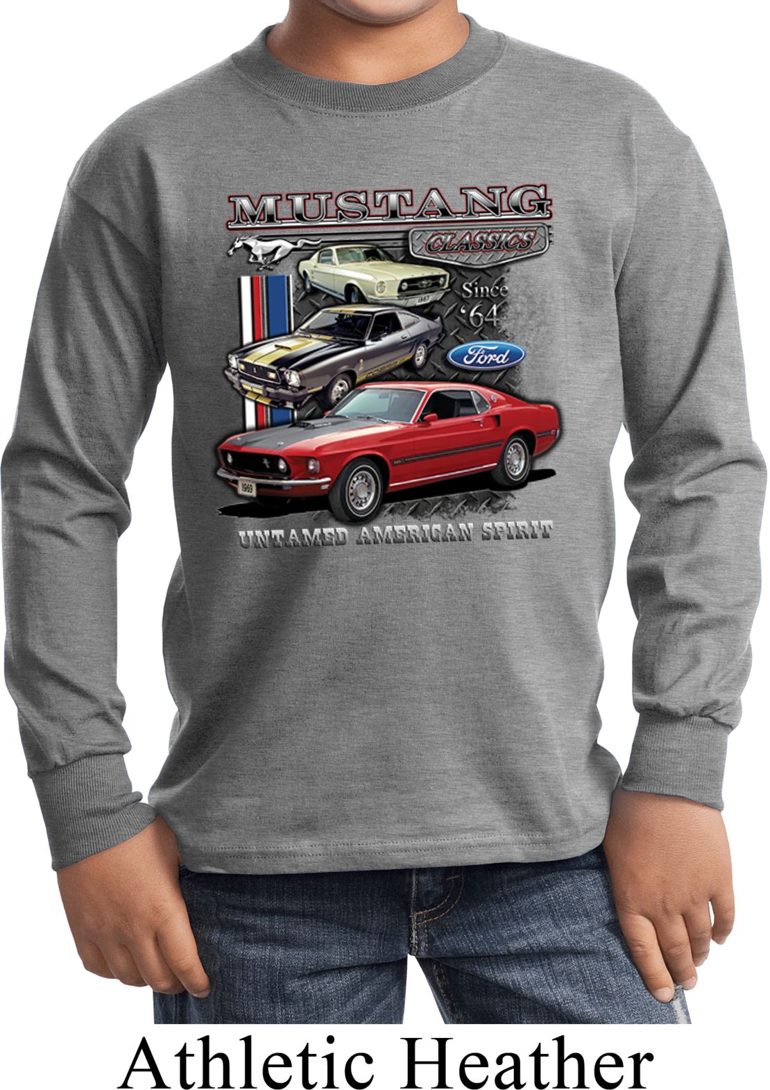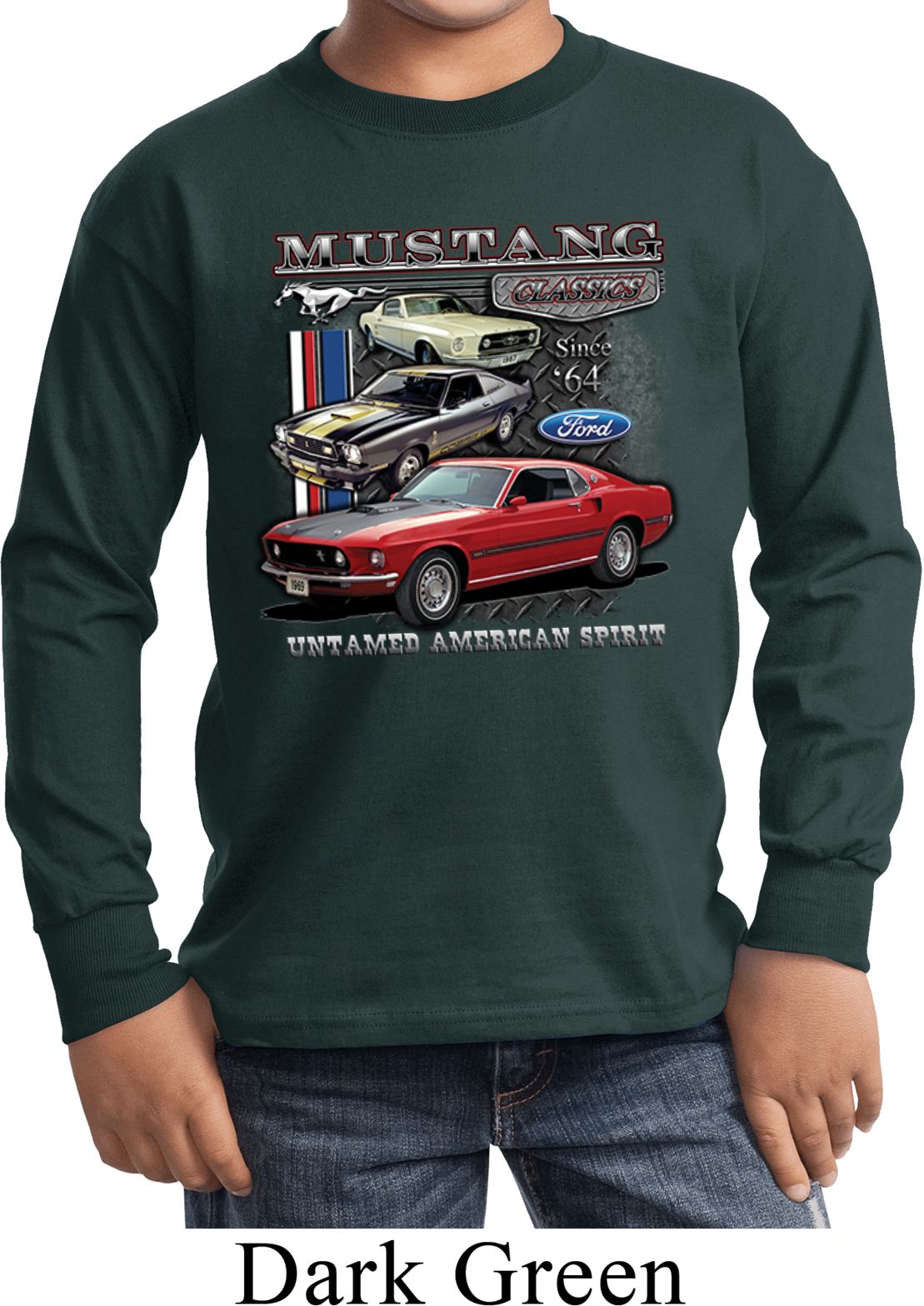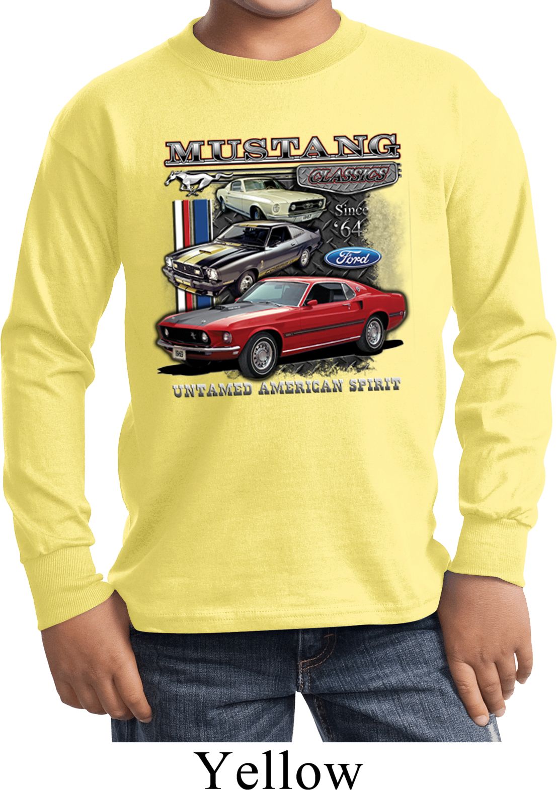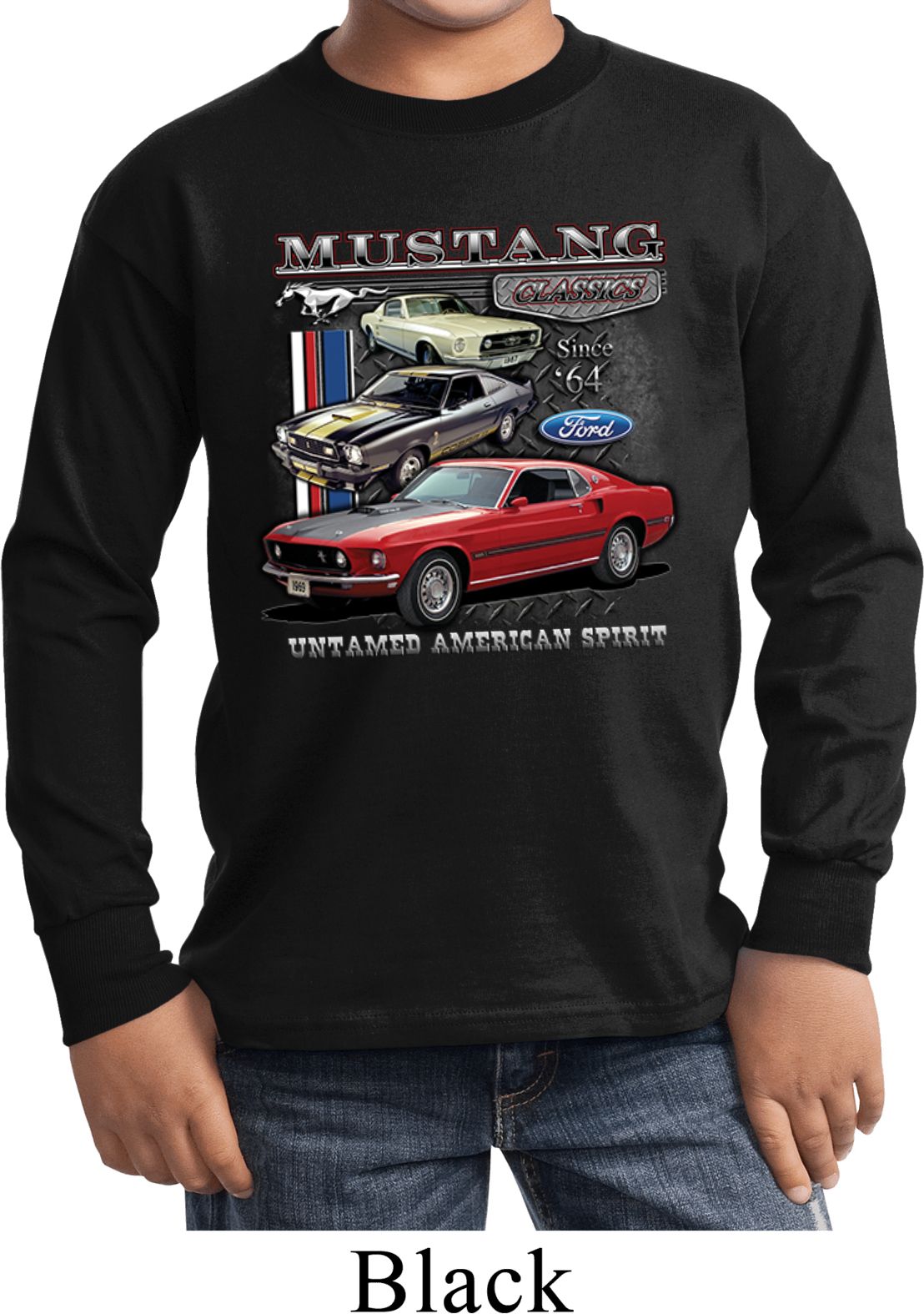 | | Kids Ford Tee Classic Mustangs Untamed Youth Long SleeveA youth long sleeve featuring Ford Mustang Classics since 1964, Untamed American Spirit. Our kids shirt is made of 100% cotton. (Athletic Heather is made with a blend of cotton/poly) Available in sizes Small through XL. Machine wash cold with like colors; dry low heat. ![]() |