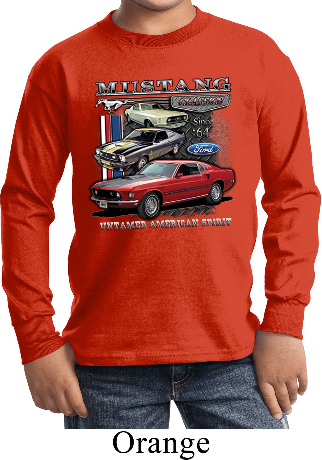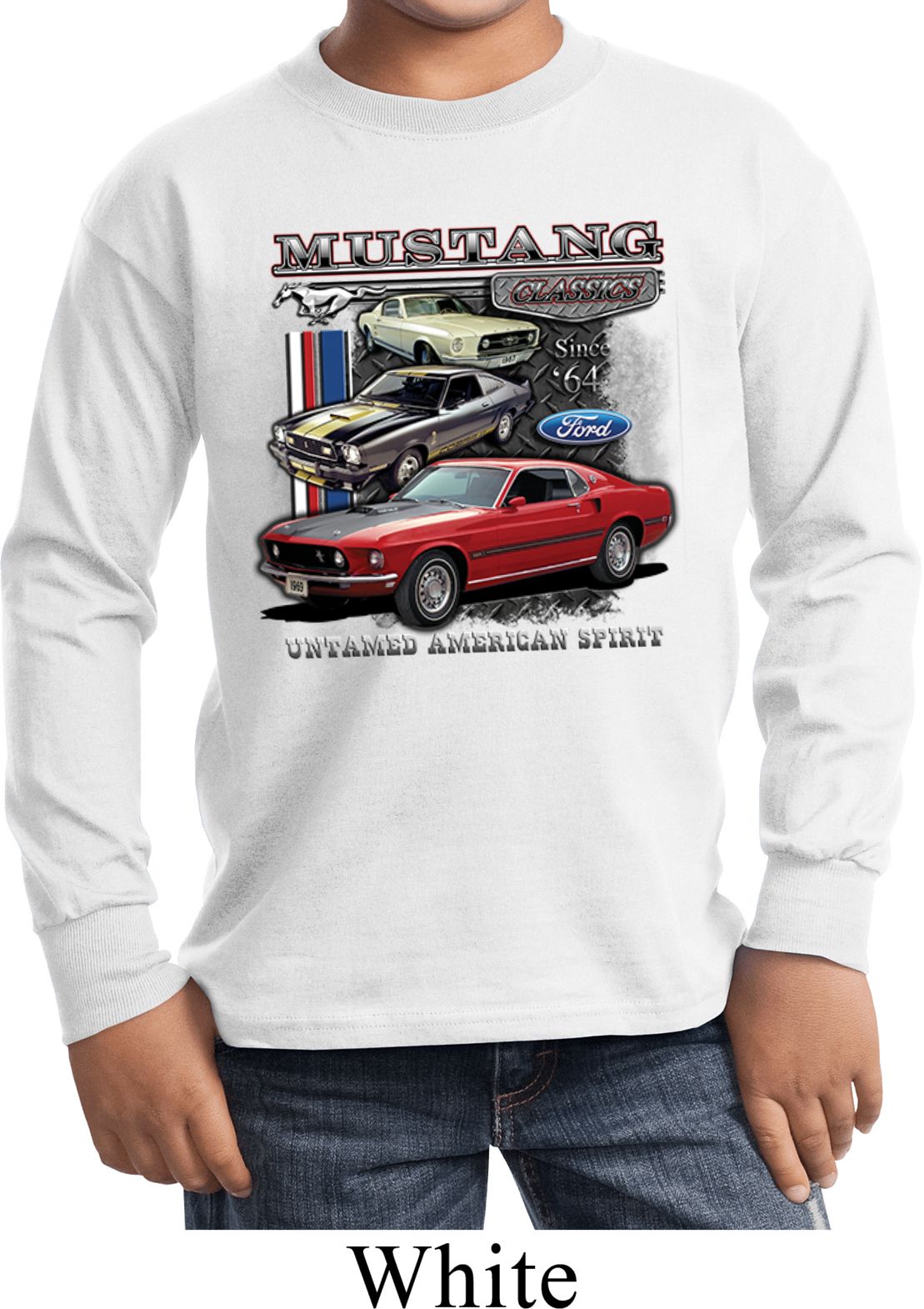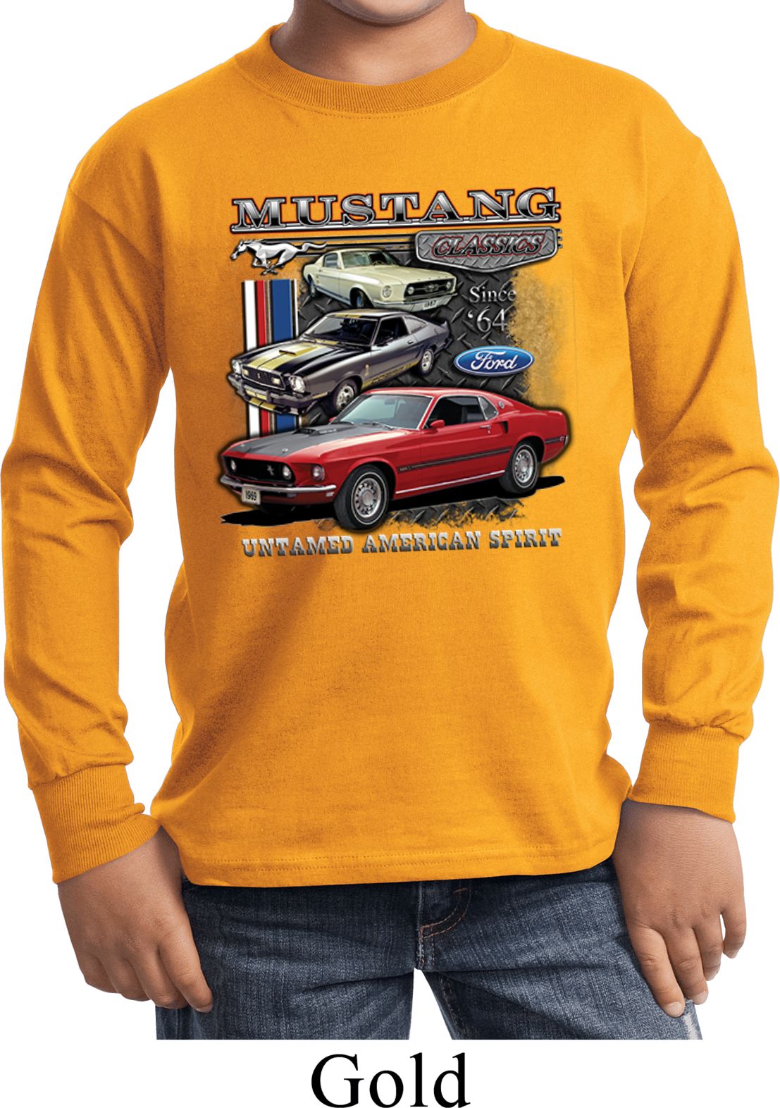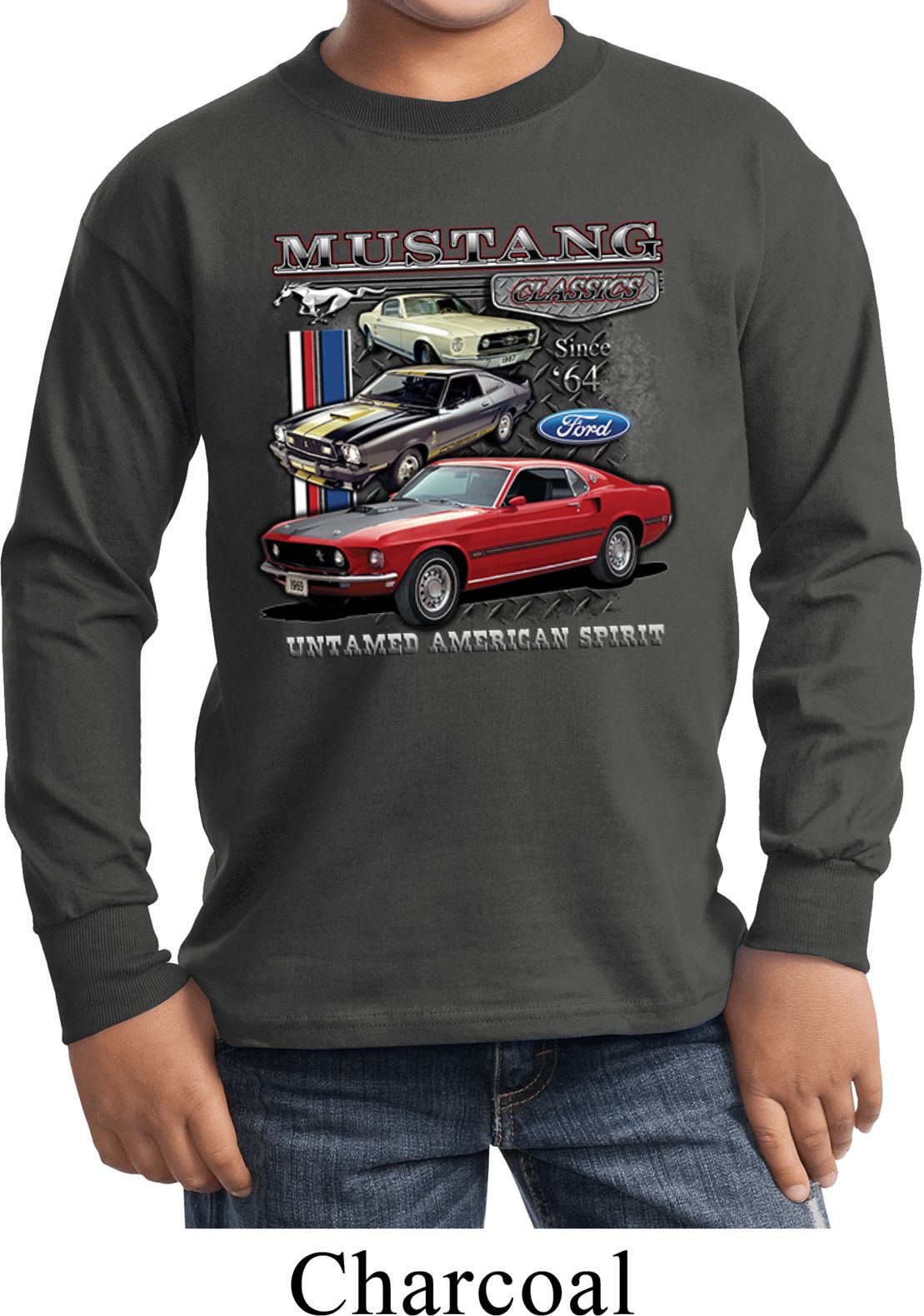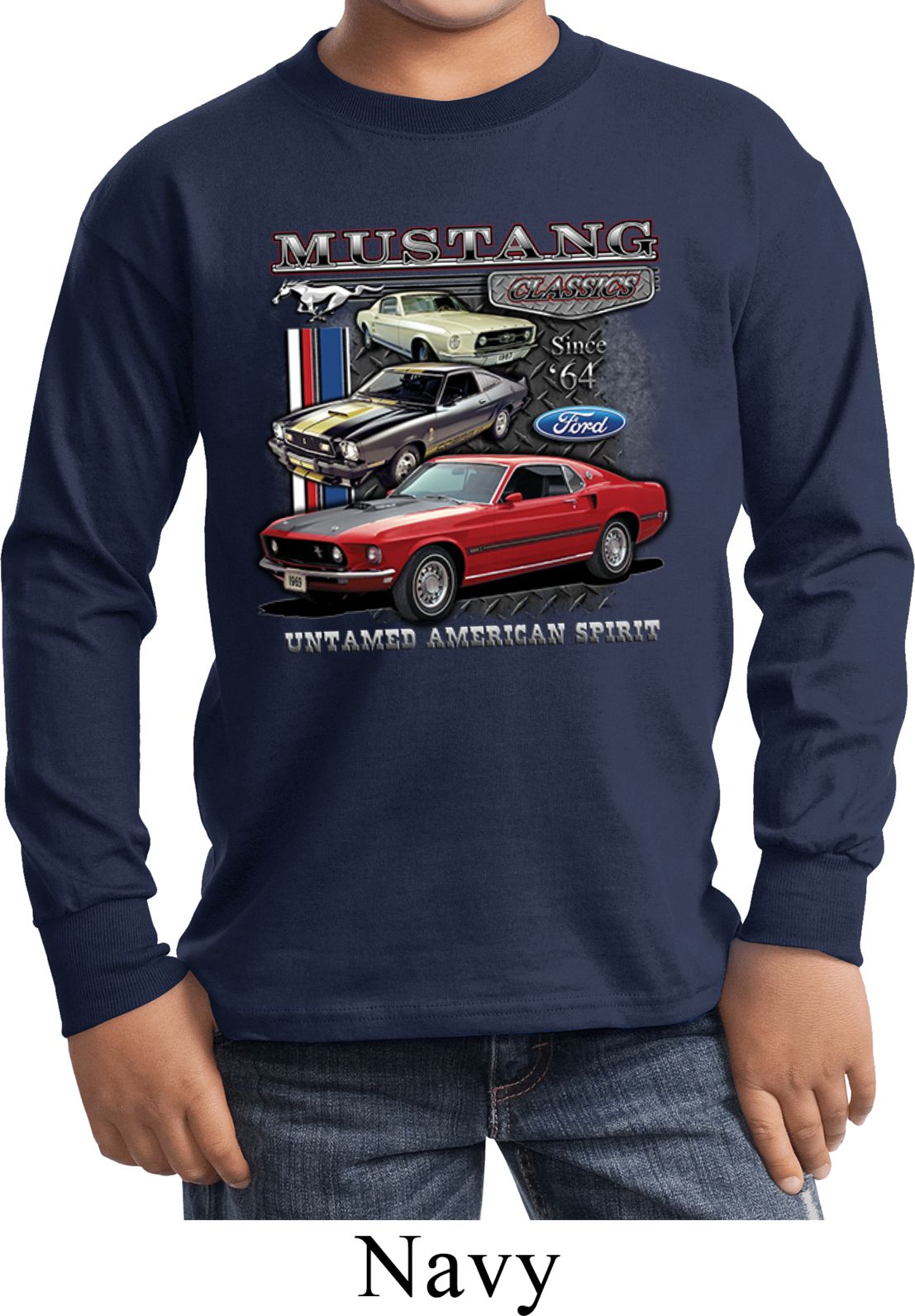 | | Kids Ford Tee Classic Mustangs Untamed Youth Long SleeveA youth long sleeve featuring Ford Mustang Classics since 1964, Untamed American Spirit. Our kids shirt is made of 100% cotton. (Athletic Heather is made with a blend of cotton/poly) Available in sizes Small through XL. Machine wash cold with like colors; dry low heat. ![]() |