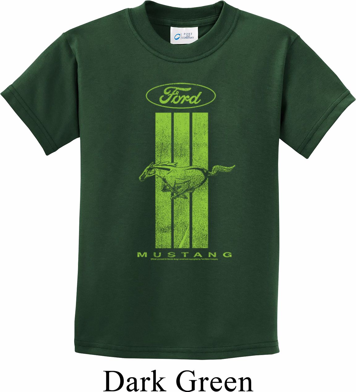| | Kids Ford Tee Green Mustang Stripe Youth T-shirtA kids tee featuring a green Ford Mustang Stripe. Our kids shirt is made of 100% cotton. (Ash and Athletic Heather are made with a blend of cotton/poly) A perfect gift for all who love Ford Mustangs! Available in sizes Small through XL. Machine wash cold with like colors; dry low heat. ![]() |