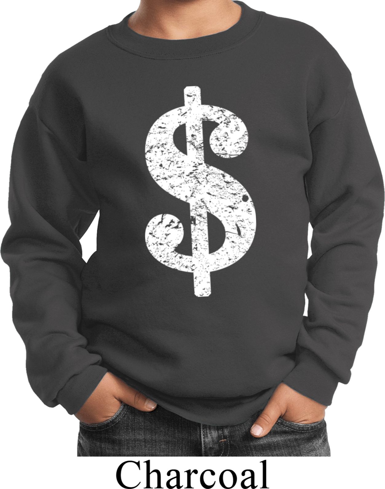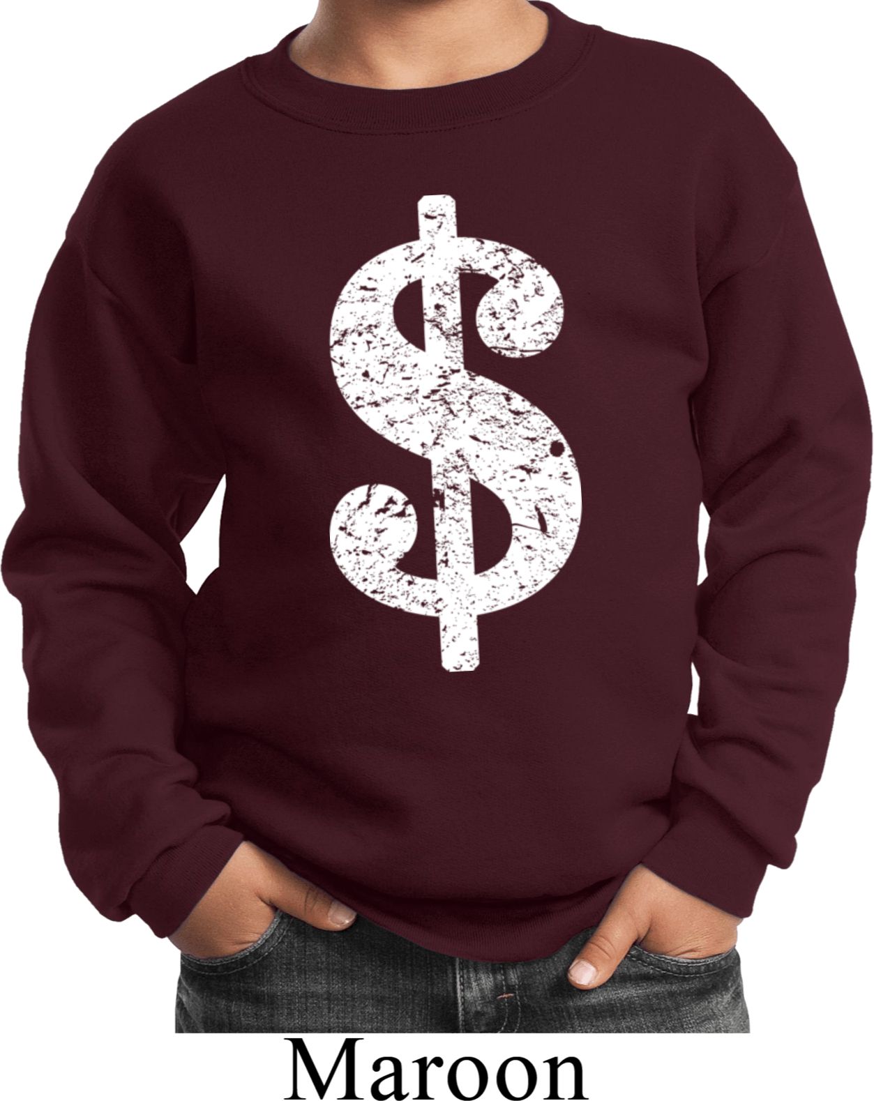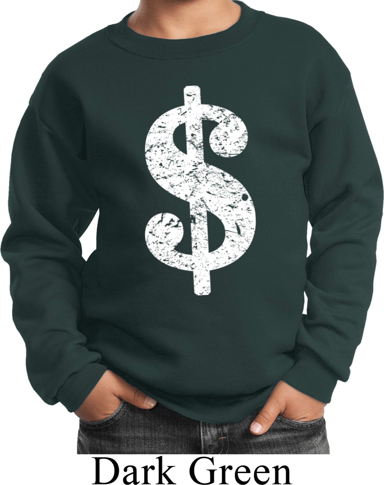 | | Kids Funny Sweatshirt Distressed Dollar Sign Sweat ShirtKids Funny Sweatshirt Distressed Dollar Sign Sweat Shirt A cotton/poly blend Available in Youth Small, Youth Medium, Youth Large & Youth XL Also available in colors Athletic Heather, Black, Carolina Blue, Charcoal, Dark Green, Kelly, Lime, Maroon, Navy, Neon Blue, Neon Green, Neon Orange, Neon Pink, Neon Yellow, Orange, Pale Pink, Purple, Red, Royal, and Sangria ![]() |