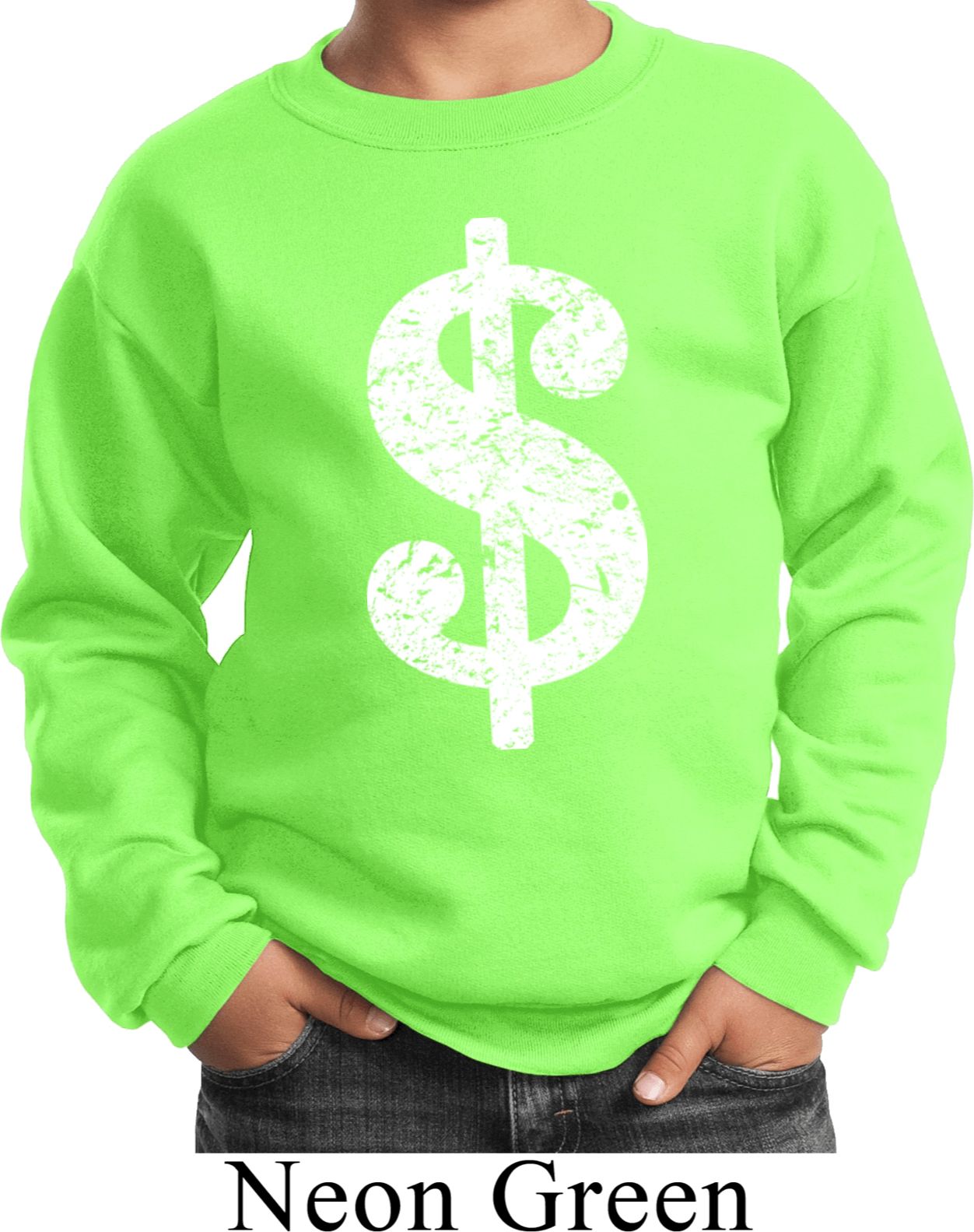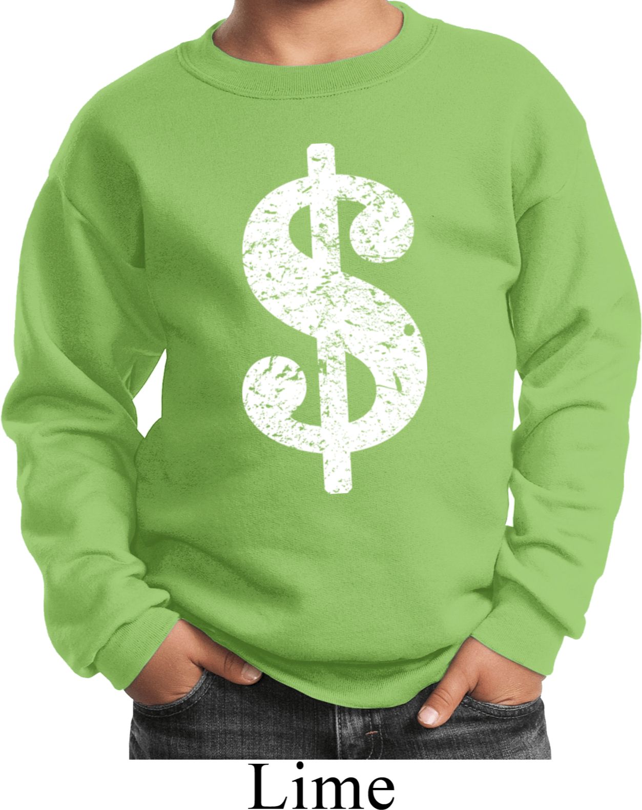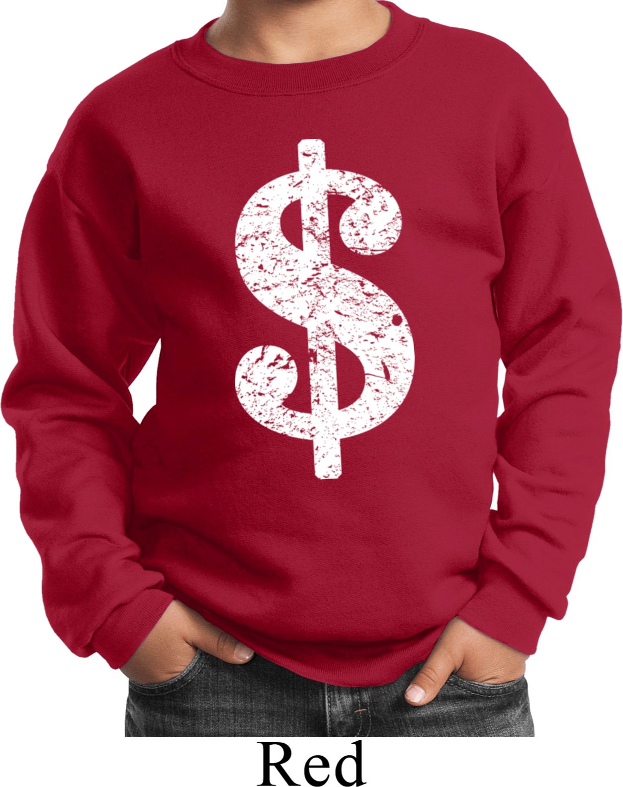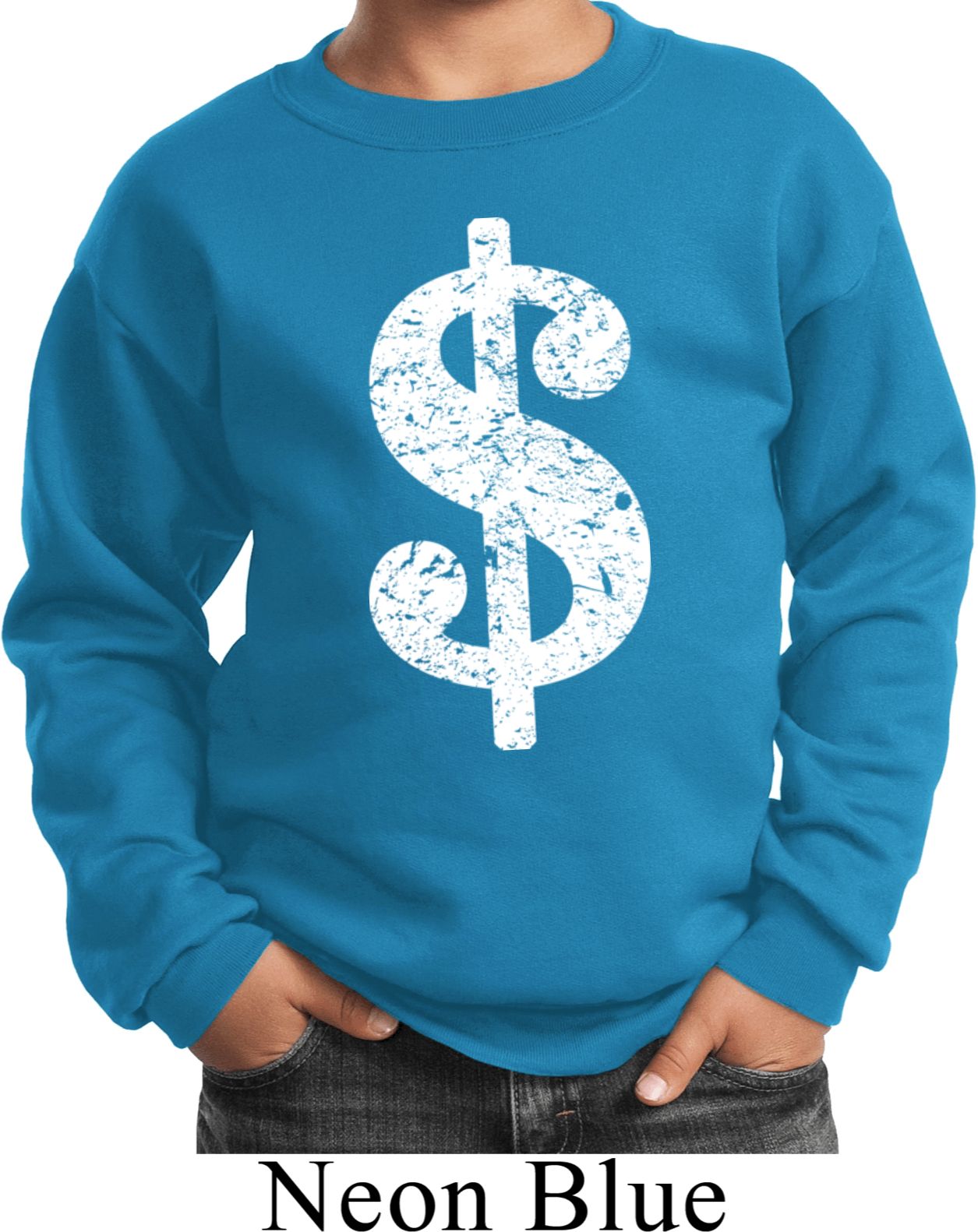 | | Kids Funny Sweatshirt Distressed Dollar Sign Sweat ShirtKids Funny Sweatshirt Distressed Dollar Sign Sweat Shirt A cotton/poly blend Available in Youth Small, Youth Medium, Youth Large & Youth XL Also available in colors Athletic Heather, Black, Carolina Blue, Charcoal, Dark Green, Kelly, Lime, Maroon, Navy, Neon Blue, Neon Green, Neon Orange, Neon Pink, Neon Yellow, Orange, Pale Pink, Purple, Red, Royal, and Sangria ![]() |