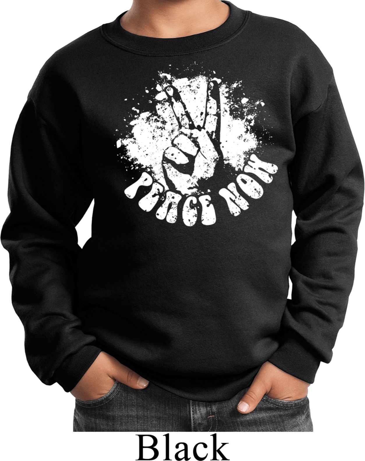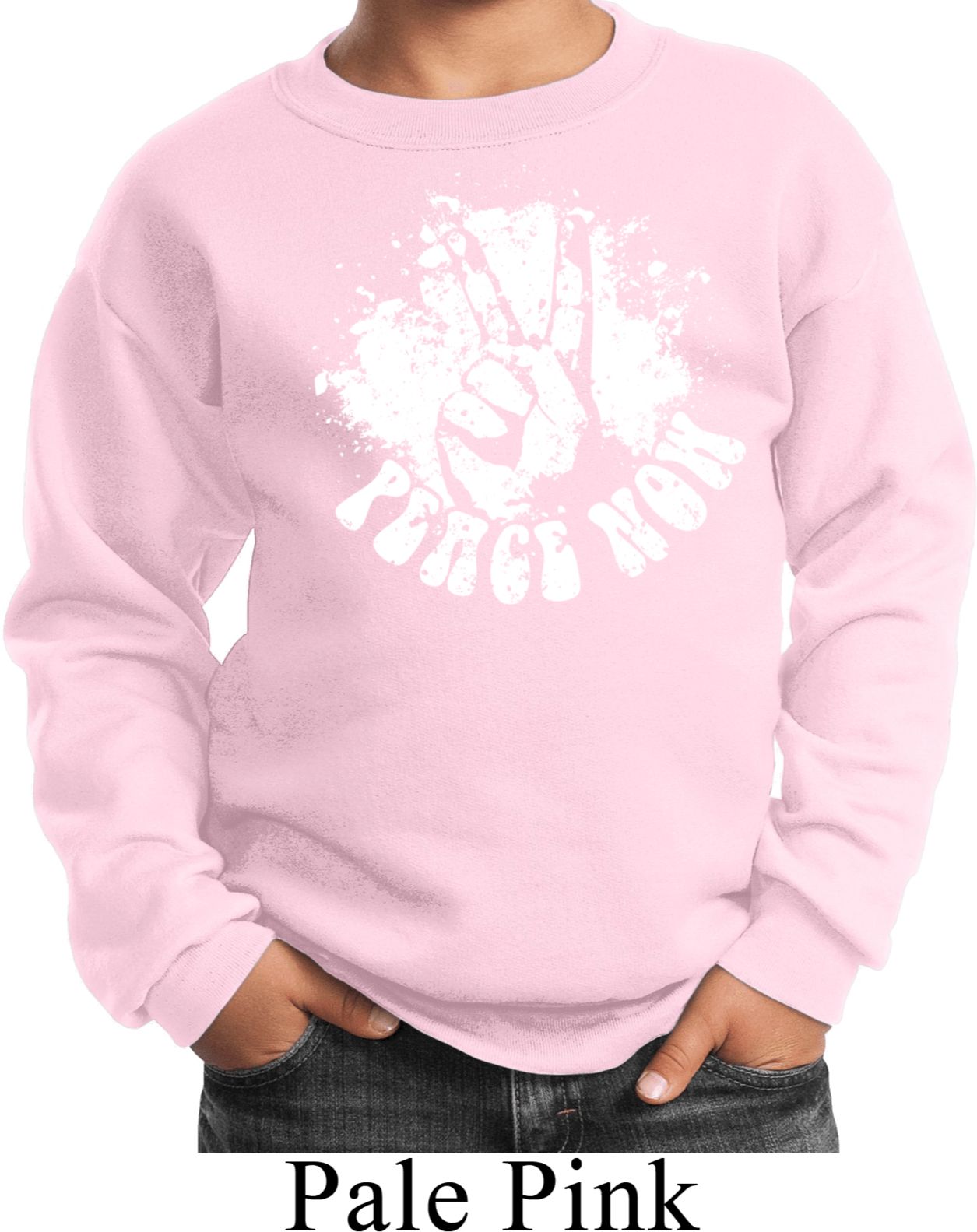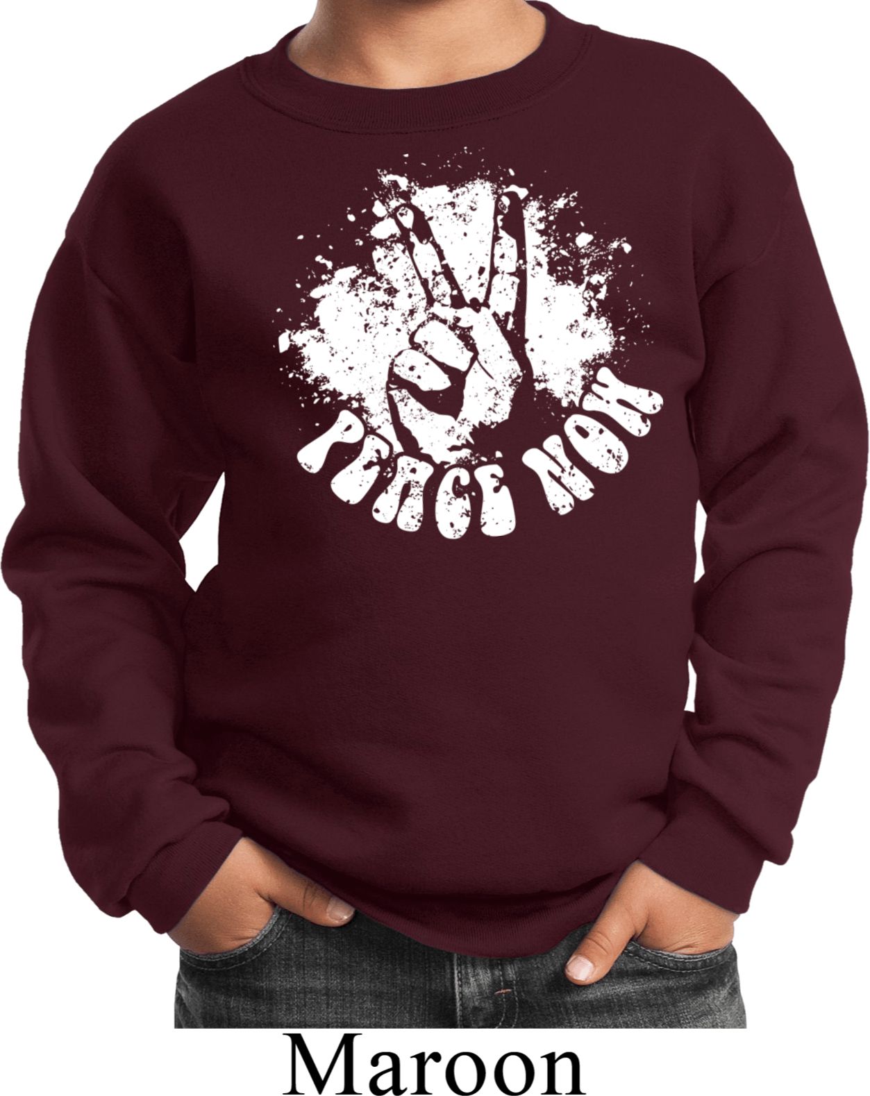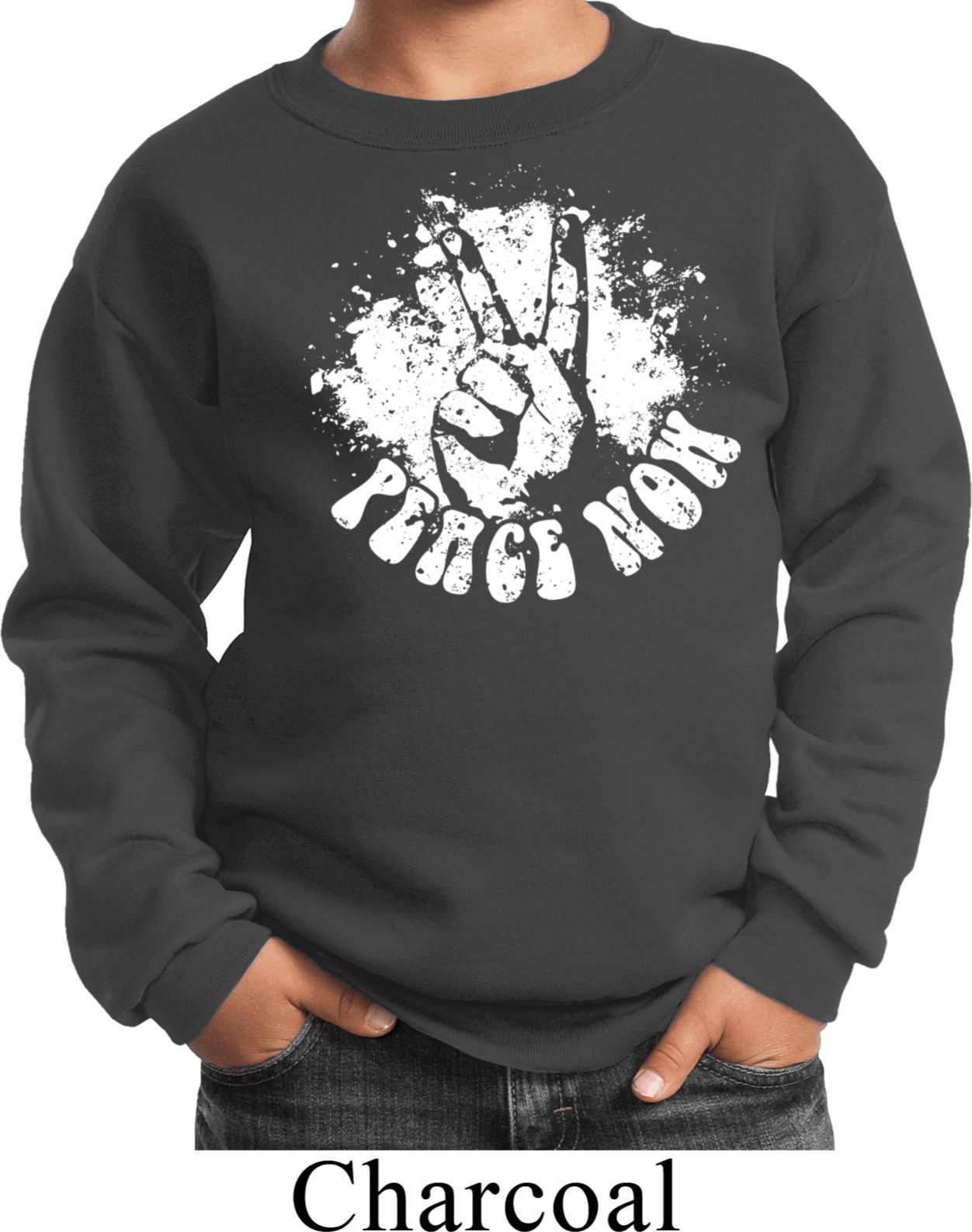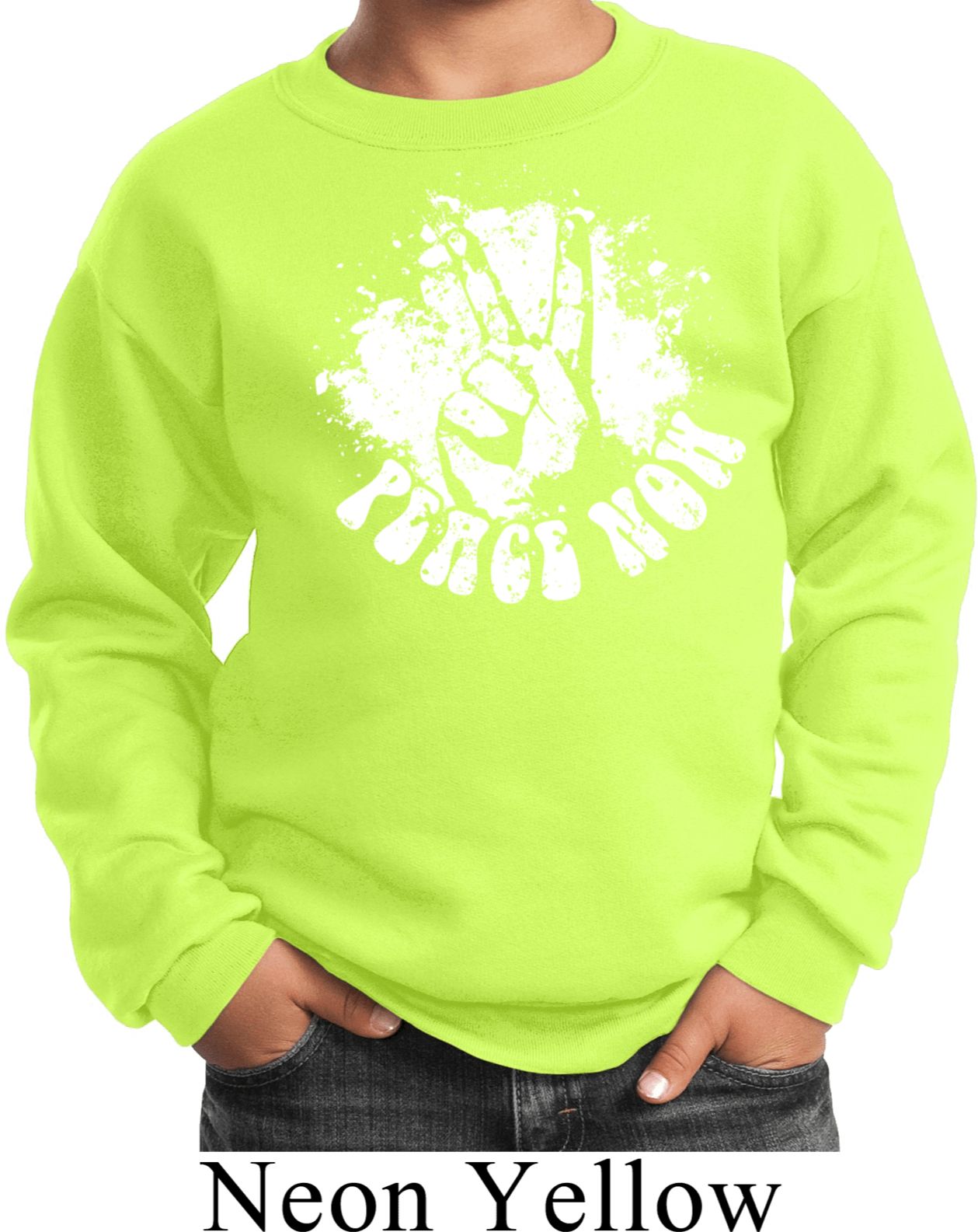 | | Kids Peace Sweatshirt Peace Now Sweat ShirtKids Peace Sweatshirt Peace Now Sweat Shirt A cotton/poly blend Available in Youth Small, Youth Medium, Youth Large & Youth XL Also available in colors Athletic Heather, Black, Carolina Blue, Charcoal, Dark Green, Kelly Green, Lime, Maroon, Navy, Neon Blue, Neon Green, Neon Orange, Neon Pink, Neon Yellow, Orange, Pale Pink, Purple, Red, Royal, and Sangria ![]() |