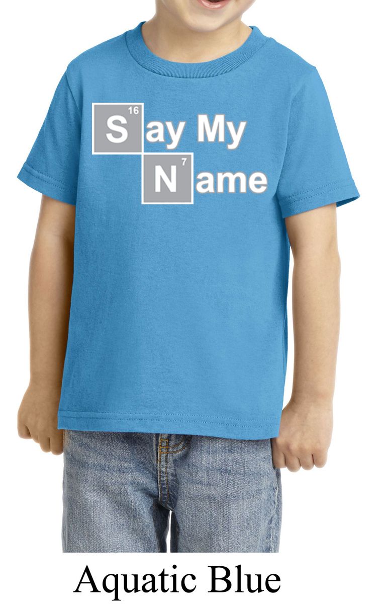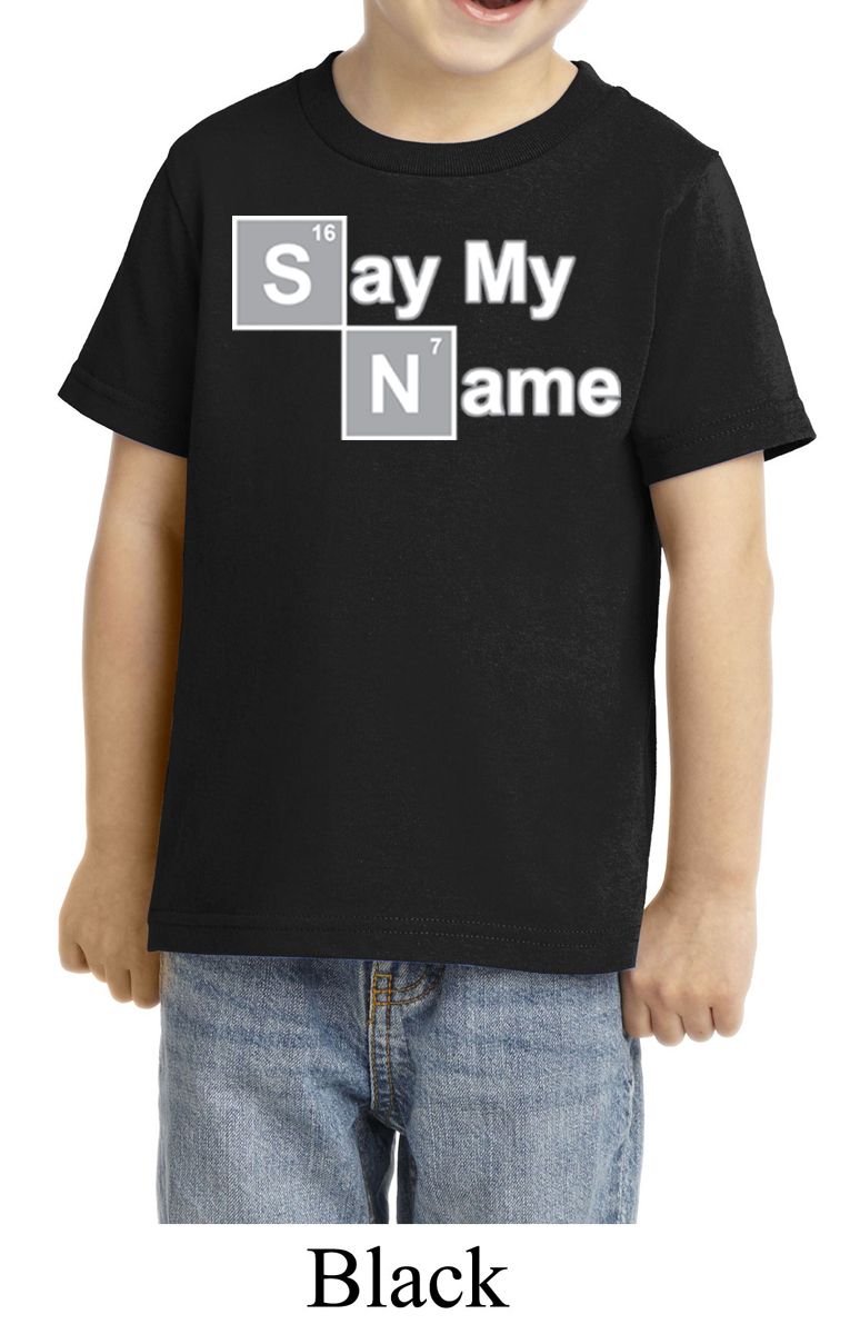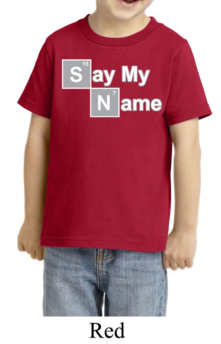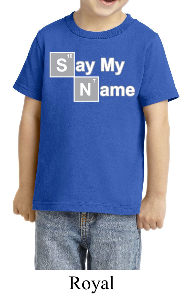 | | Kids Shirt Say My Name Toddler Tee T-ShirtKids Shirt Say My Name Toddler Tee T-Shirt 100% cotton Athletic heather is a cotton/poly blend Available in 2T, 3T, & 4T Also available in colors Aquatic Blue, Athletic Heather, Black, Candy Pink, Clover, Navy, Purple, Red, Royal, and Sangria ![]() |