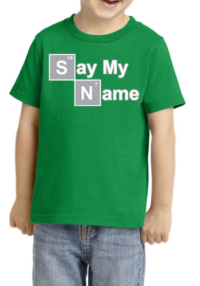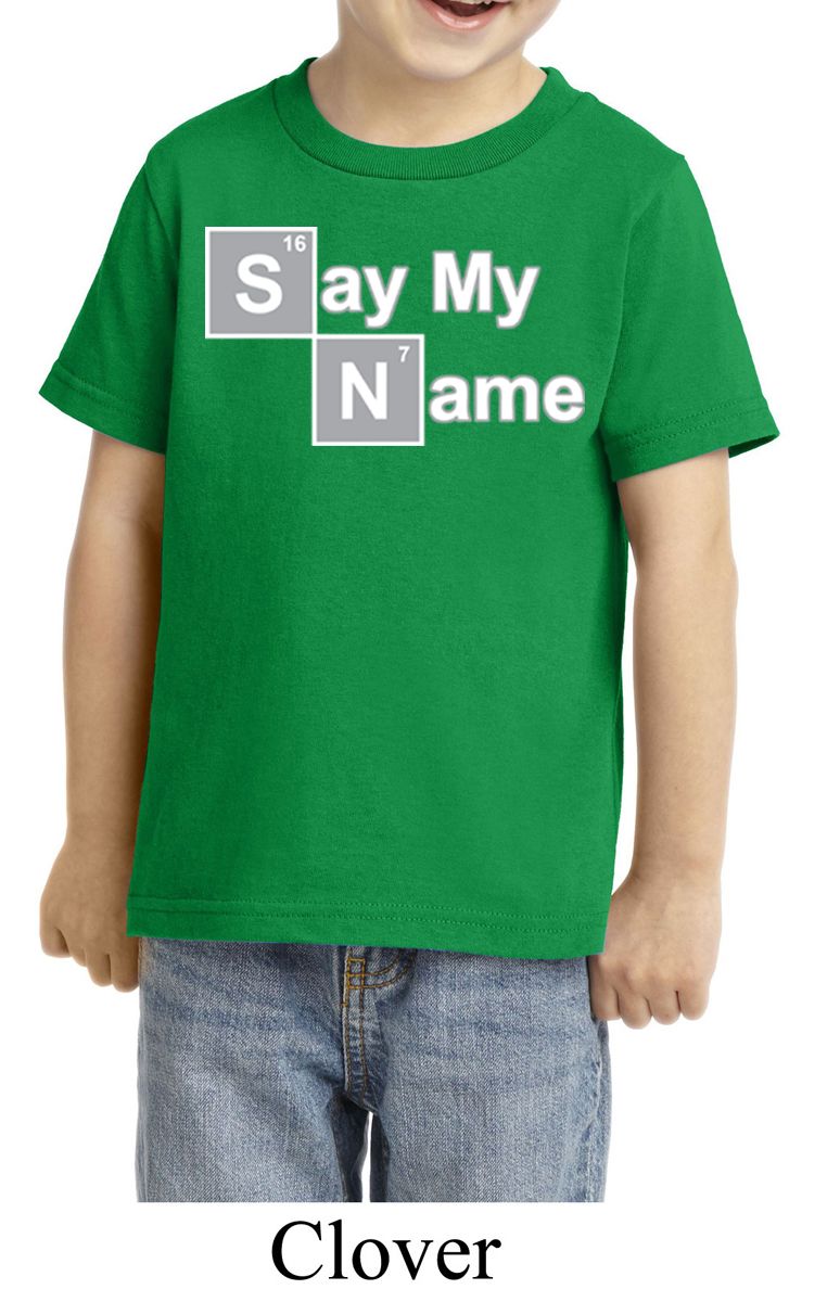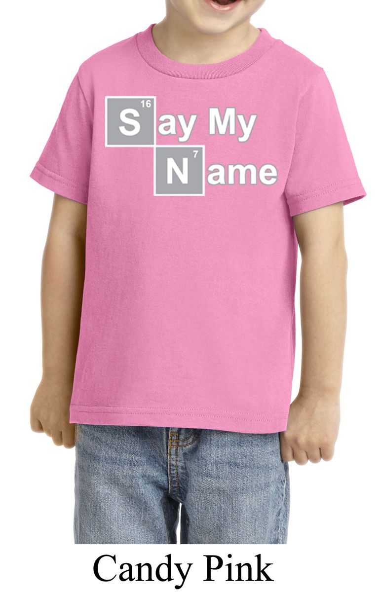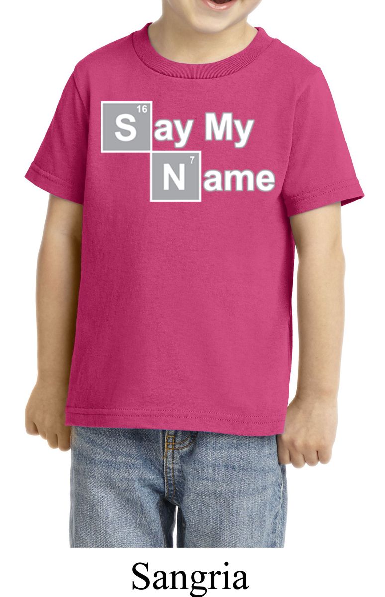 | | Kids Shirt Say My Name Toddler Tee T-ShirtKids Shirt Say My Name Toddler Tee T-Shirt 100% cotton Athletic heather is a cotton/poly blend Available in 2T, 3T, & 4T Also available in colors Aquatic Blue, Athletic Heather, Black, Candy Pink, Clover, Navy, Purple, Red, Royal, and Sangria ![]() |
