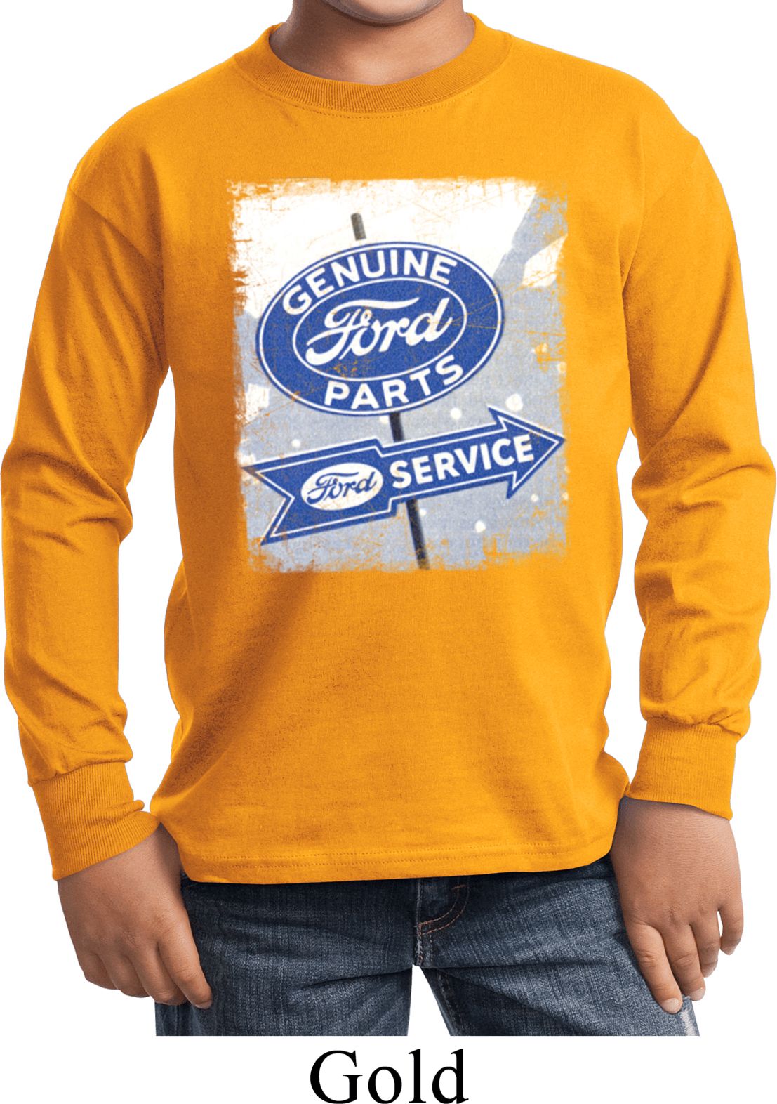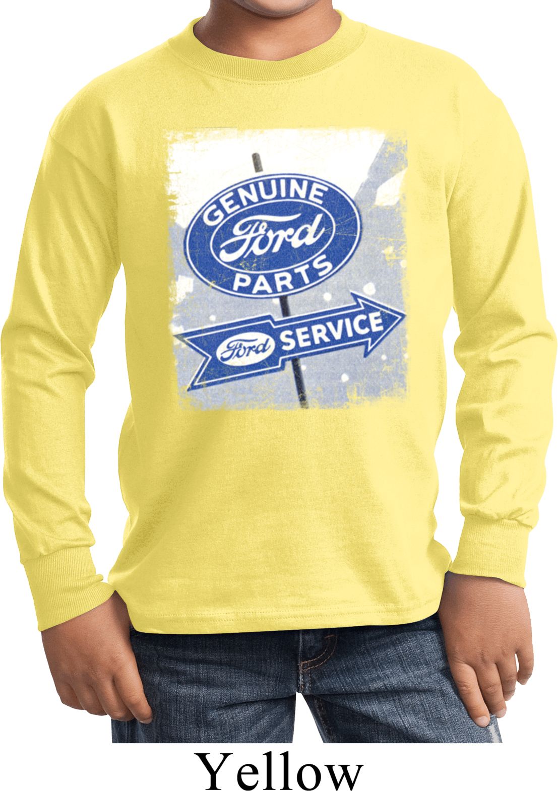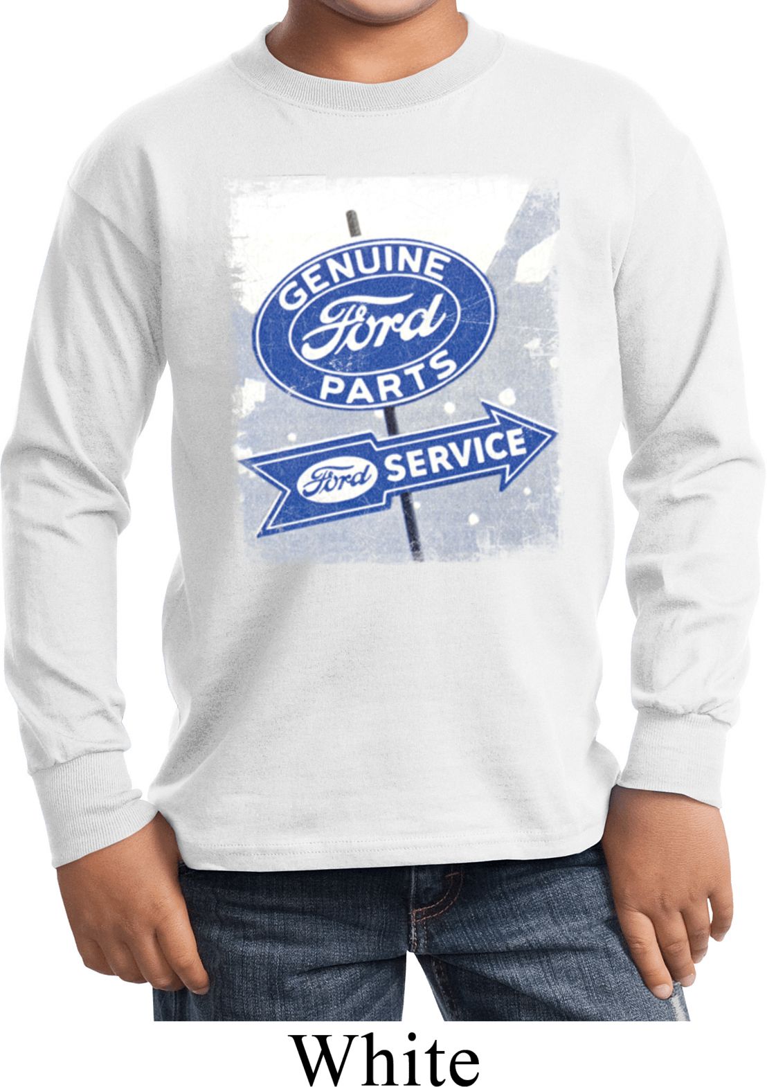 Kids Shirt Vintage Sign Genuine Ford Parts Long Sleeve Tee T-Shirt 100% cotton Available in Youth Small, Youth Medium, Youth Large & Youth XL Also available in colors Athletic Maroon, Black, Charcoal, Dark Green, Gold, Navy, Orange, Purple, Red, Royal, White, and Yellow  |