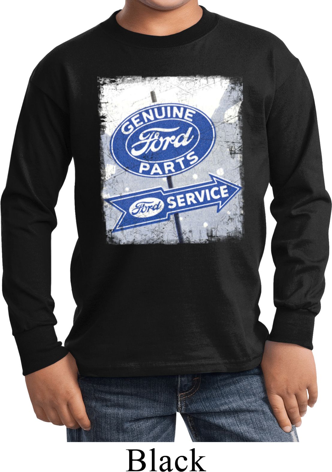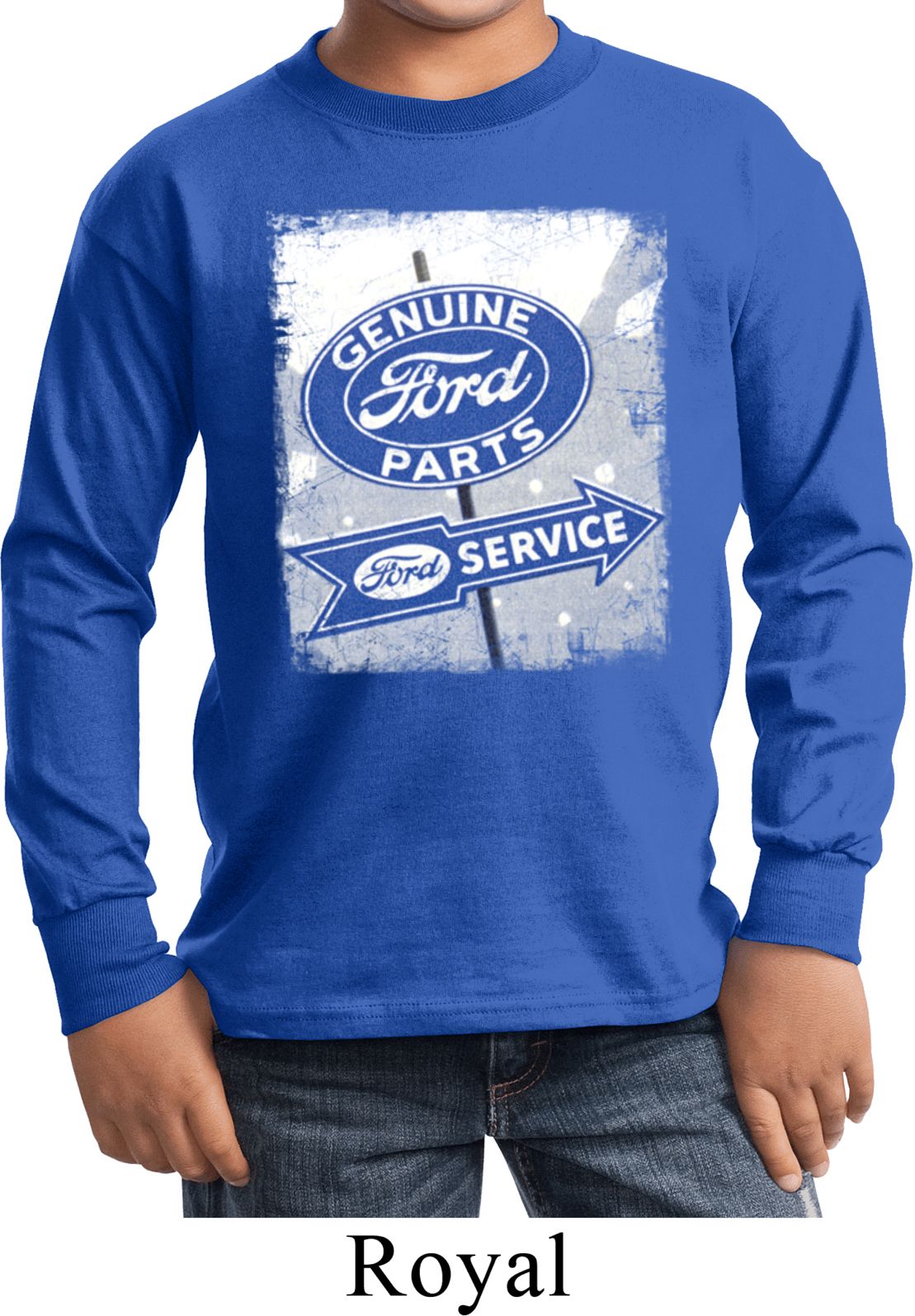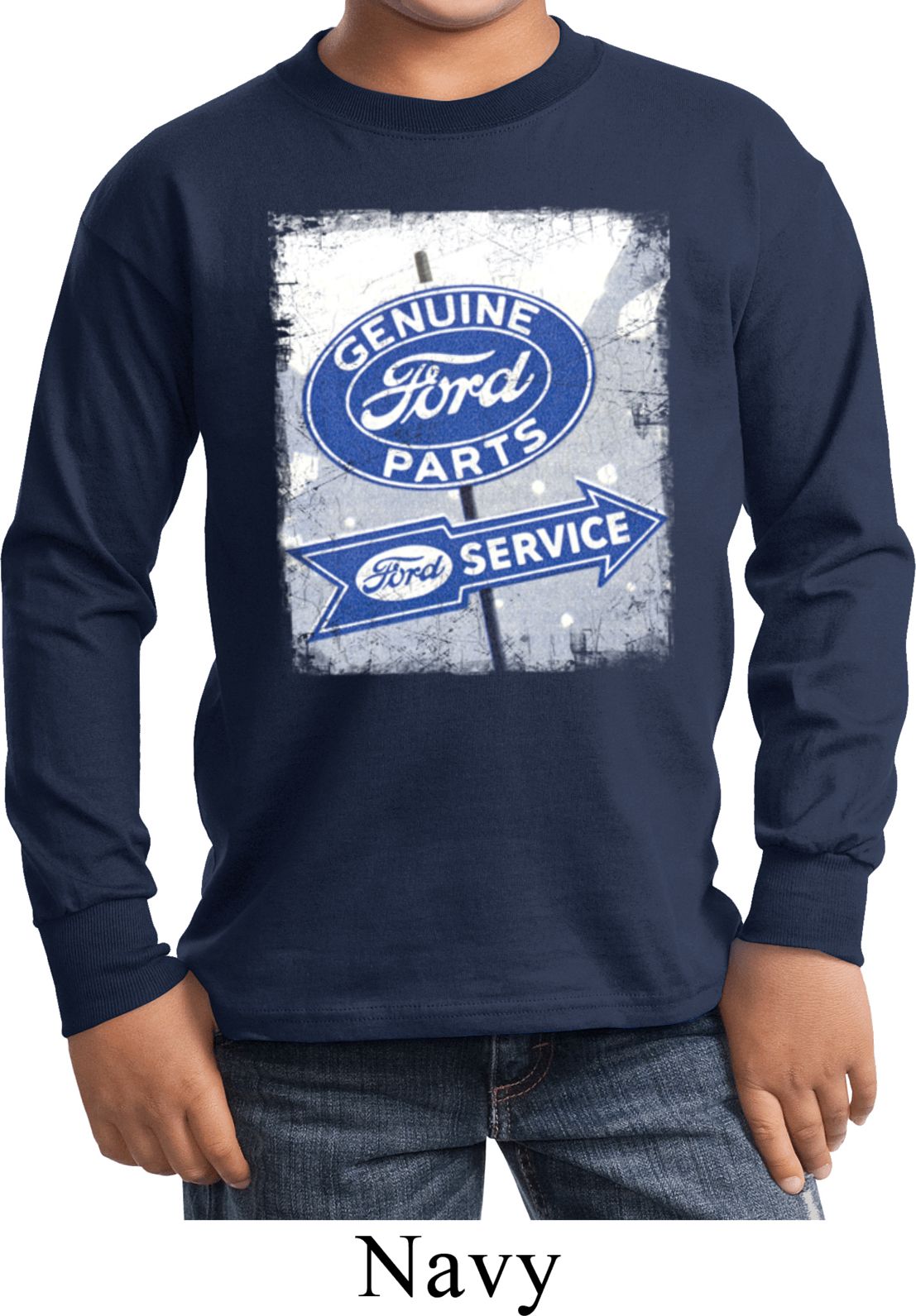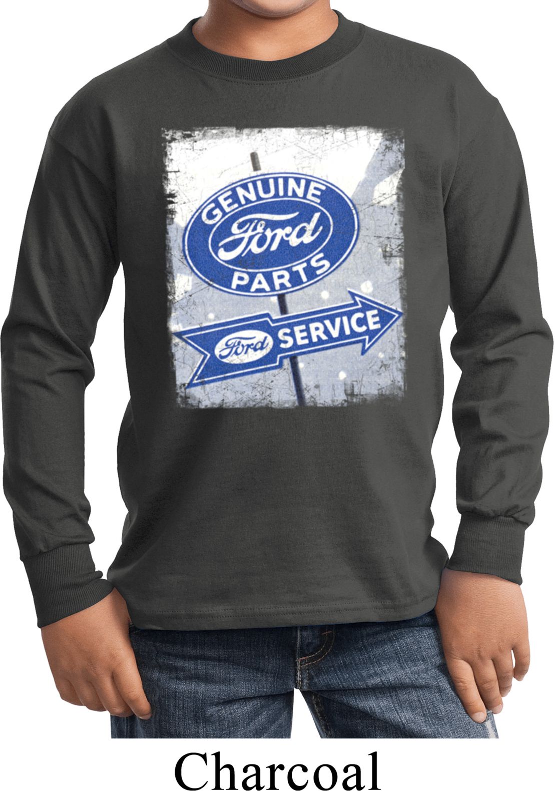 Kids Shirt Vintage Sign Genuine Ford Parts Long Sleeve Tee T-Shirt 100% cotton Available in Youth Small, Youth Medium, Youth Large & Youth XL Also available in colors Athletic Maroon, Black, Charcoal, Dark Green, Gold, Navy, Orange, Purple, Red, Royal, White, and Yellow  |