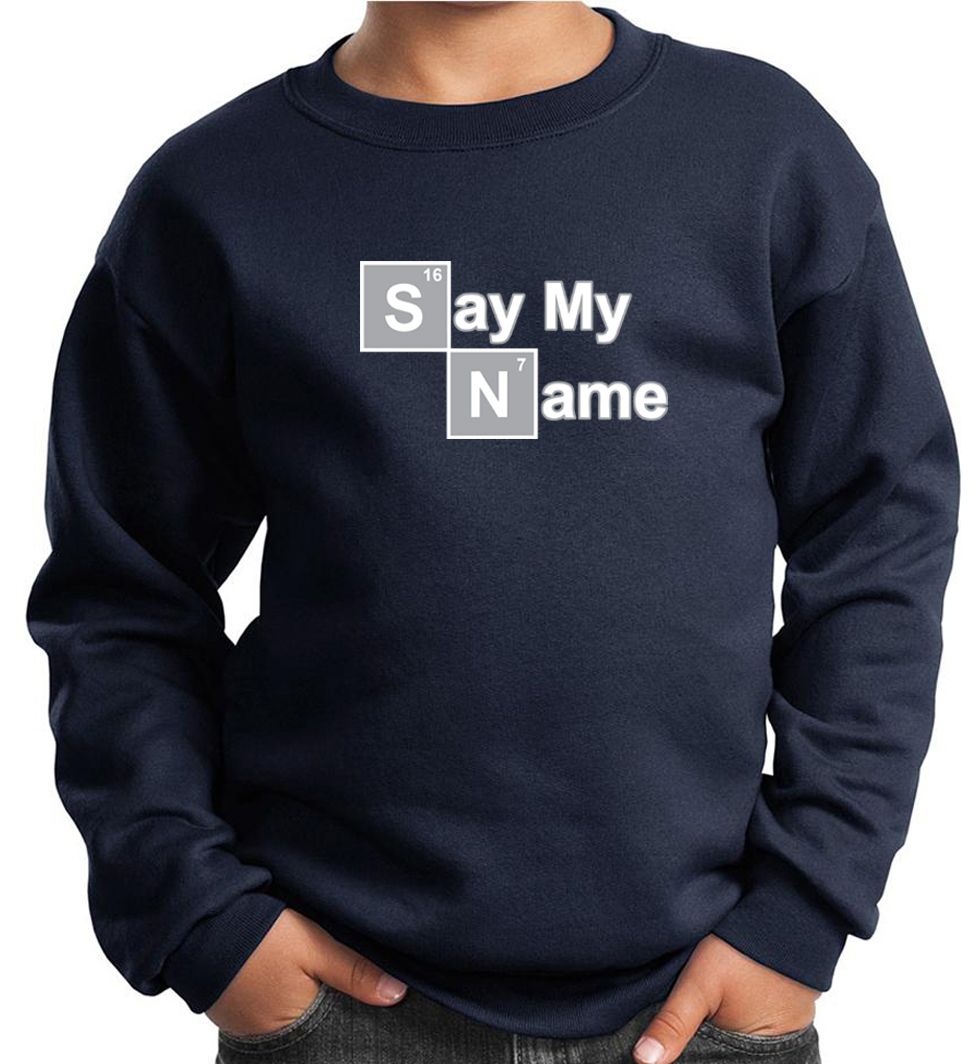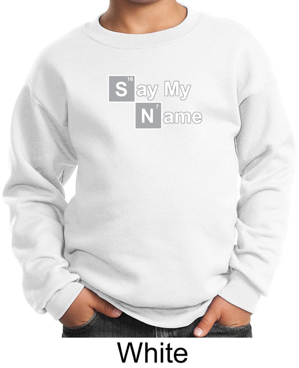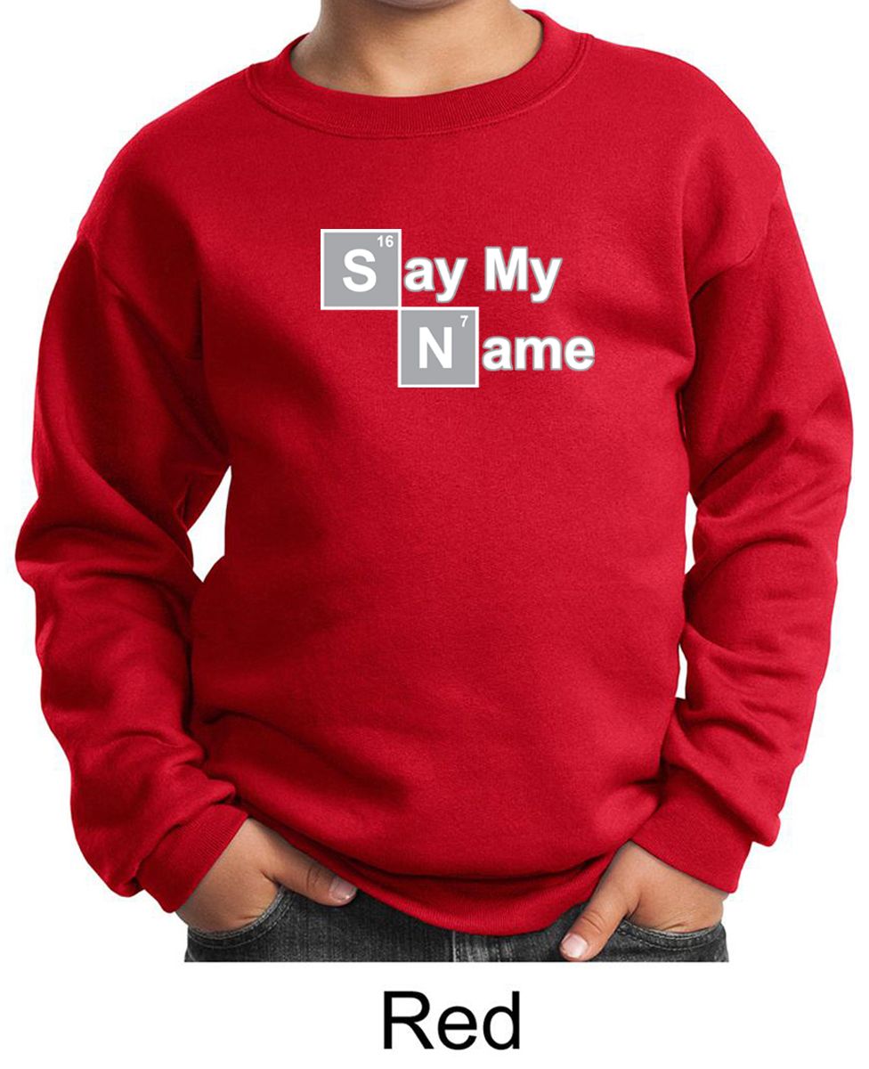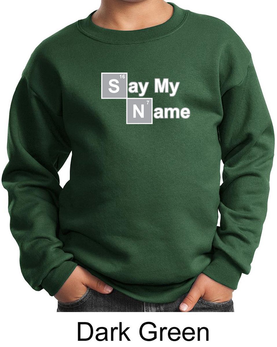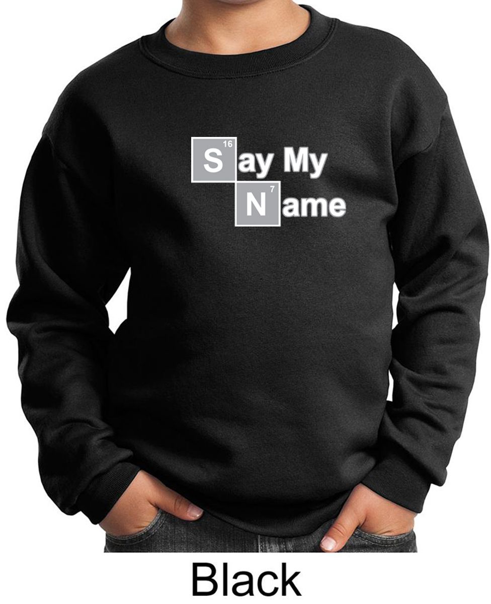 | | Kids Sweatshirt Say My Name Sweat ShirtKids Sweatshirt Say My Name Sweat Shirt A cotton/poly blend Available in Youth Small, Youth Medium, Youth Large & Youth XL Also available in colors Ash, Athletic Heather, Black, Dark Green, Maroon, Navy, Red, Royal, and White ![]() |
