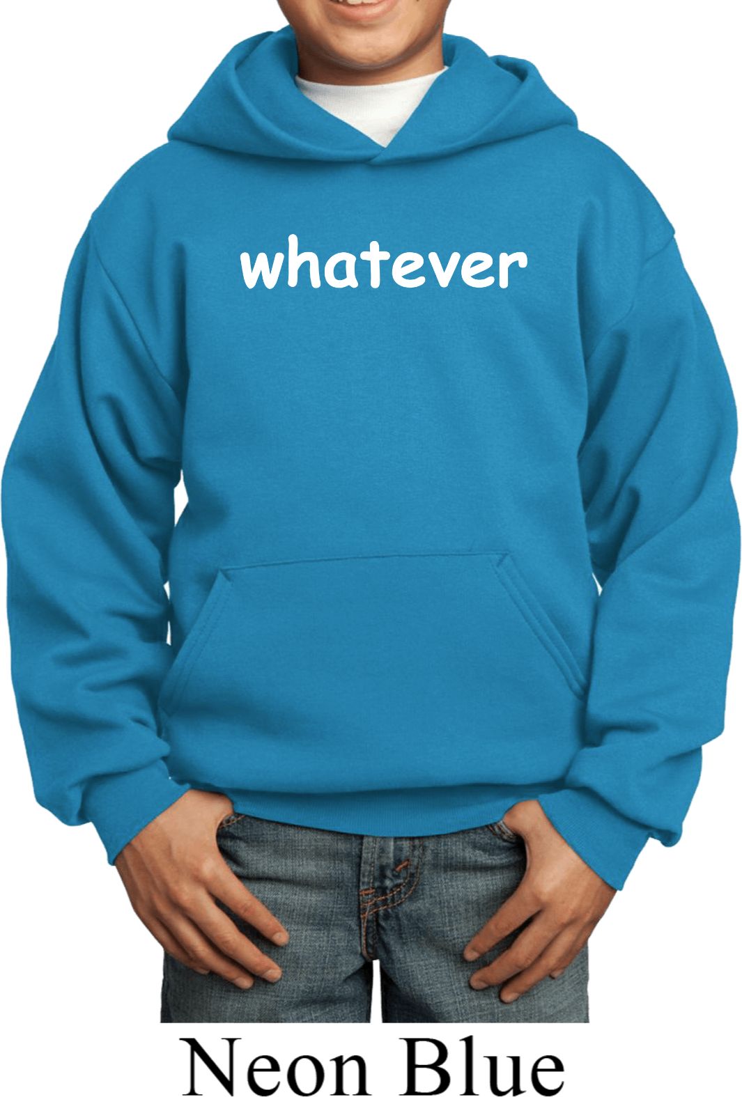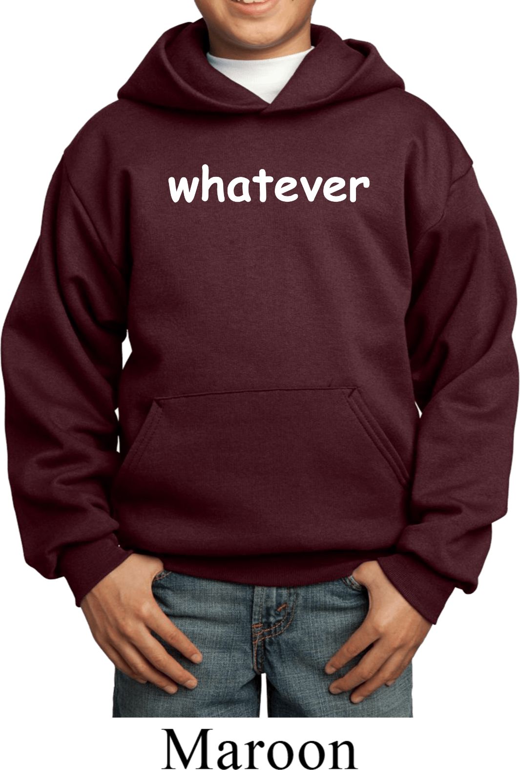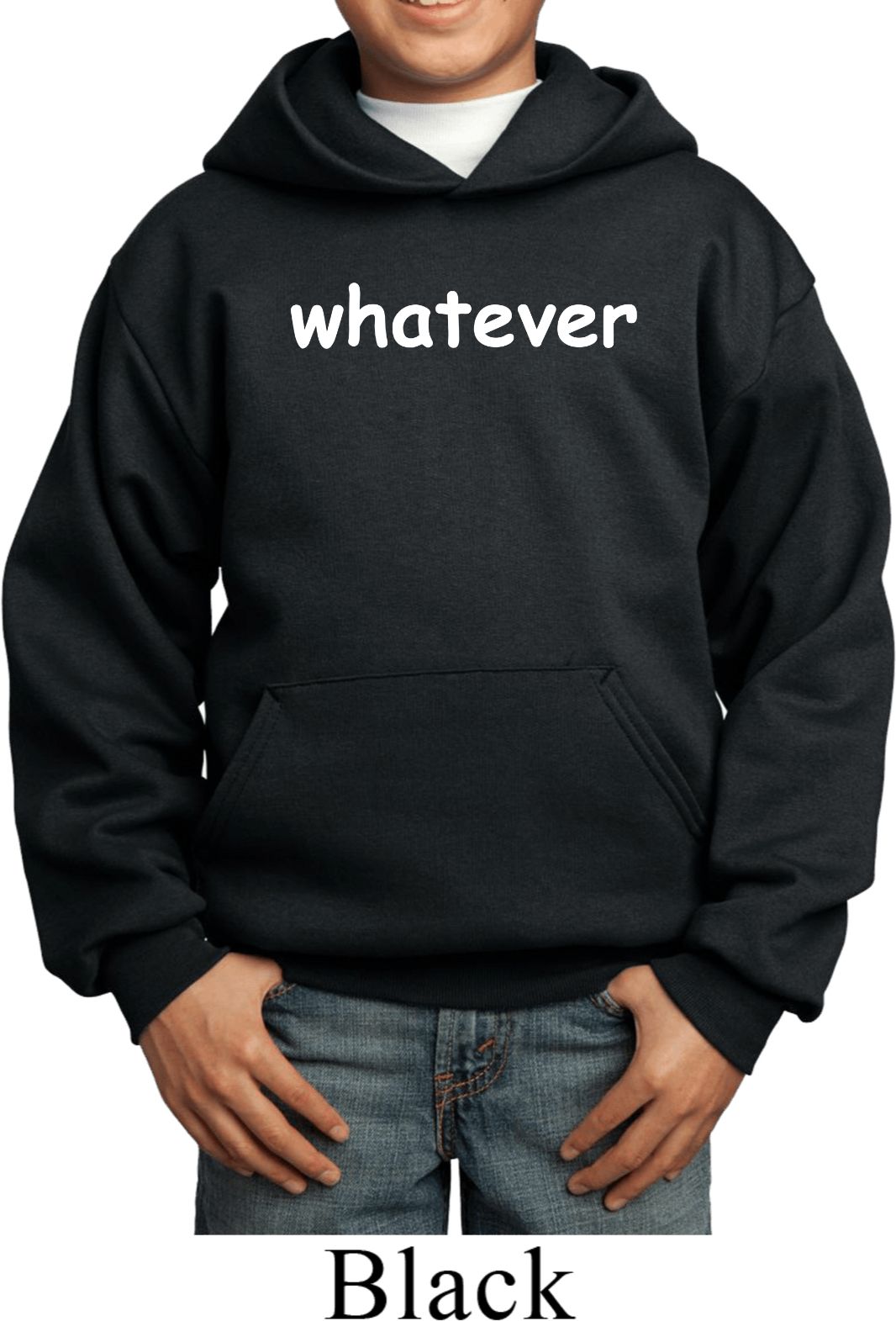 | | Kids Whatever Youth HoodieA kids hoodie with a kangaroo pouch pocket featuring Whatever. A comfortable youth hooded sweatshirt made with a blend of cotton/poly. Perfect for all who use the popular saying. Available in sizes Small through XL. Machine wash cold with like colors; dry low heat. ![]() |