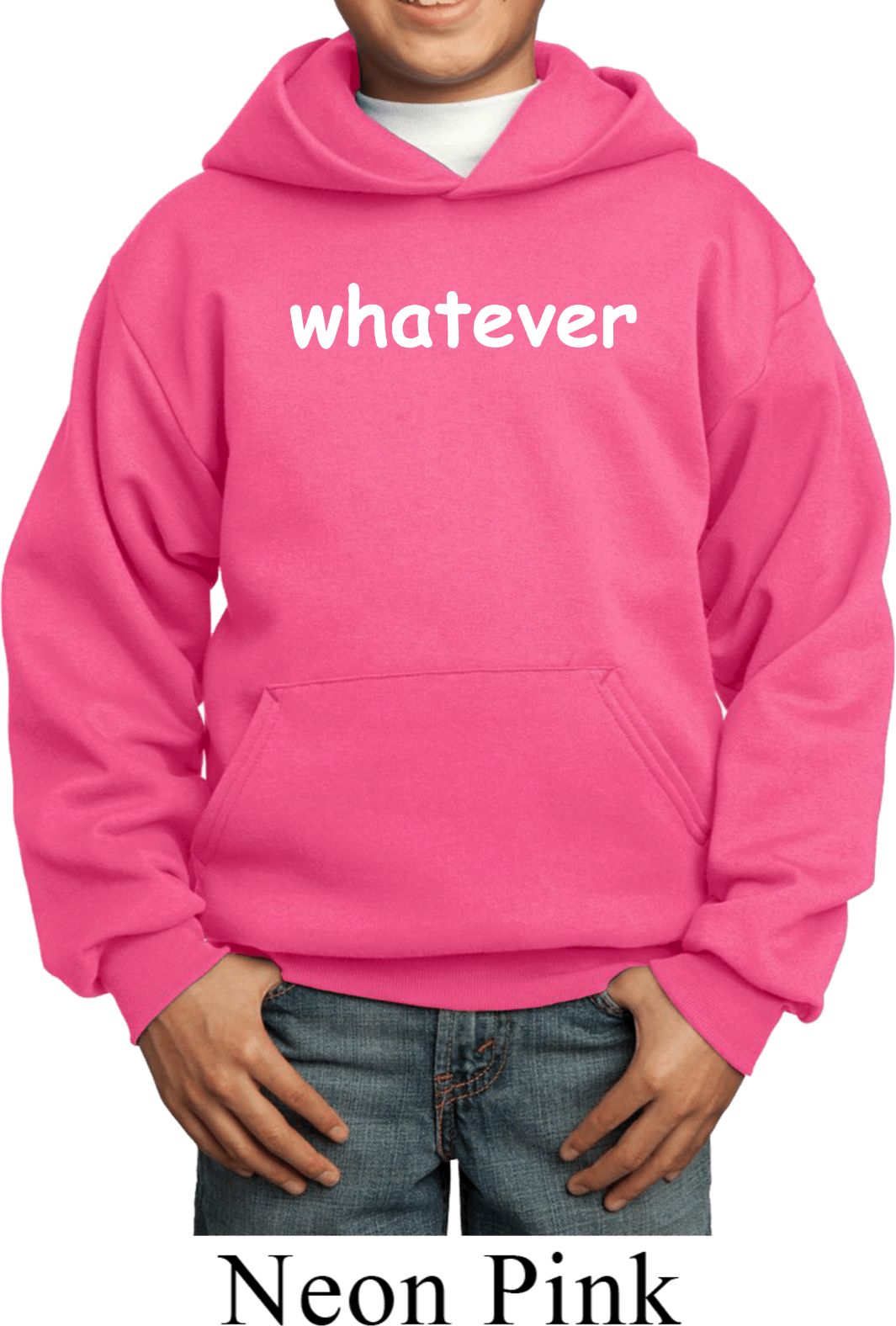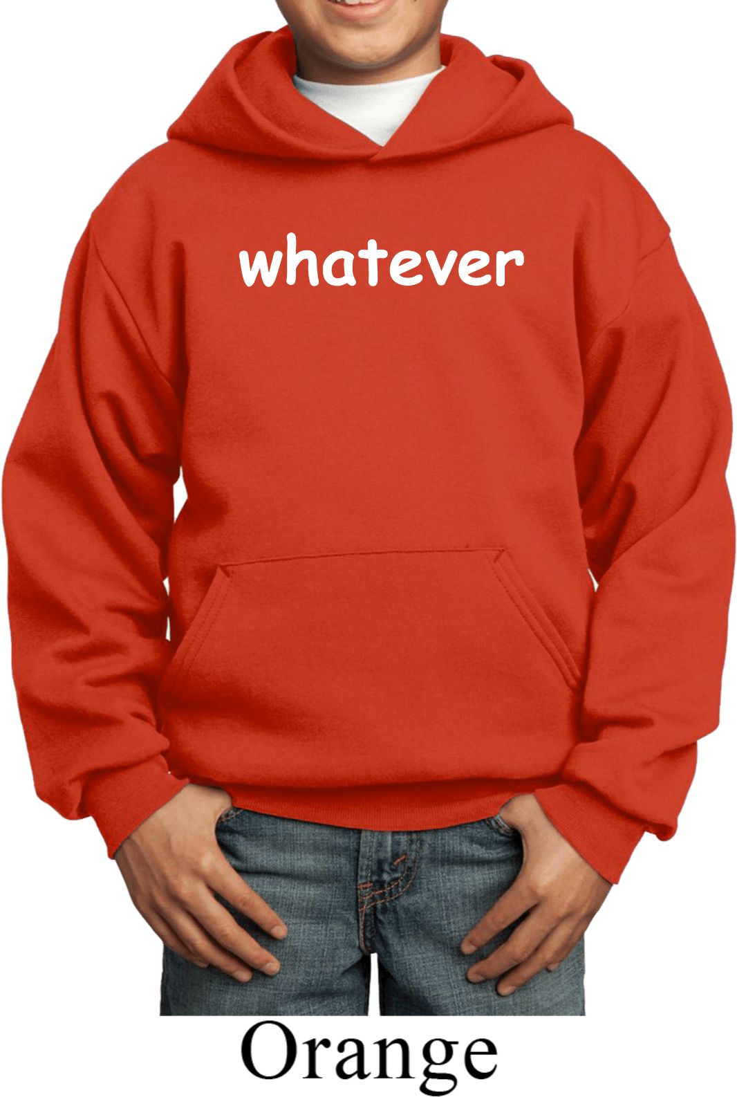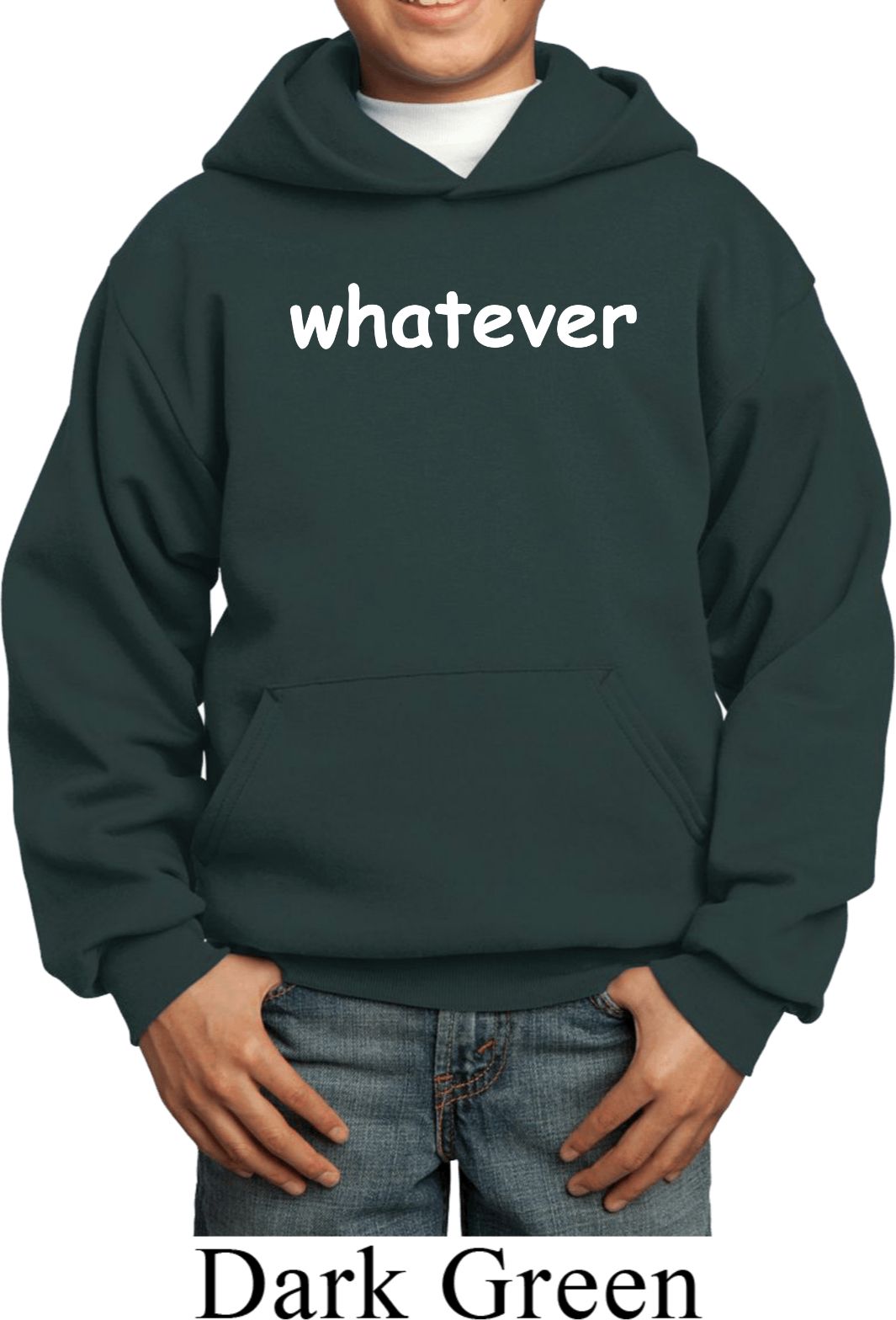 | | Kids Whatever Youth HoodieA kids hoodie with a kangaroo pouch pocket featuring Whatever. A comfortable youth hooded sweatshirt made with a blend of cotton/poly. Perfect for all who use the popular saying. Available in sizes Small through XL. Machine wash cold with like colors; dry low heat. ![]() |