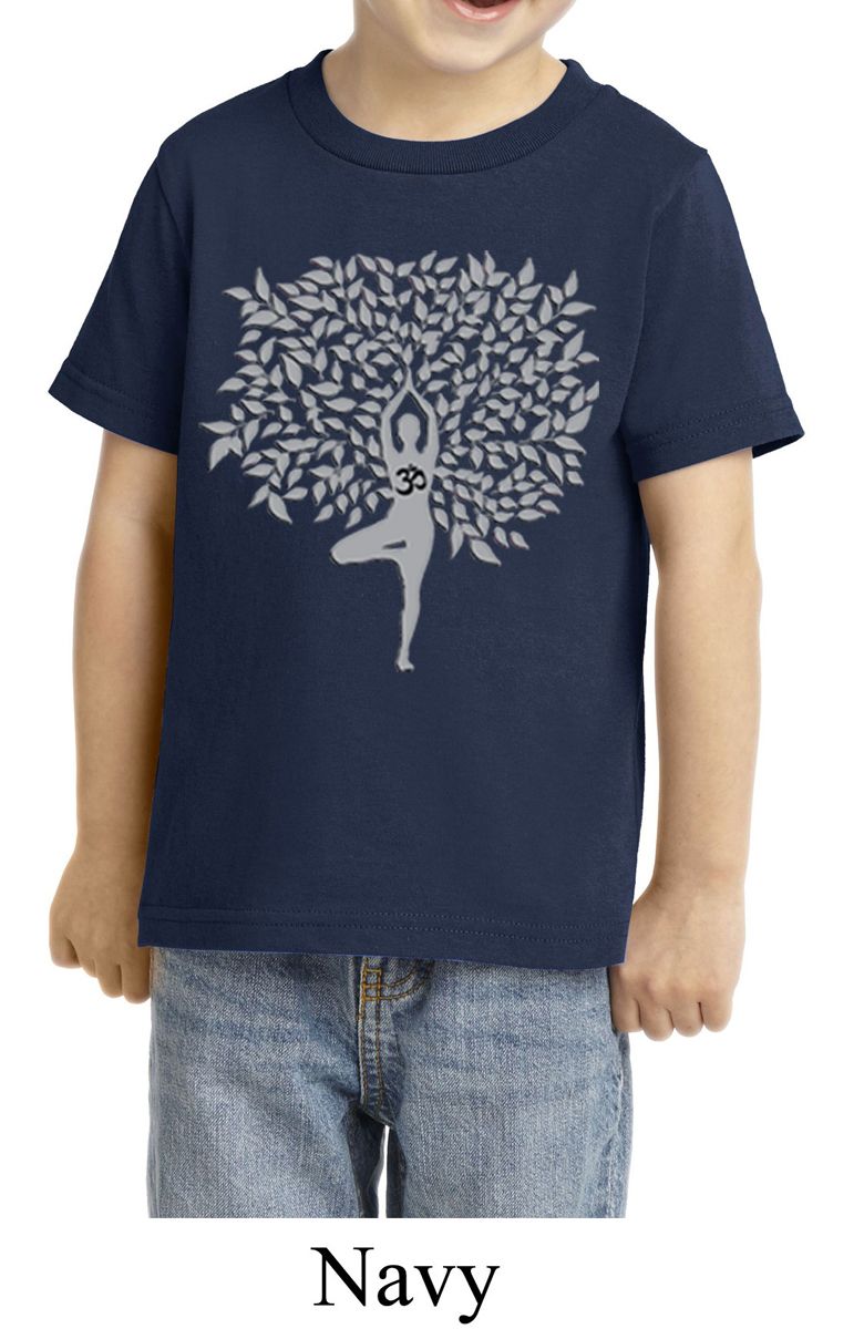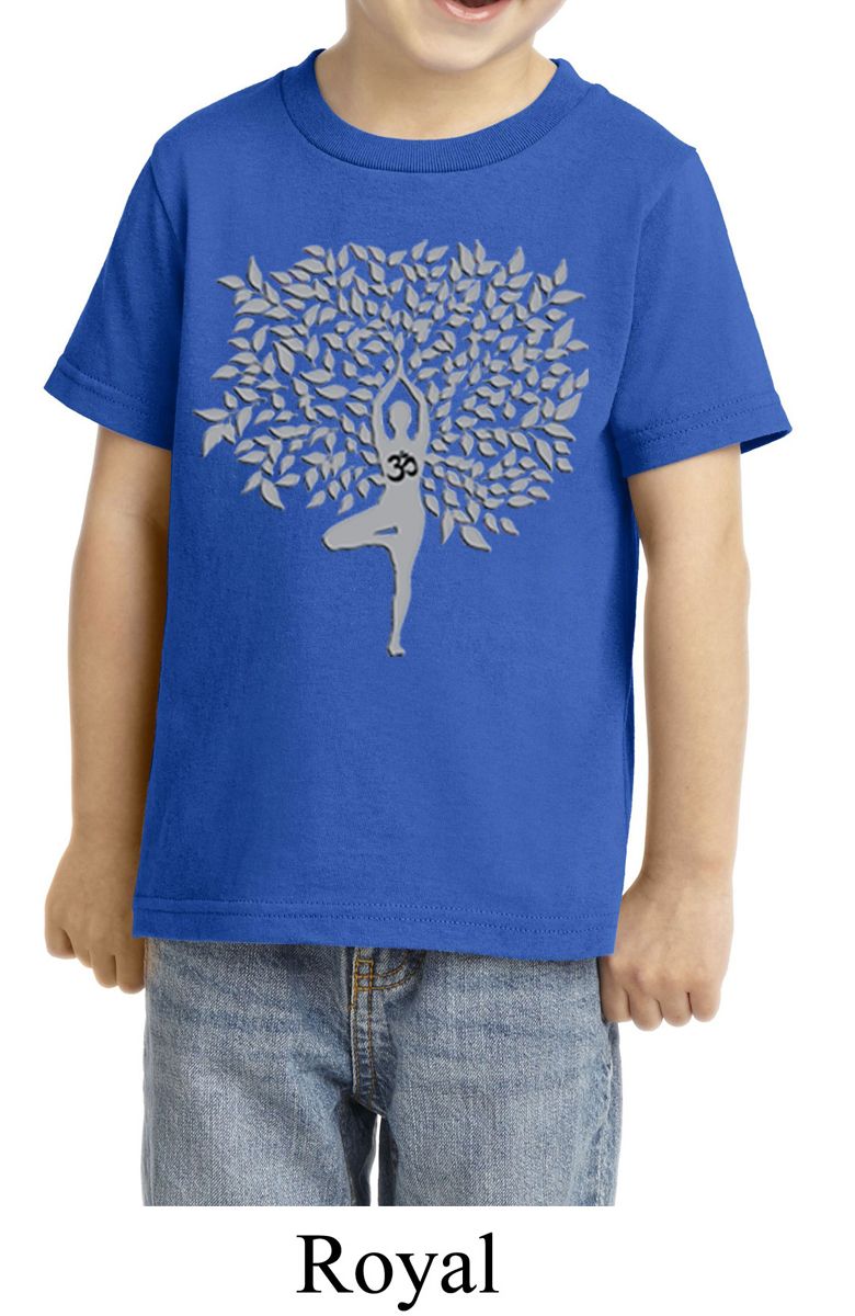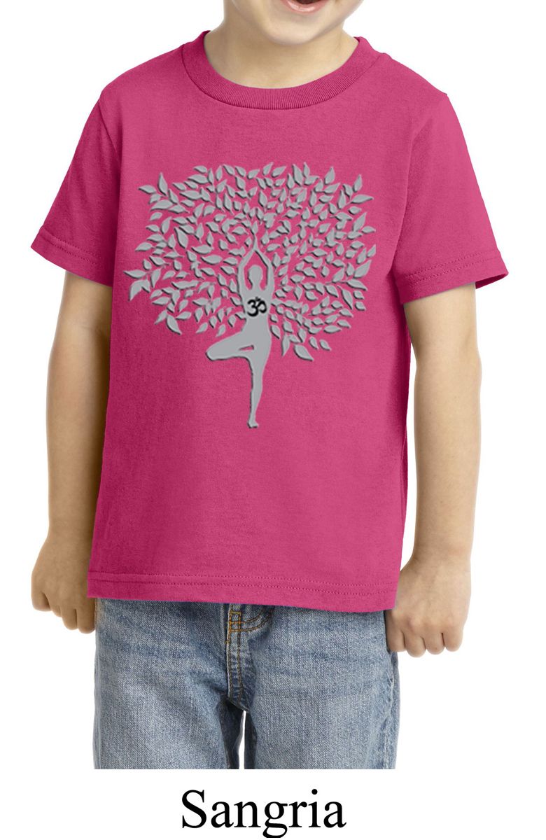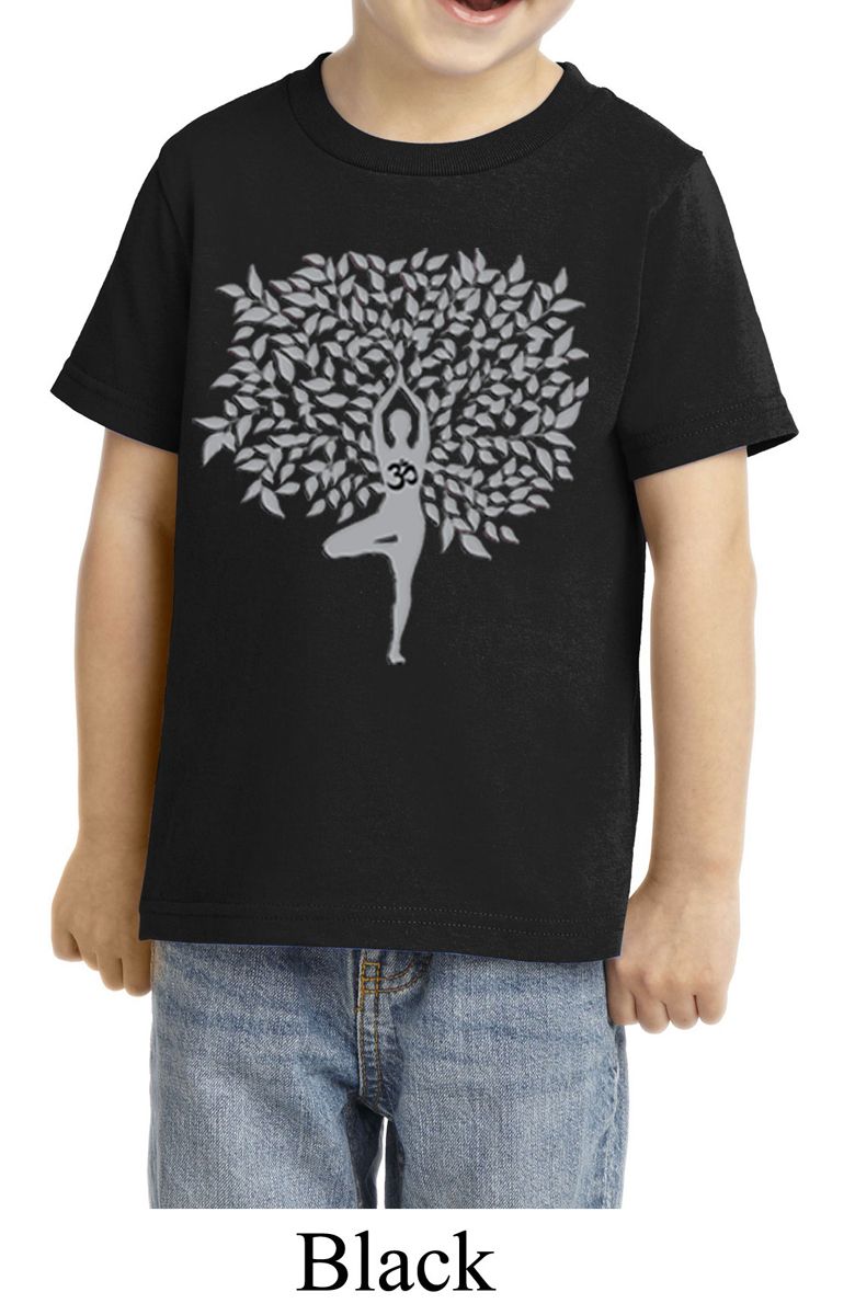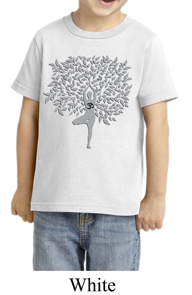 Kids Yoga Shirt Grey Tree Pose Toddler Tee T-Shirt 100% cotton Available in 2T, 3T, & 4T Also available in colors Aquatic Blue, Black, Candy Pink, Clover, Navy, Purple, Red, Royal, Sangria, and White  |